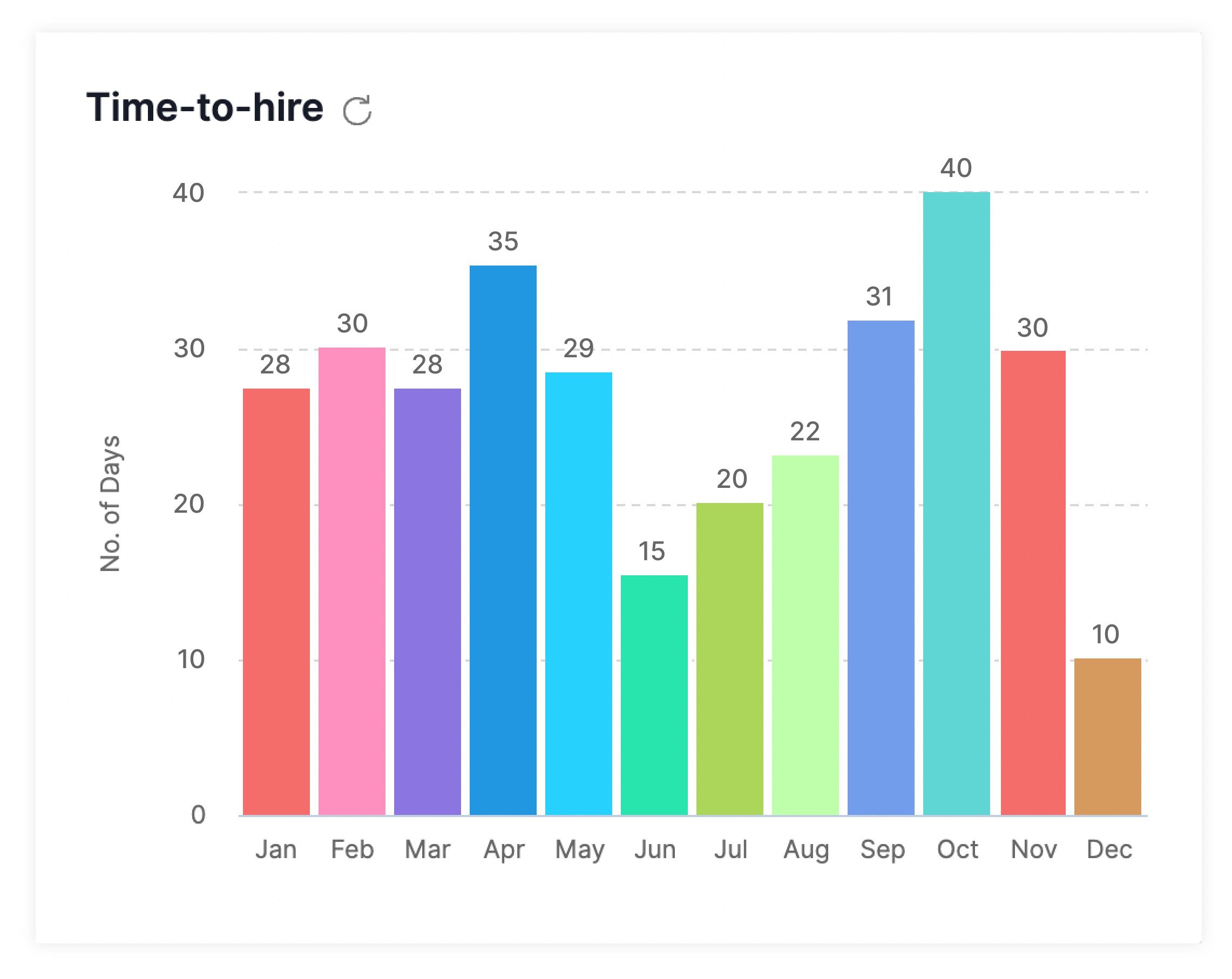 時間-to-hireは、採用候補者を特定してからオファーを承認するまでにかかる時間の長さを測定する、重要な採用指標です。この指標は採用プロセスの効率を示す重要な指標であり、採用活動の有効性について貴重なインサイトを提供します。Zoho Recruitでは、リクルーターが候補者ごとの時間-to-hireを追跡し、採用プロセス内でのボトルネックを特定できるため、採用スピードの向上や、より効率的な採用活動に役立ちます。