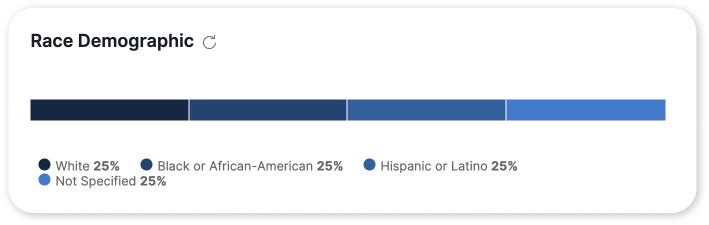 Gender Demographicは採用プロセスの各段階における男女候補者の分布を測定し、ジェンダーの代表性に関するインサイトを提供します。理由 for Rejectionは候補者が却下済みとなる理由を測定し、採用プロセスにおける潜在的なバイアスを特定します。Race Demographicは異なる人種的背景を持つ候補者の分布を測定し、人種の代表性に関するインサイトを提供します。