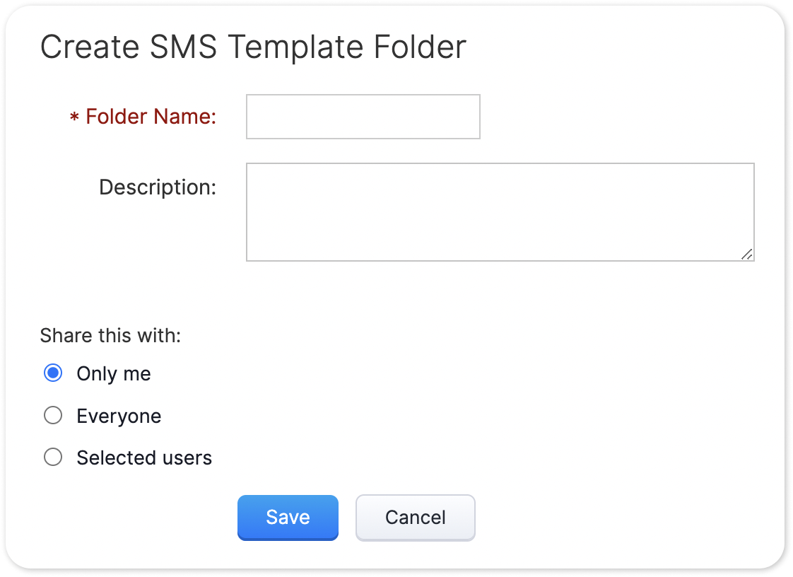 注意: SMS Add-on機能を有効にしていないと、SMSテンプレートやフォルダーを作成、編集、削除することはできません。