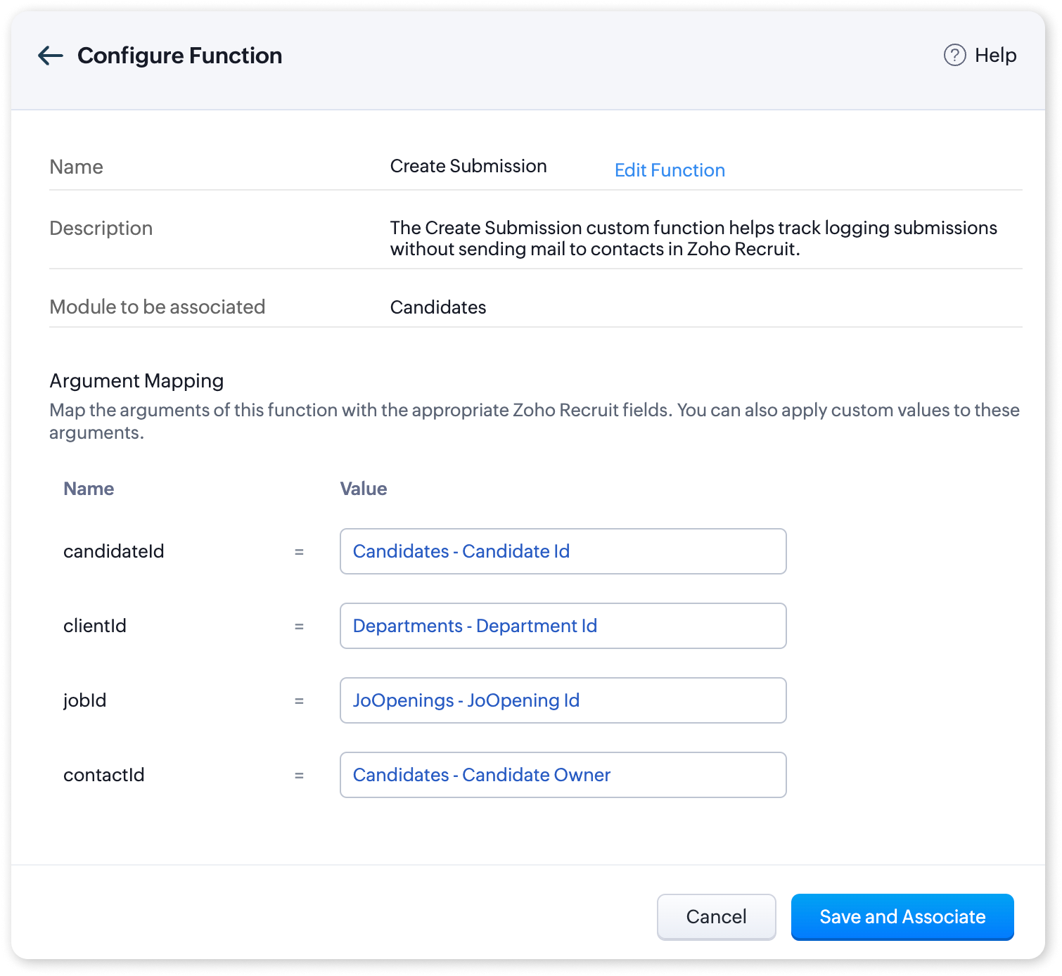 作成SubmissionカスタムFunctionは、Zoho Recruitで連絡先にメールを送信せずにSubmissionのログを追跡するのに役立ちます。