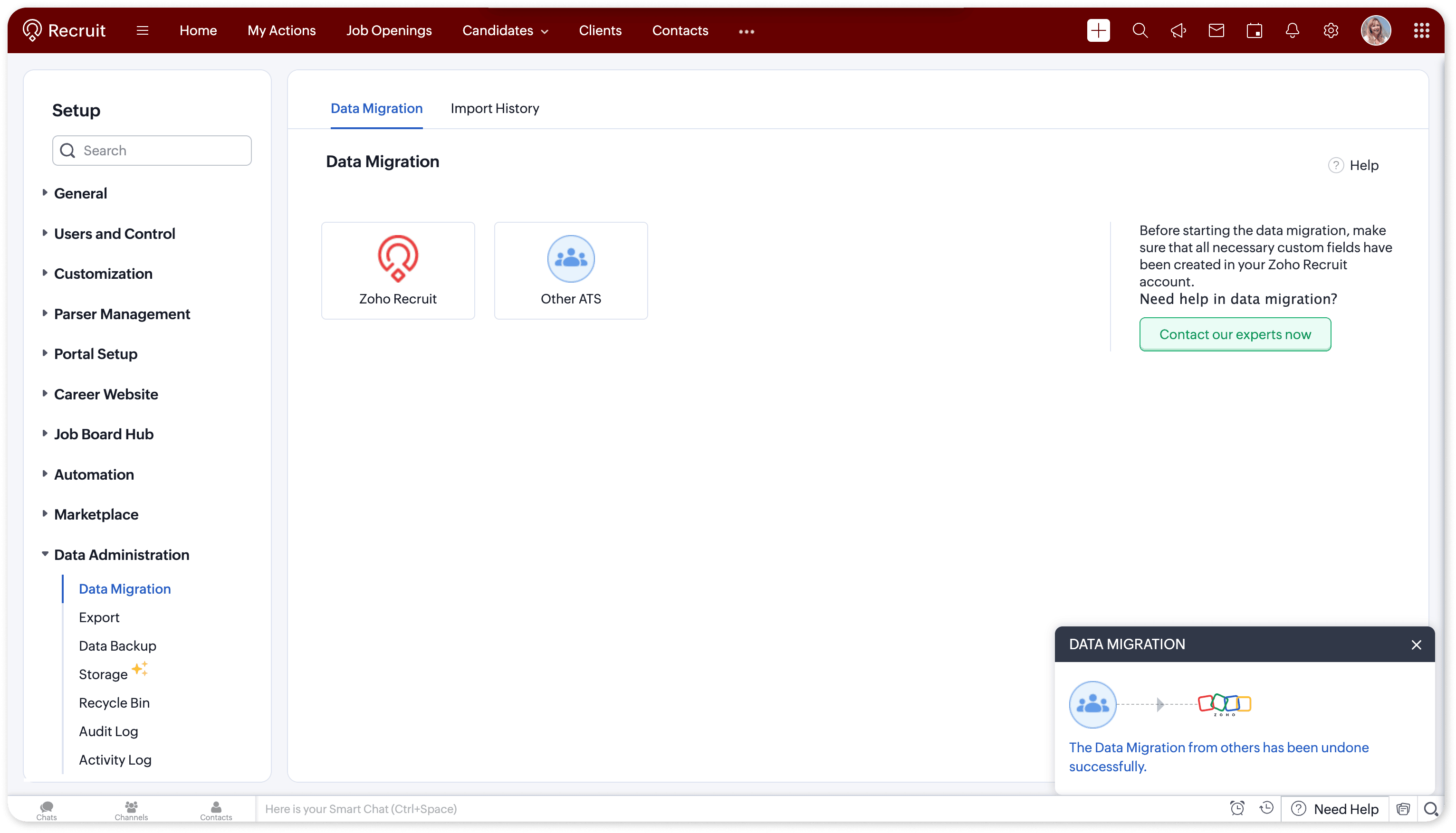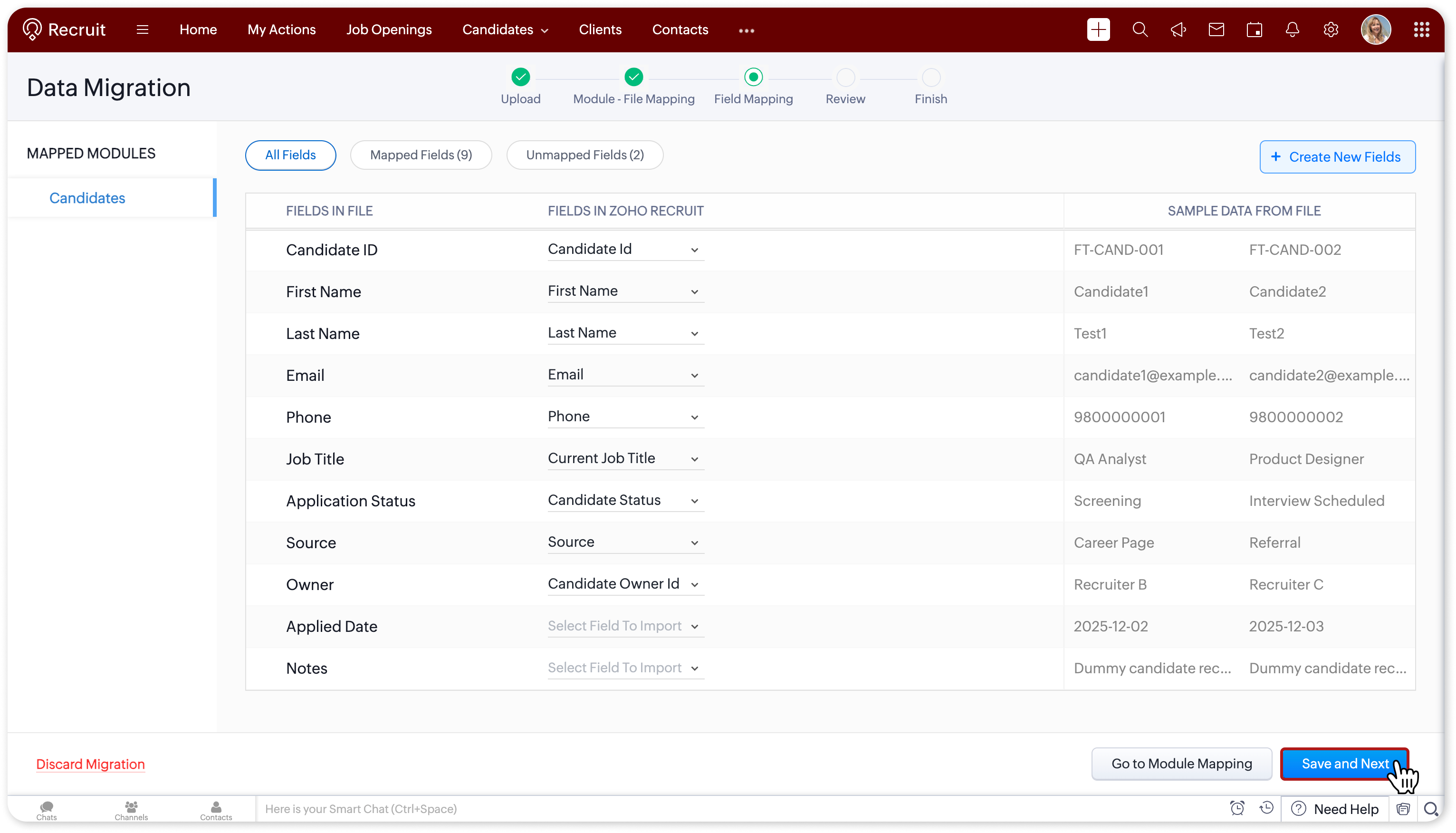 これらの手順が完了すると、Freshteam からの採用データは Zoho Recruit で安全に利用できるようになり、中断することなく採用プロセスを継続できます。