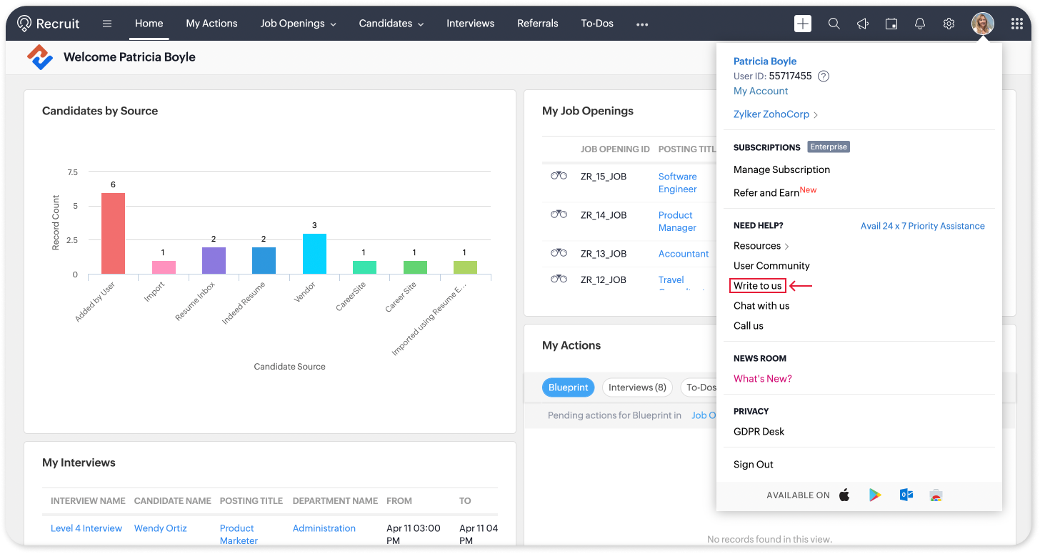 Zoho Recruitの本機能に関するご質問は、サポート@zohorecruit.comまでお問い合わせください。いつでもサポートいたします。
