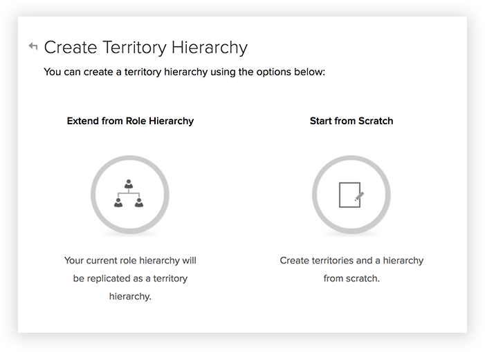 territory階層は、新規に作成することも、役割階層を拡張して作成することも可能です。一度いずれかのオプションを選択すると、後から他のオプションへ戻すことはできませんのでご注意ください。