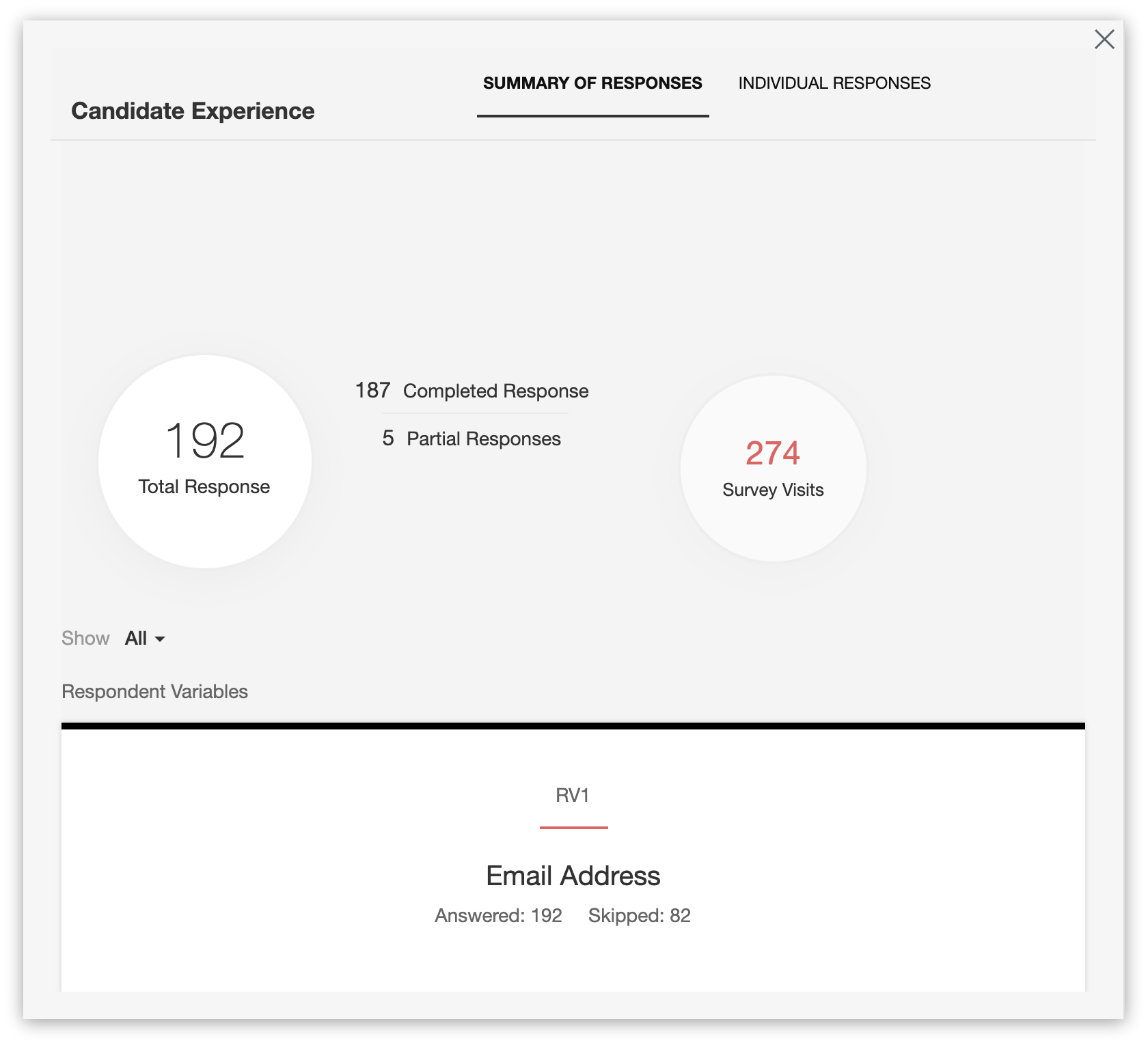 3. Survey Resultsのポップアップで、以下から選択して回答の詳細を表示できます。