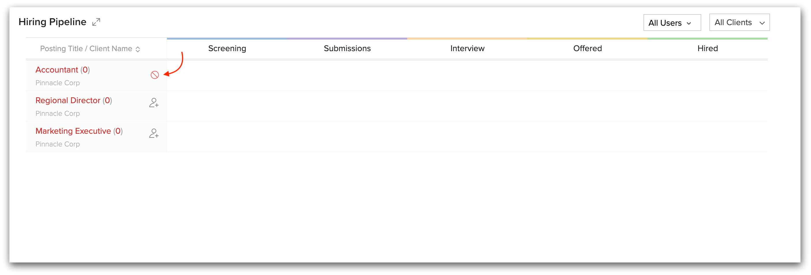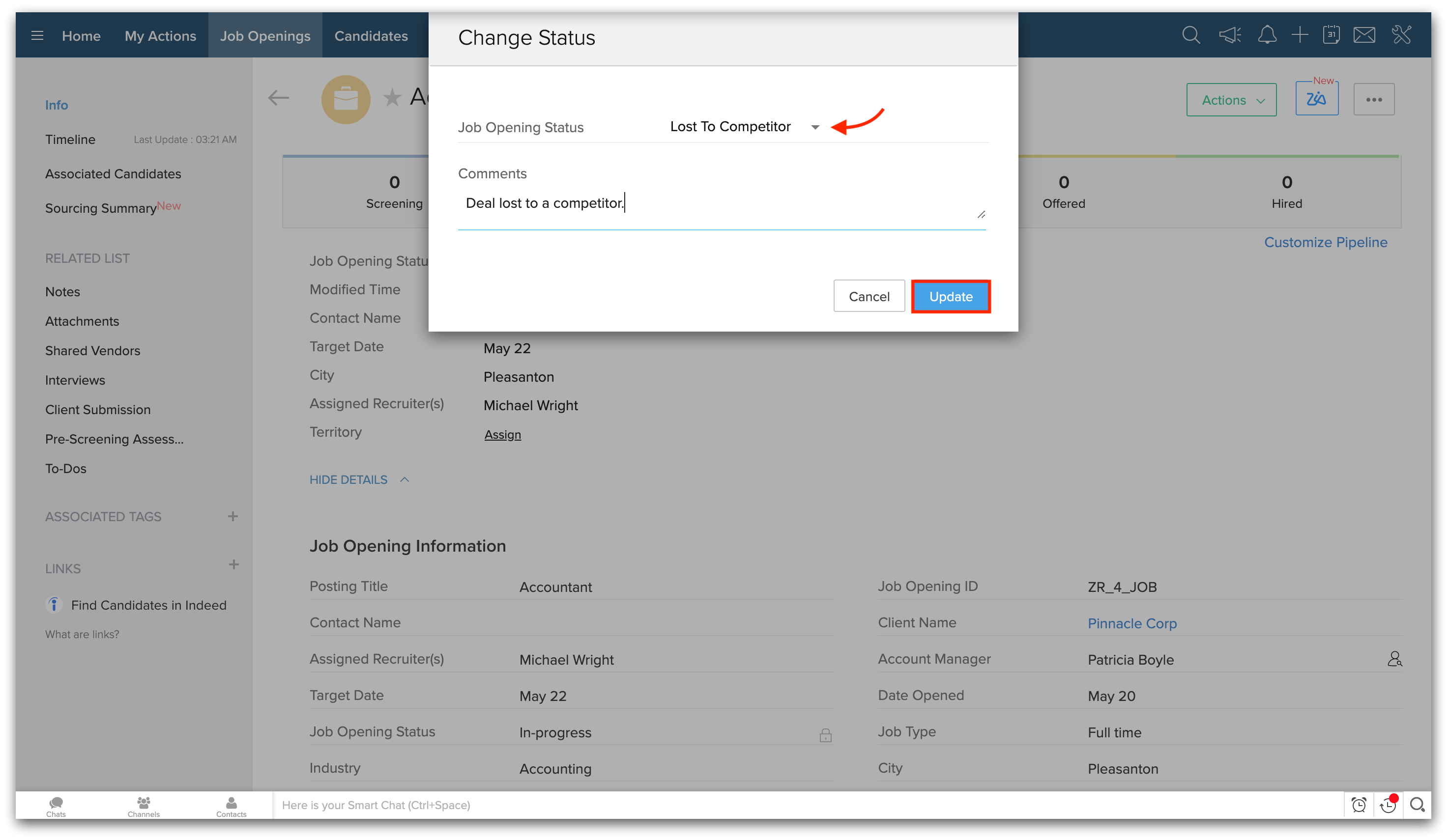 ジョブステータスをクローズと分類してジョブオープンを関連付けると、ホームページのハイリングパイプラインウィジェットからそのジョブオープンに候補者を関連付けることはできません。
