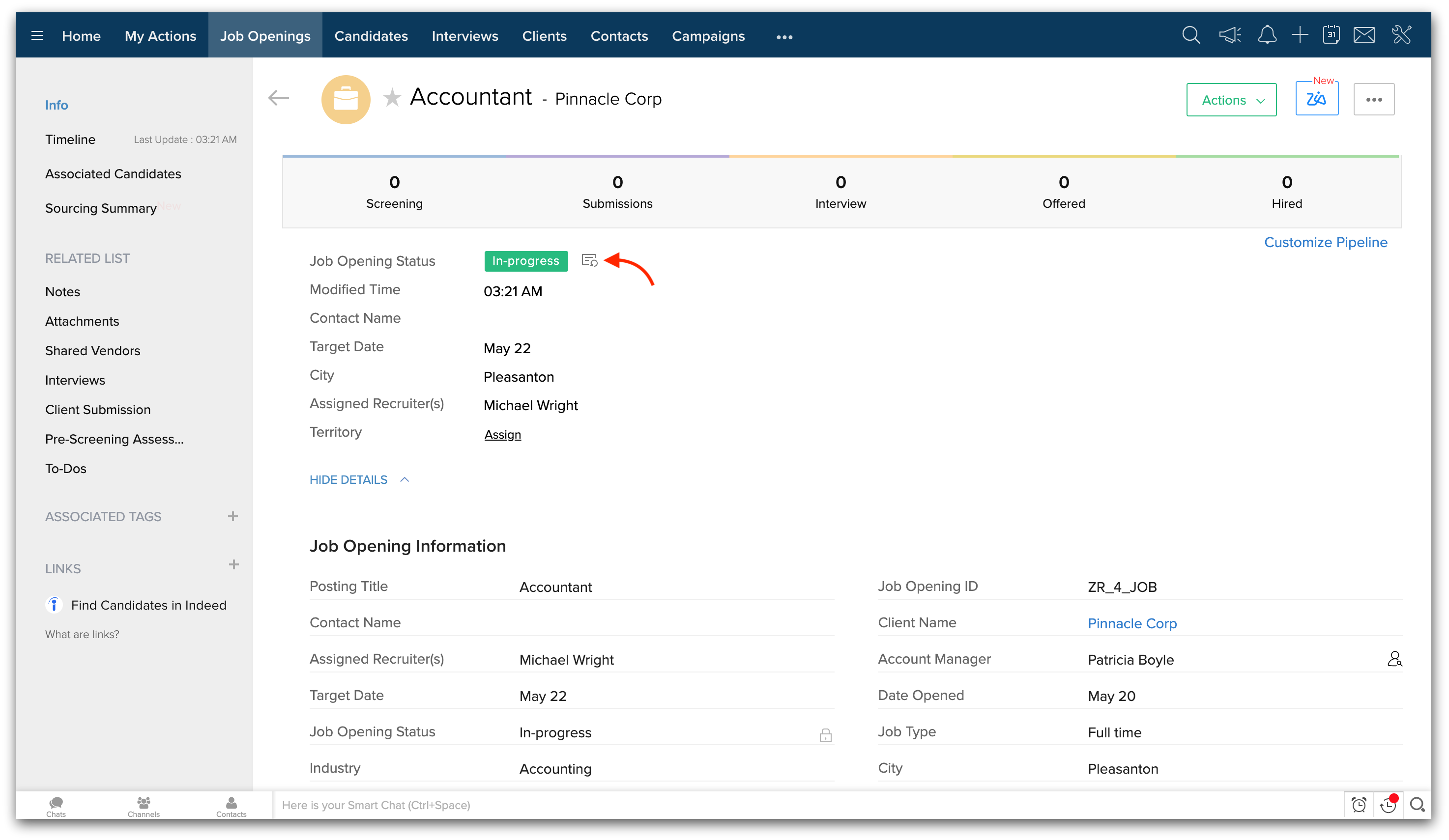 Zoho Recruitの各求人レコードには、関連付けられたステータスがあります。これらのステータスは、採用プロセスをよりよく追跡できるように、求人オープンがどの段階にあるかを示しています。