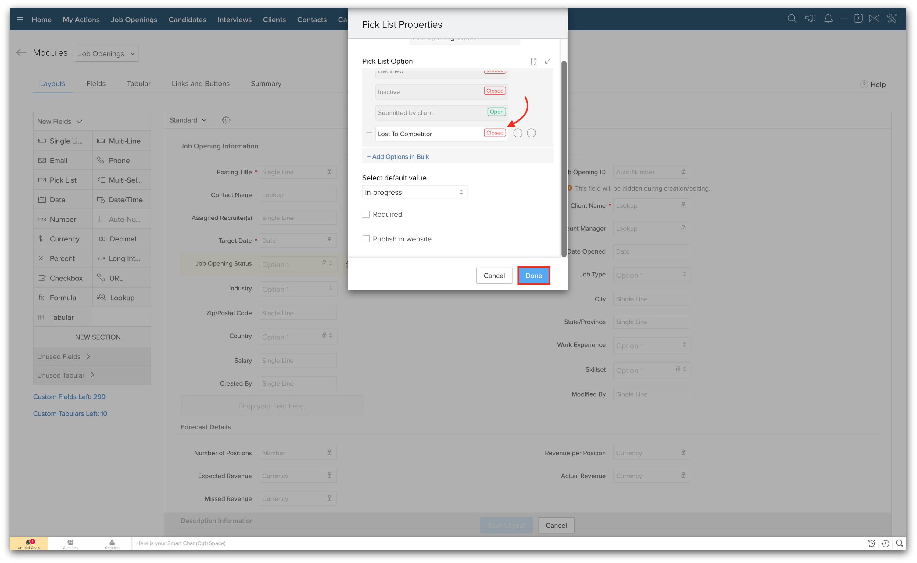 8. クリックして、新しい求人オープニングを関連付けたいカスタムステータスを選択します。