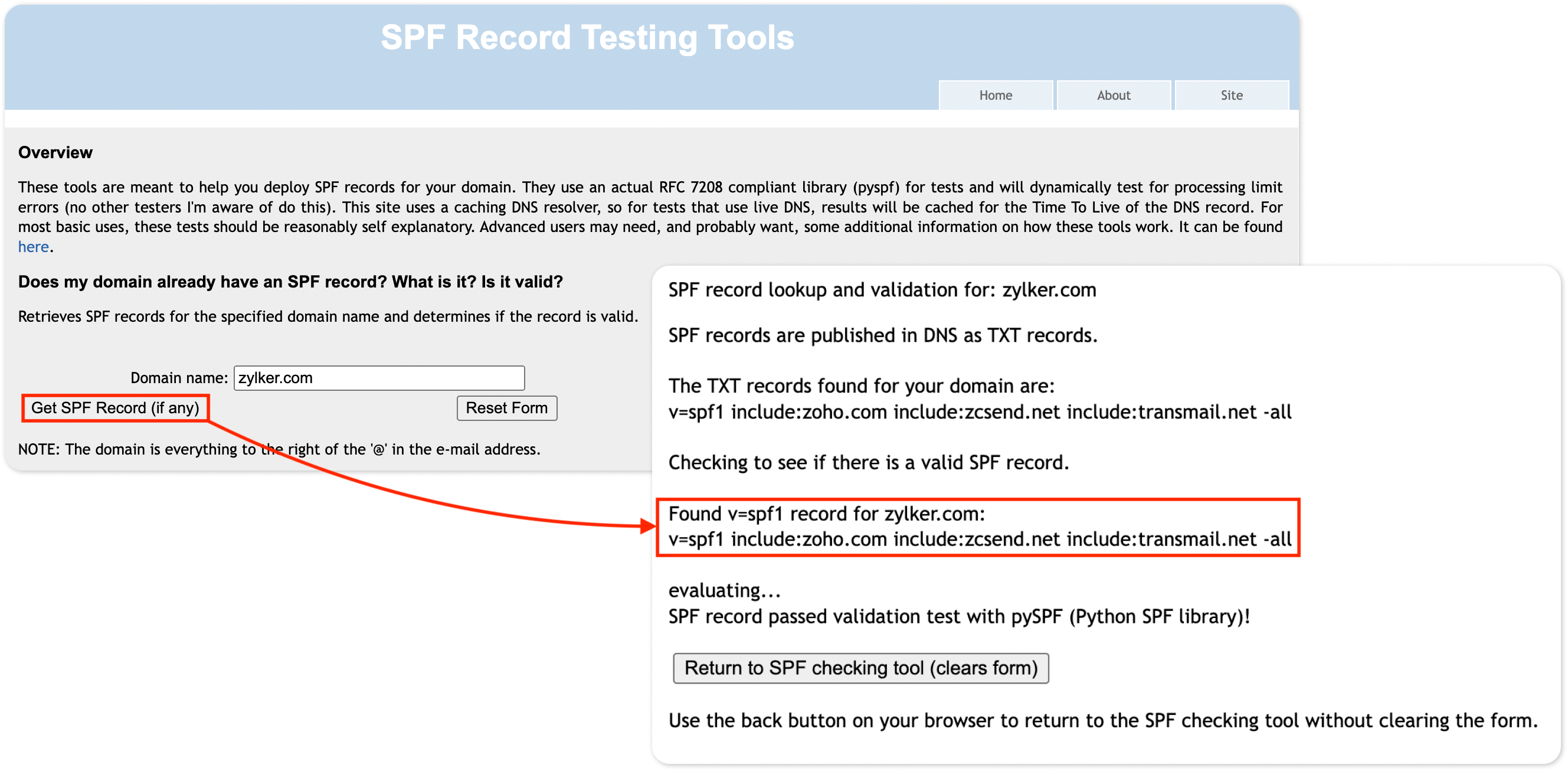 以下のリンクからツールを使用して、SPF データの有効性を認証することができます。
