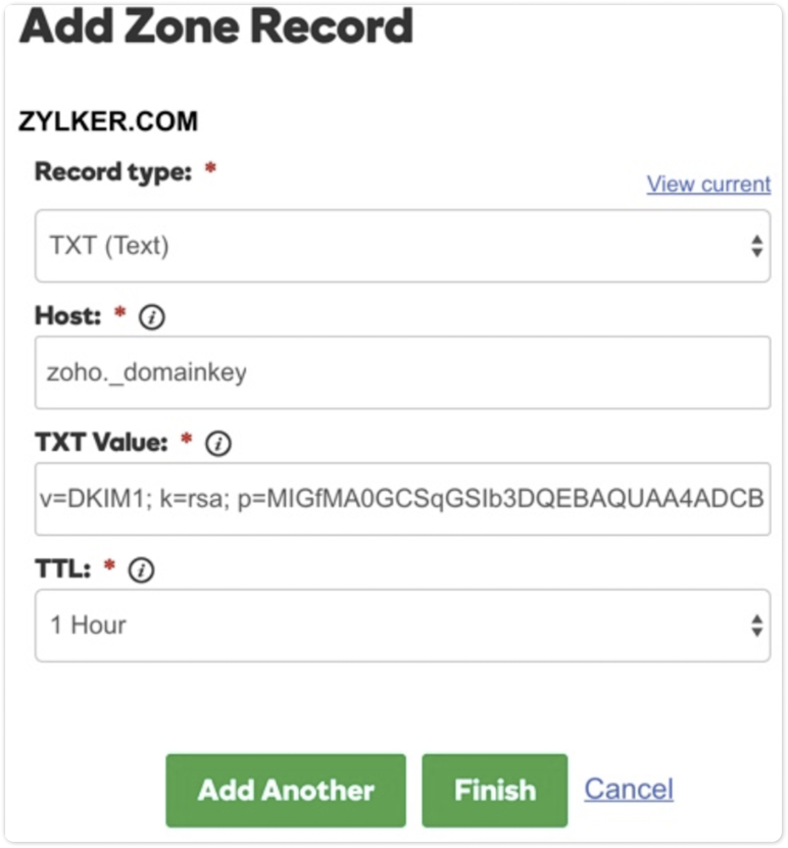 2. 多くのDNSホストでは、 1522905413783._domainkeyをTXTデータ名として入力するだけで、フルドメインの代わりに彼らは自動的にあなたのドメインを末尾に追加します。