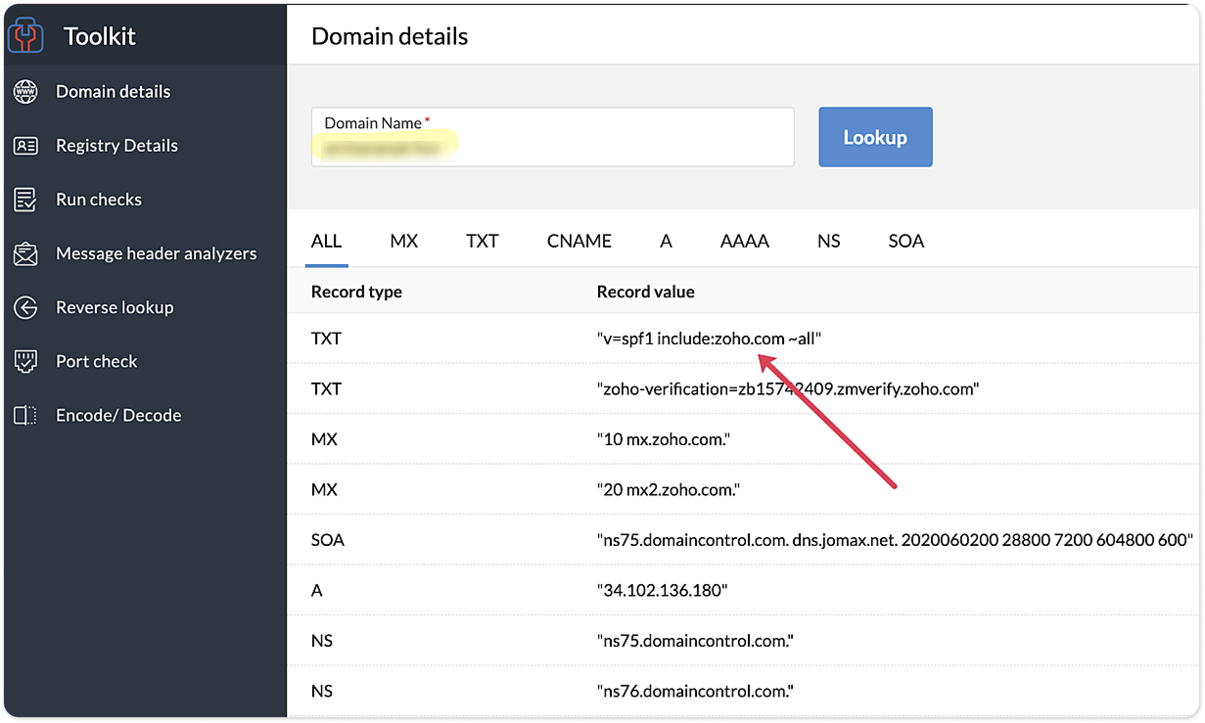SPF TXTレコードをドメインマネージャーに追加するには: