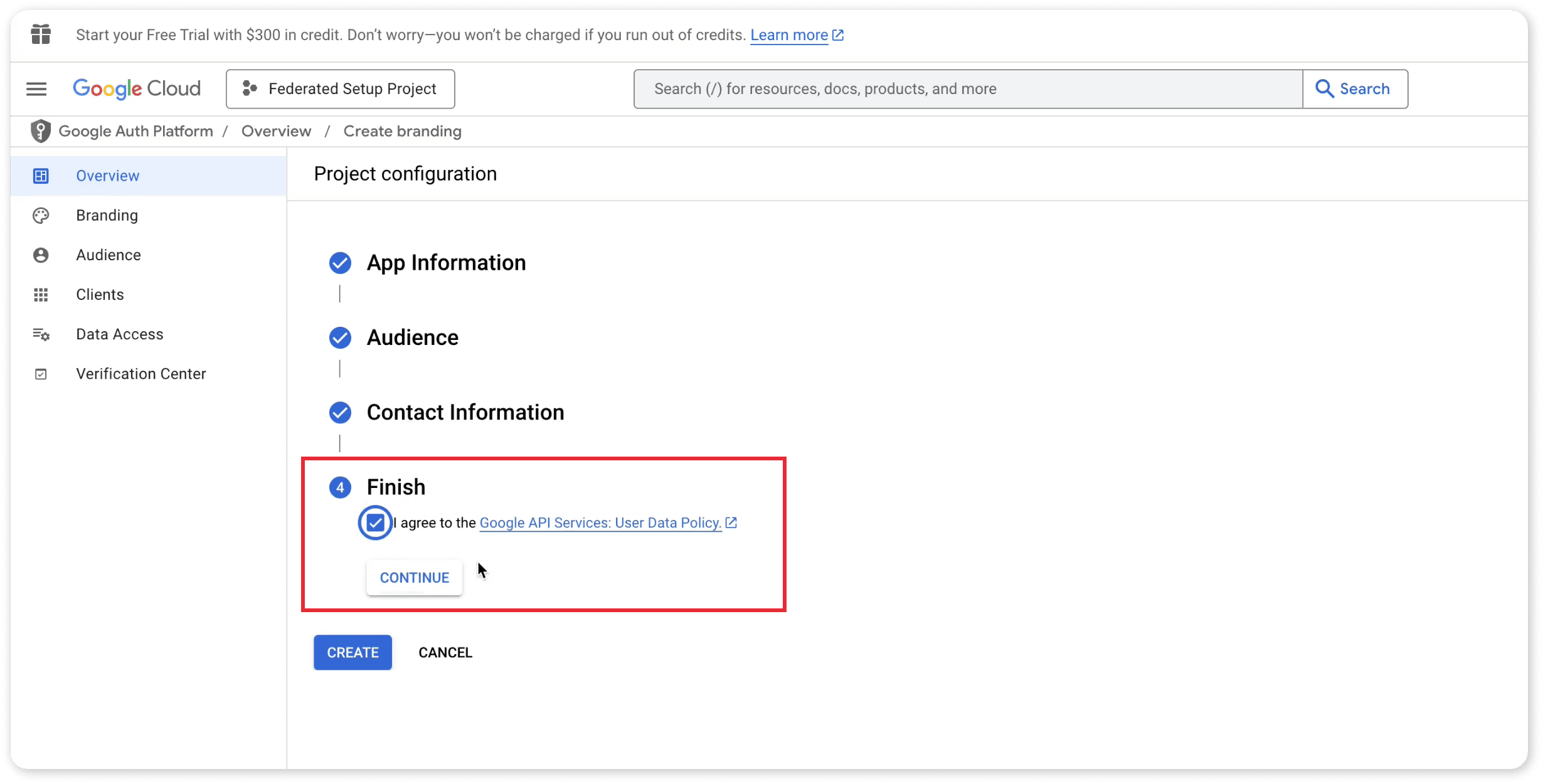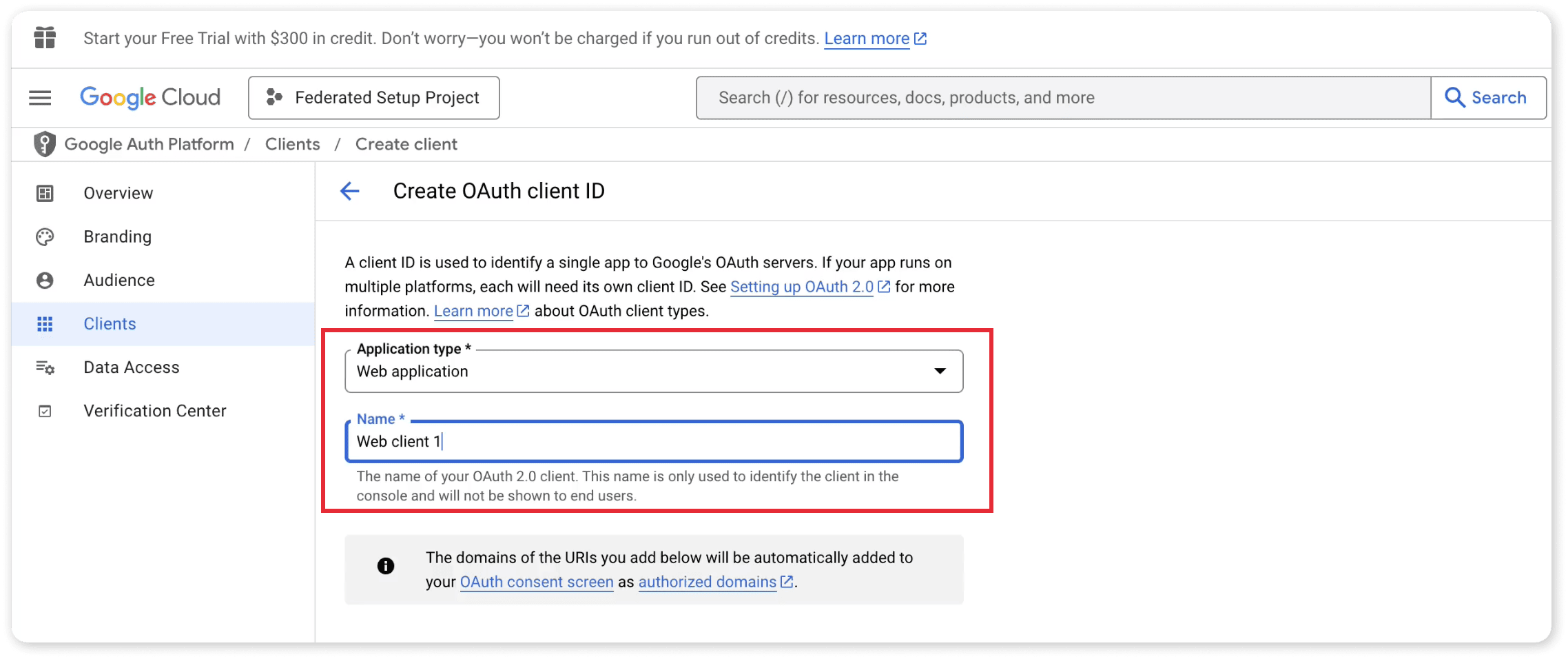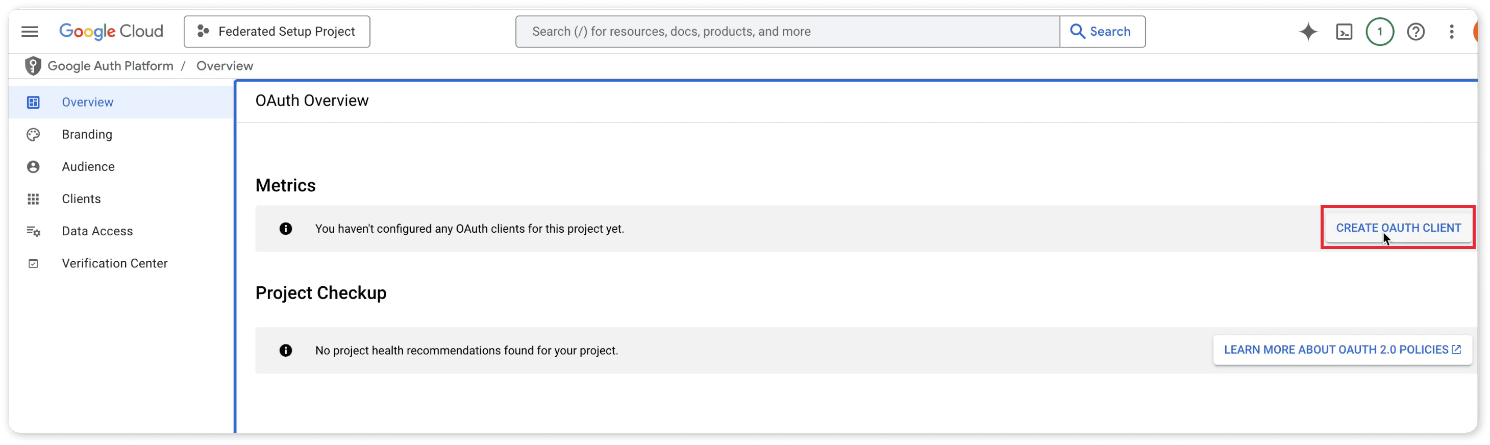 「作成 OAUTH CLIENT」ボタンをクリックします。