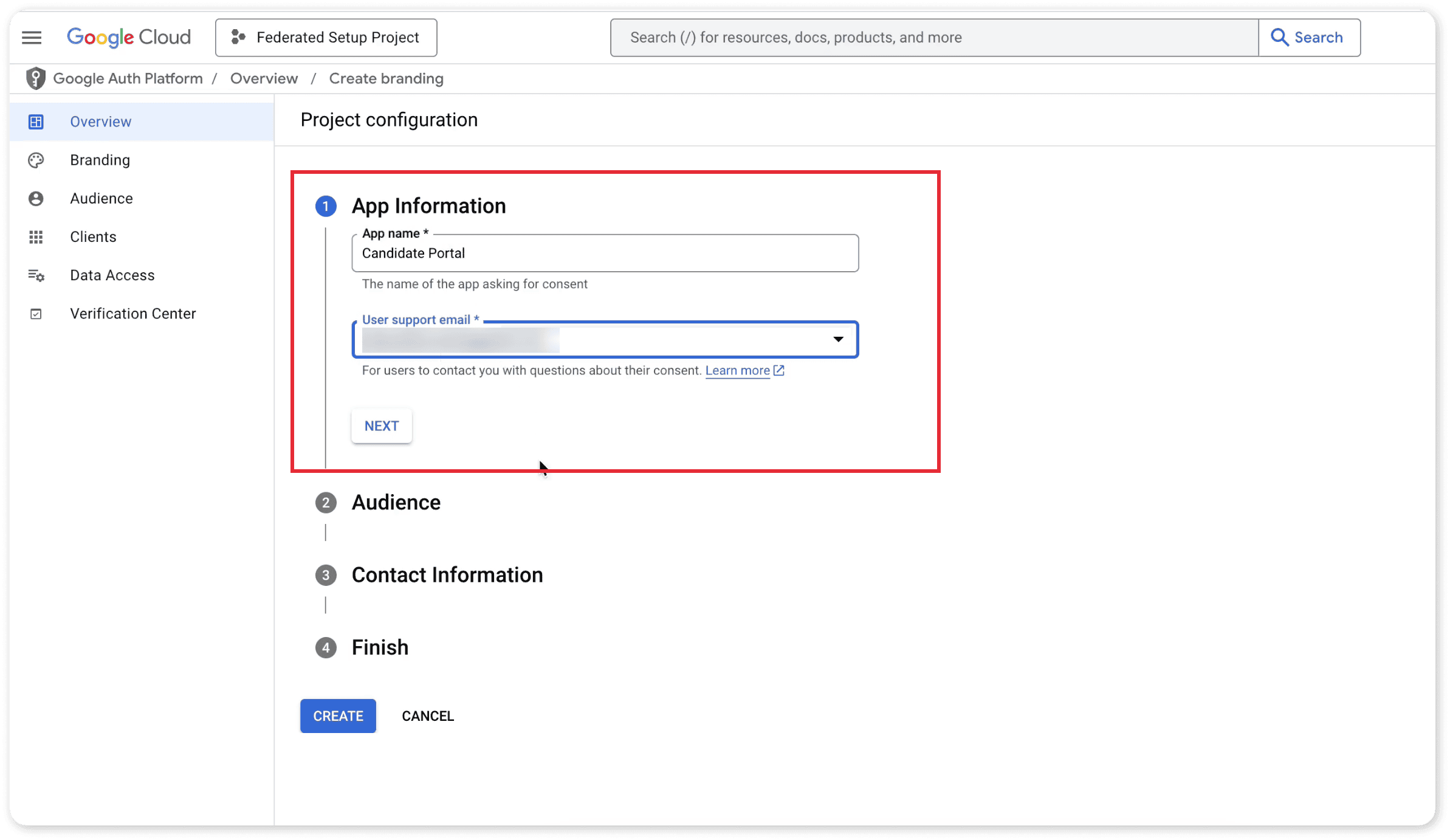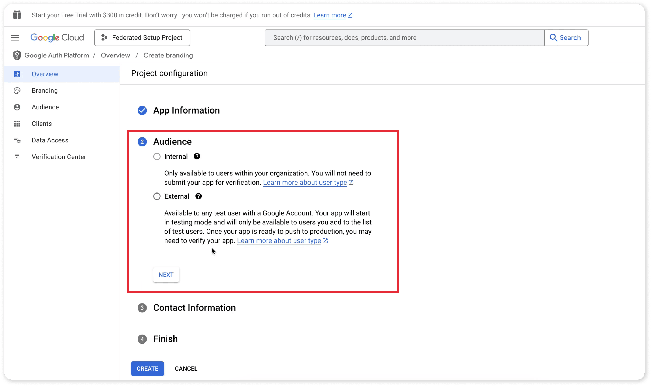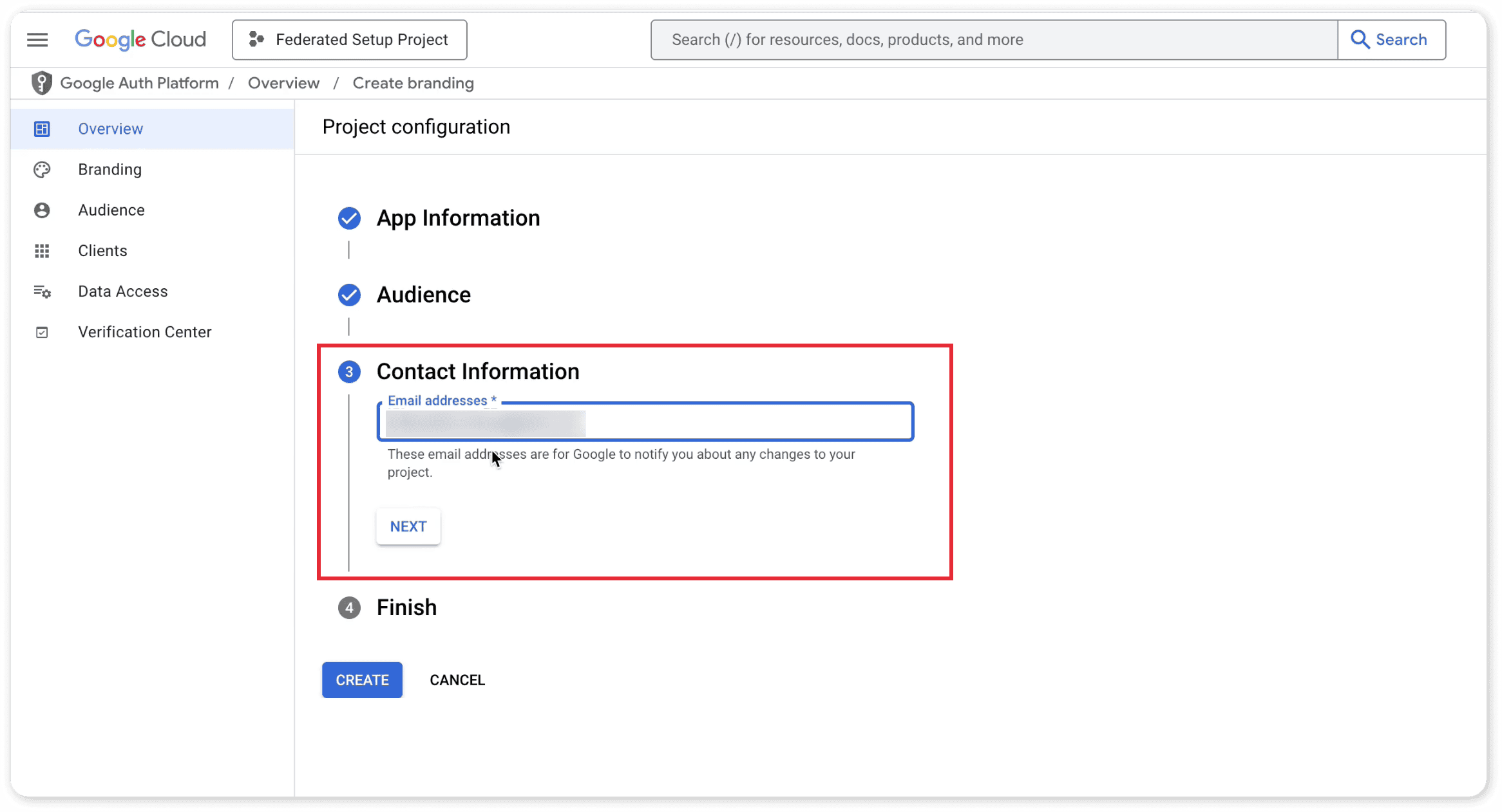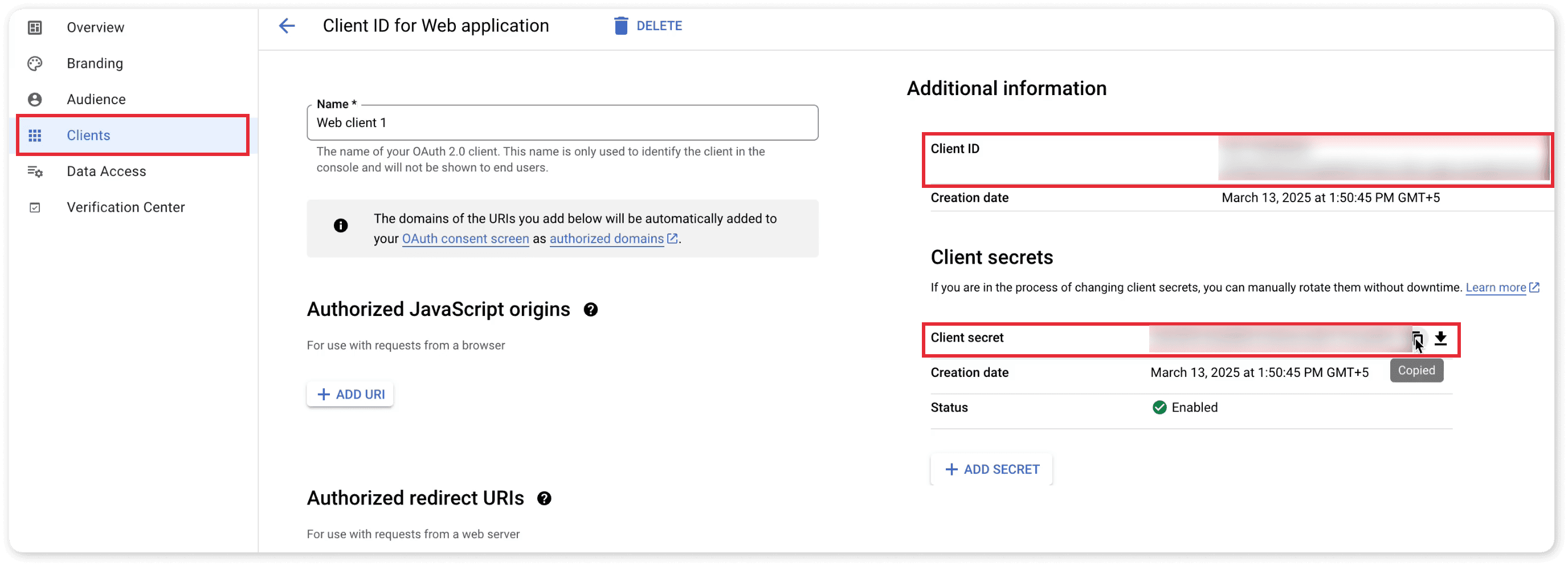 「作成 OAUTH CLIENT」ボタンをクリックします。