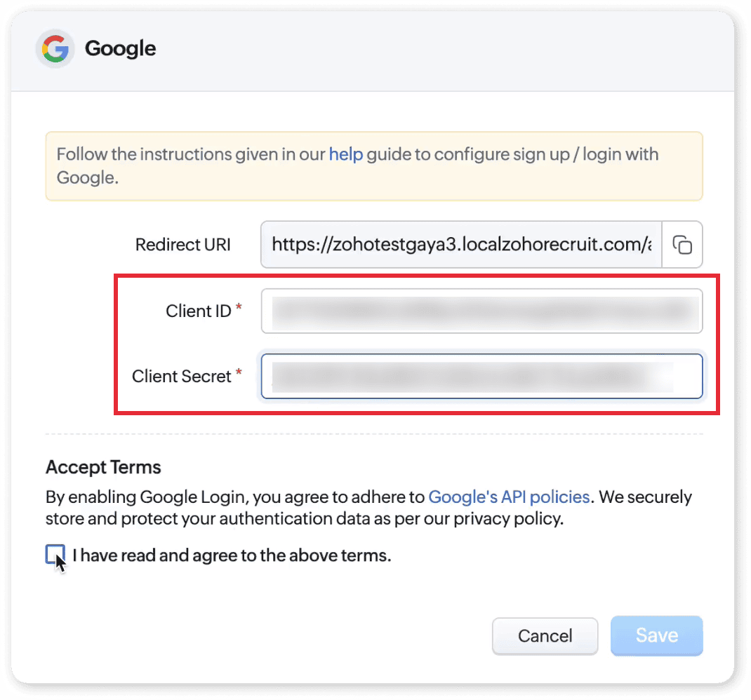 名前項目に、Zoho Recruit ポータルの名前を入力します。