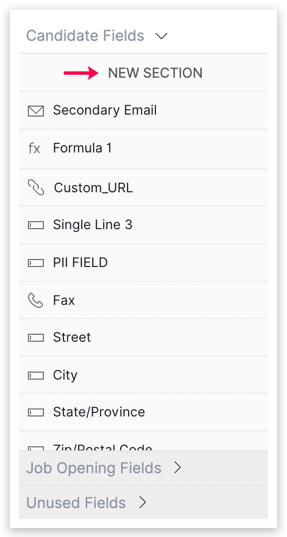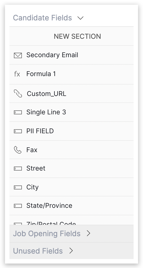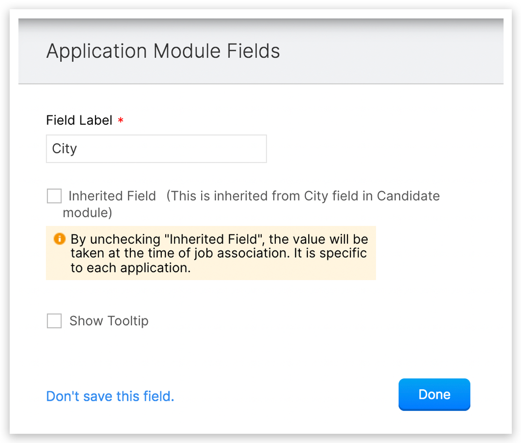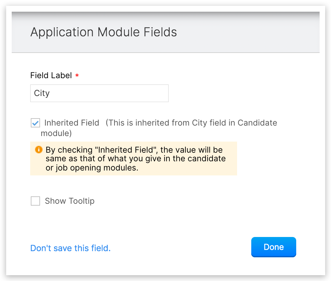 a) 継承フィールド: このオプションを選択すると、候補者/求人開拓モジュールのフィールドと同じ値が取得されます。