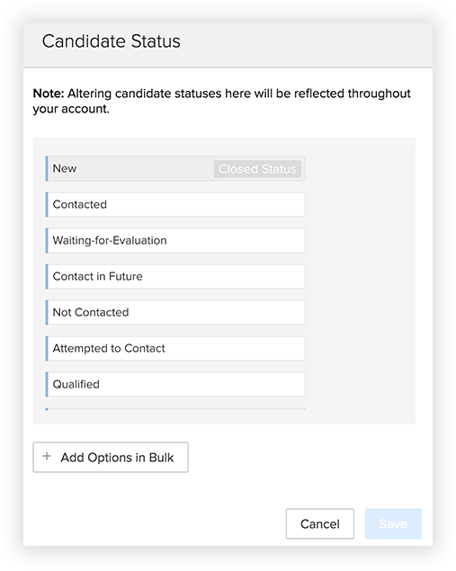 採用パイプラインから候補者のステータスを追加、変更、または削除することもできます。
