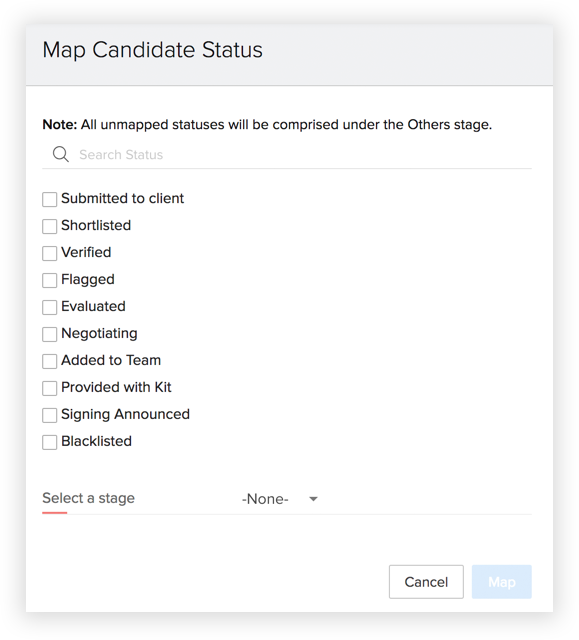 2. 任意のステージにまだ関連付けられていない候補ステータスのリストが表示されます。関連付けたいステータスを選択してください。