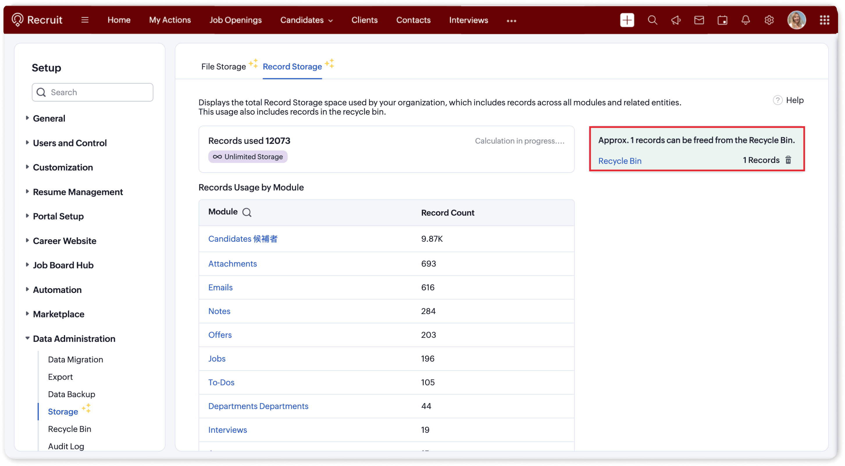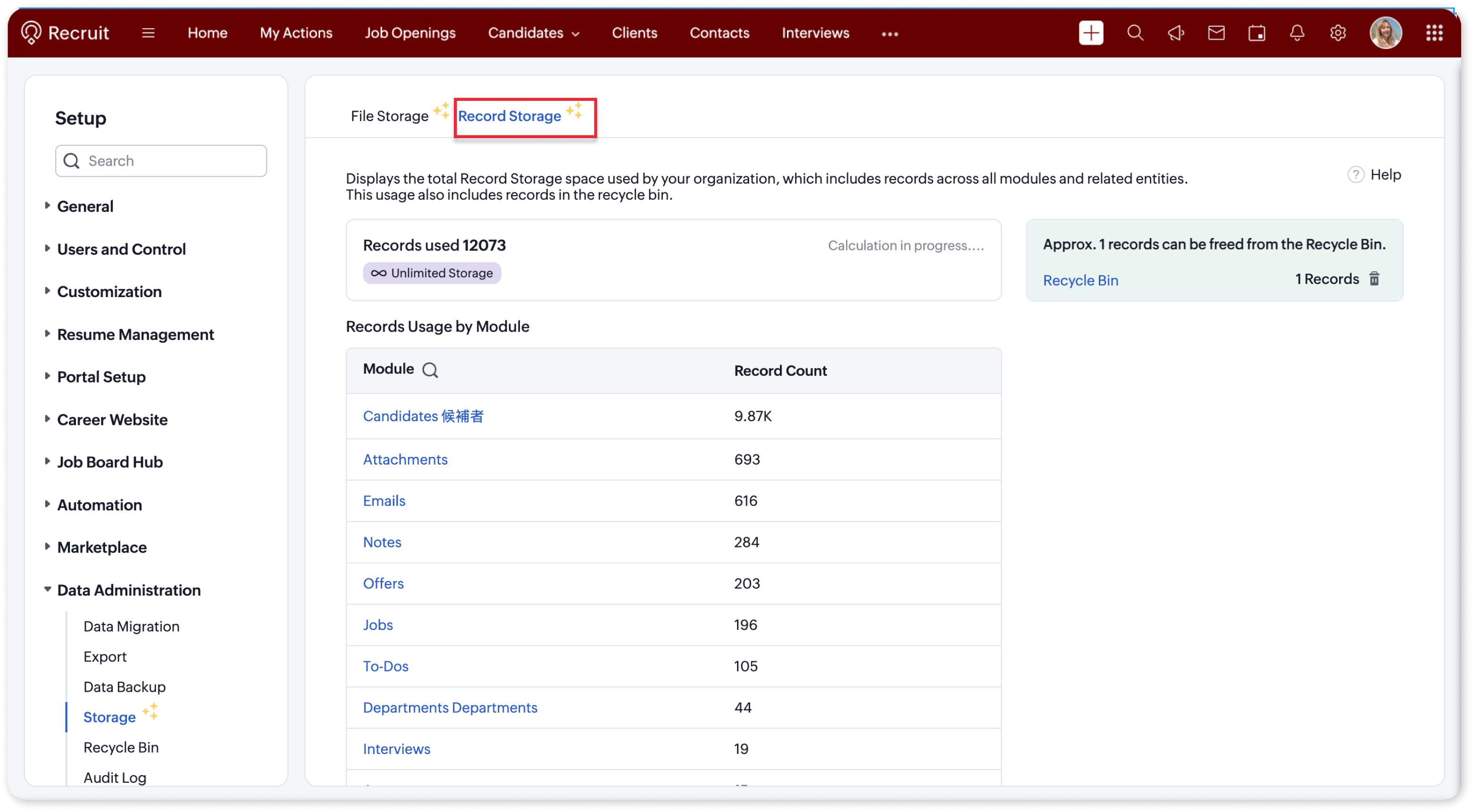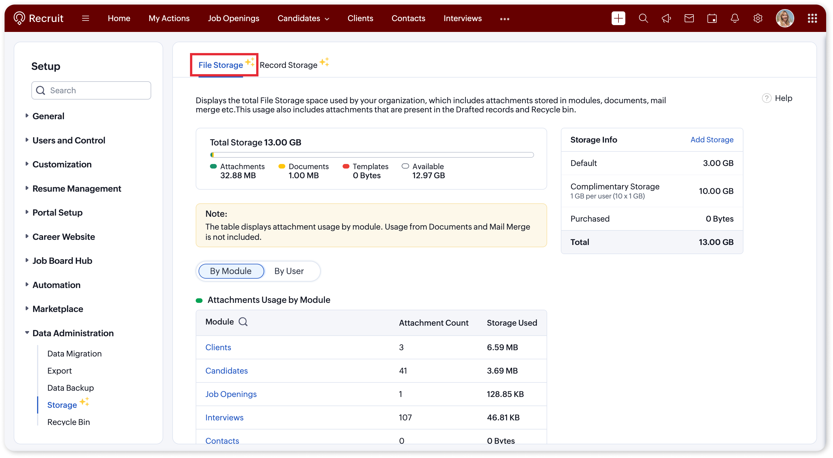 テンプレート– ストレージは、メールテンプレート・メールマージテンプレート・オファーテンプレート(Corp HR のみ)内で添付ファイル/filesを利用した場合に消費されます。