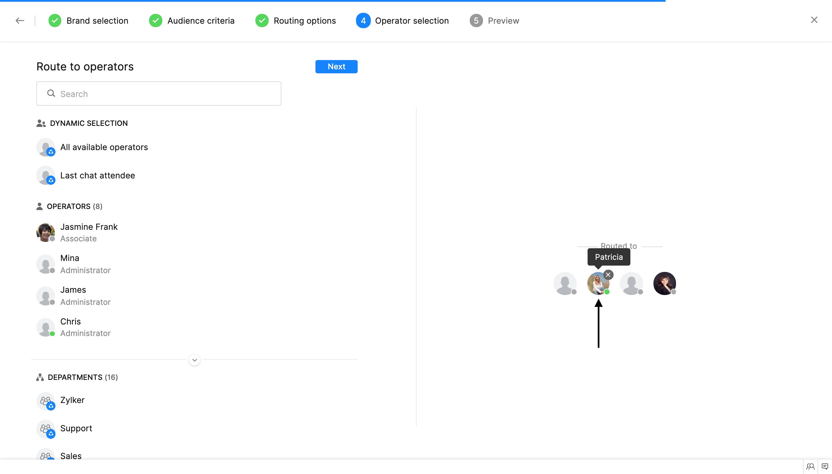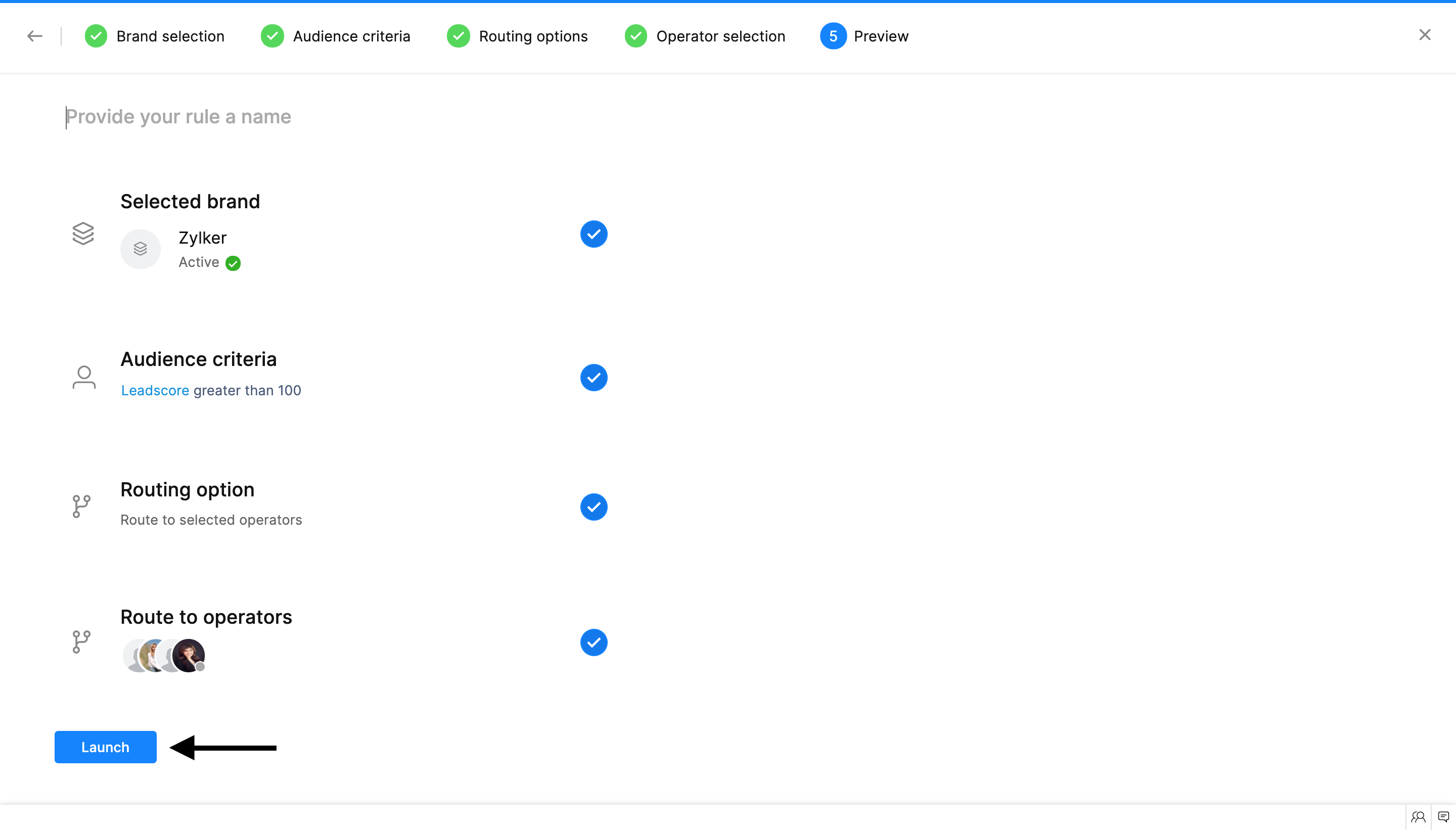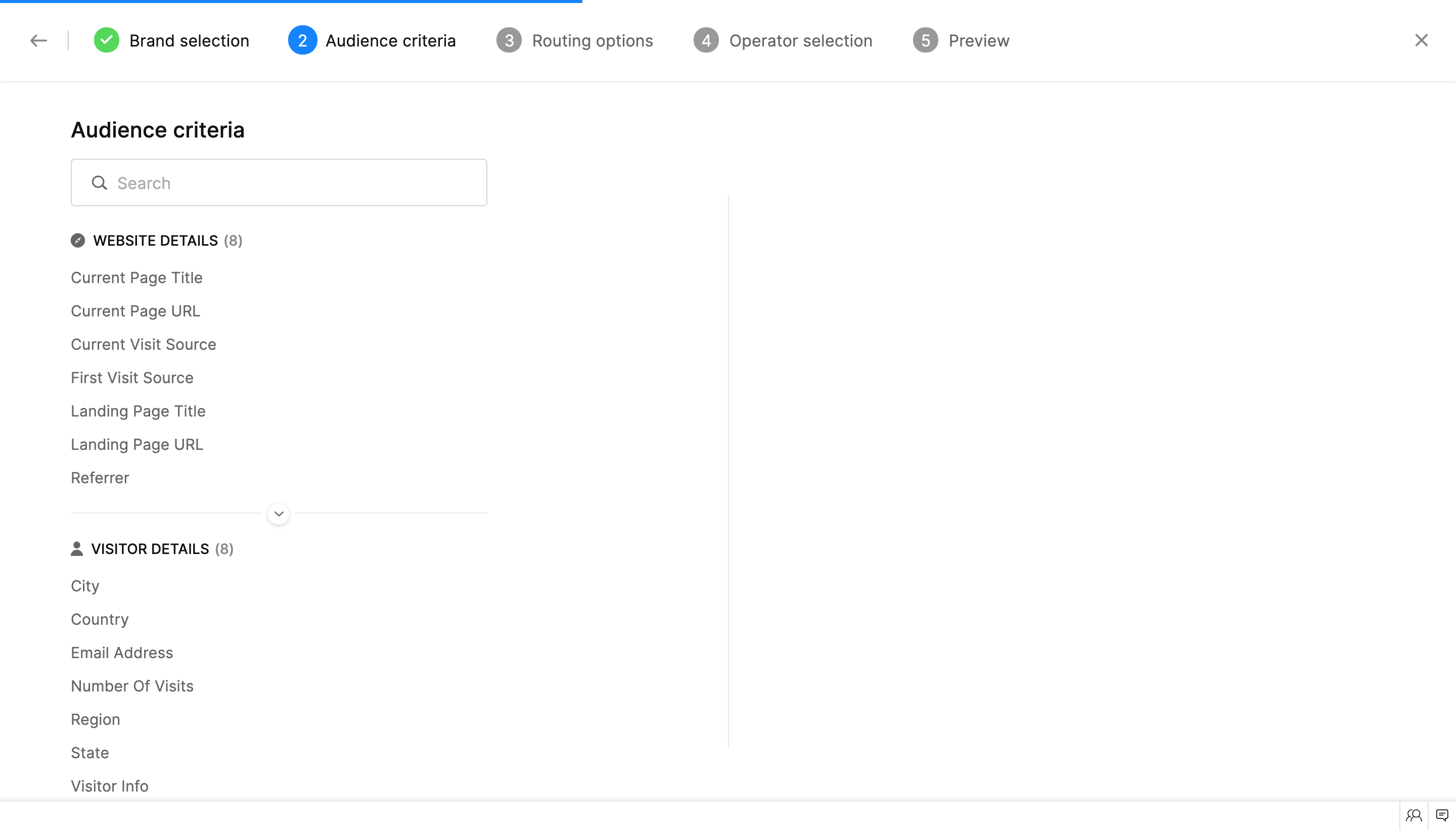 Clearbitから収集したデータに基づいて条件を設定できます。(メモ:Zoho SalesIQとClearbitの連携を設定した場合に限り、この条件が表示されます)