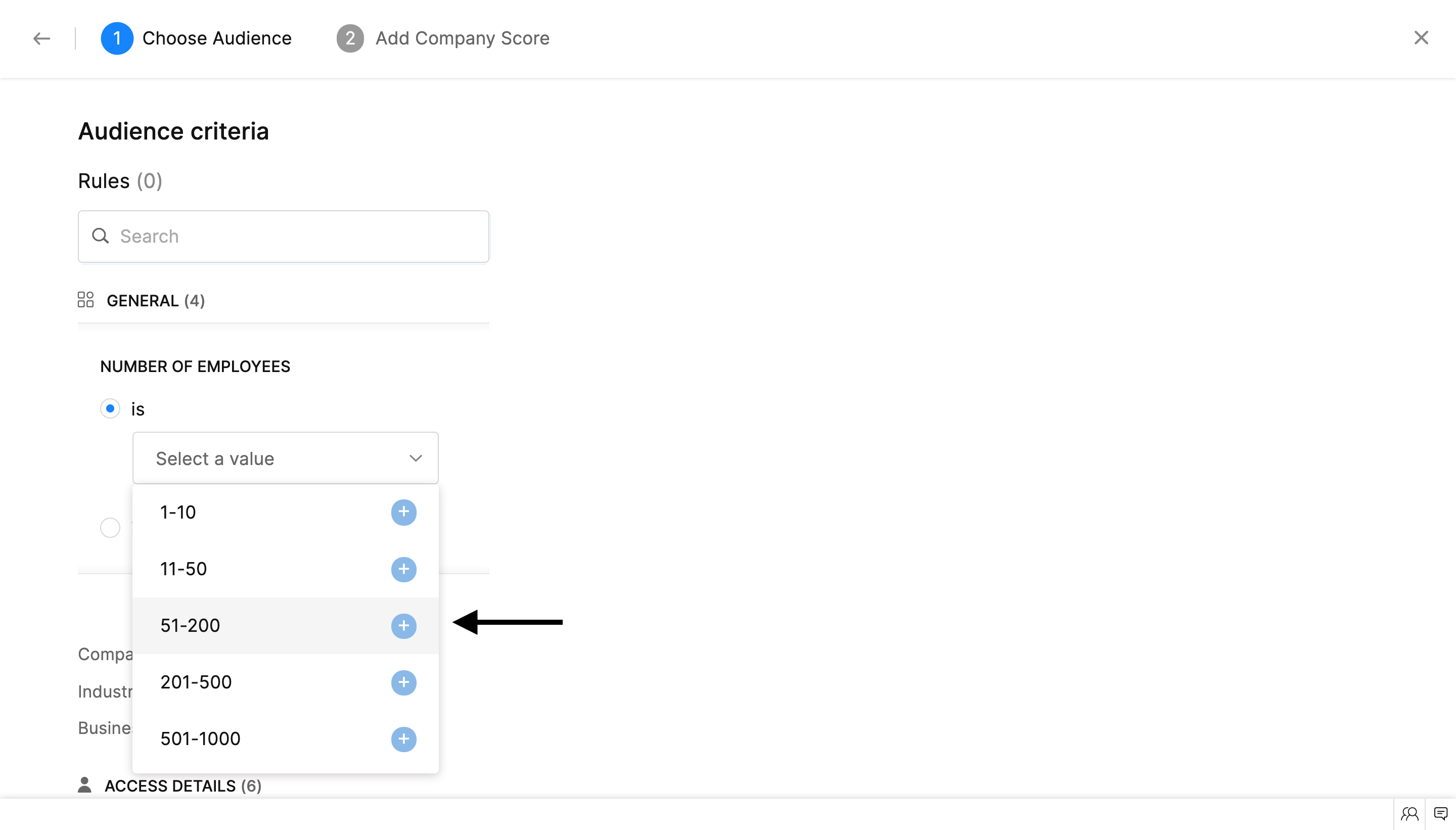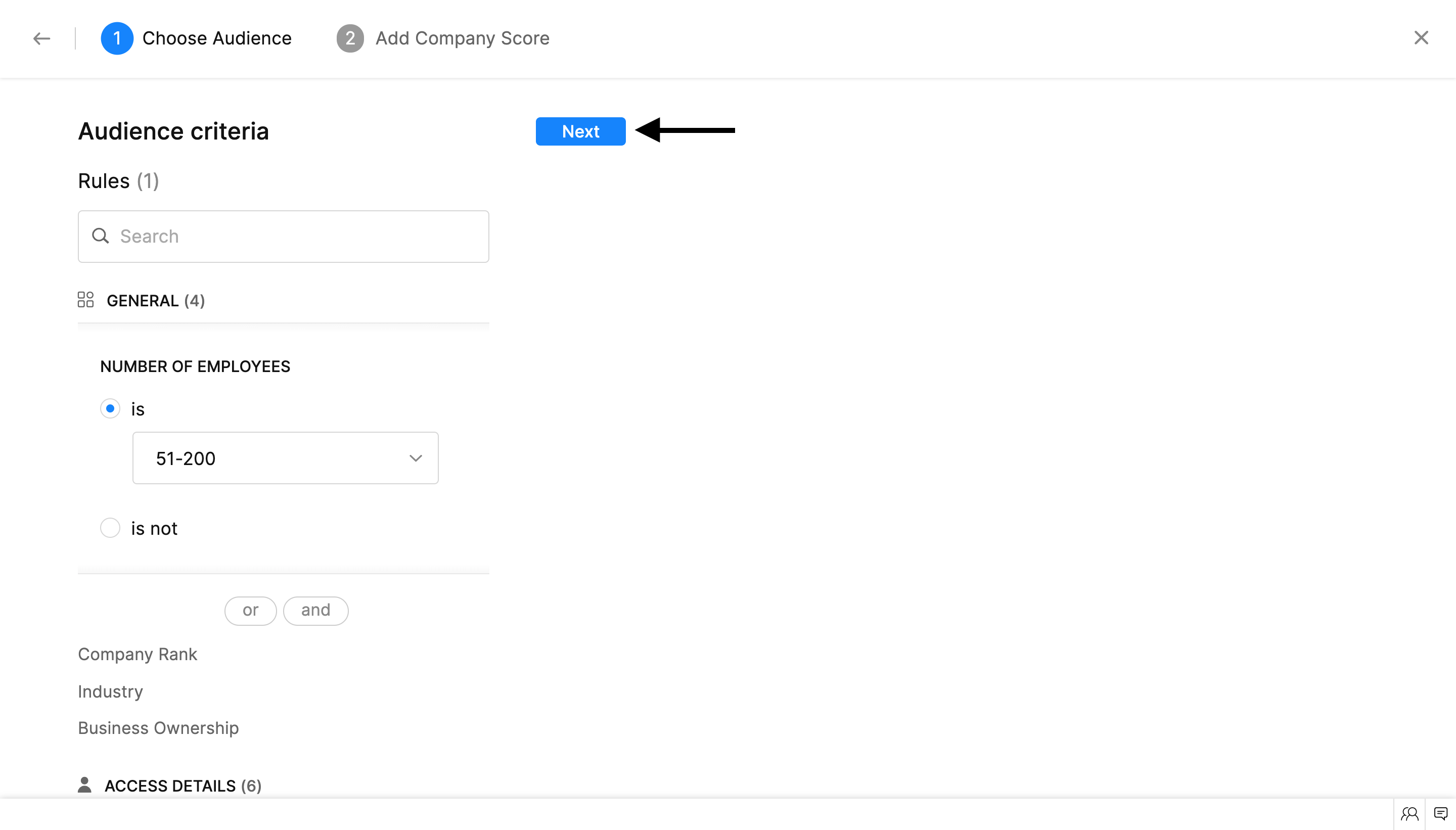 [会社スコアリング]セクションには、初期設定のルールが表示されます。ルールを編集するには: