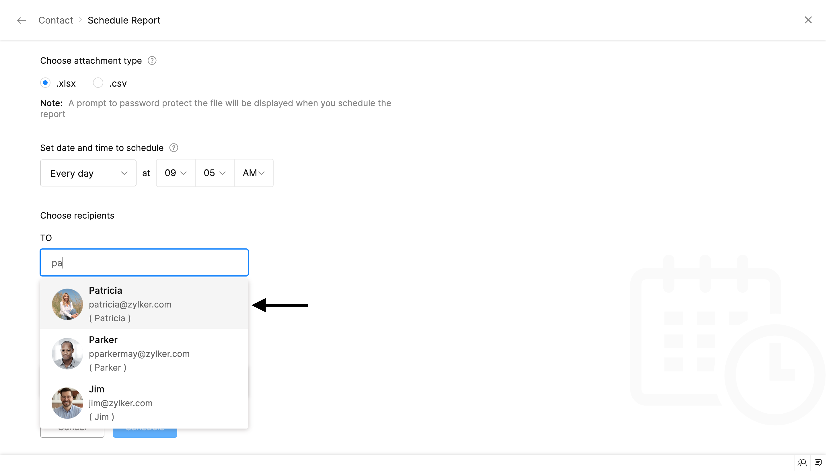 5. 次に、定期レポートを作成する日時を設定します。