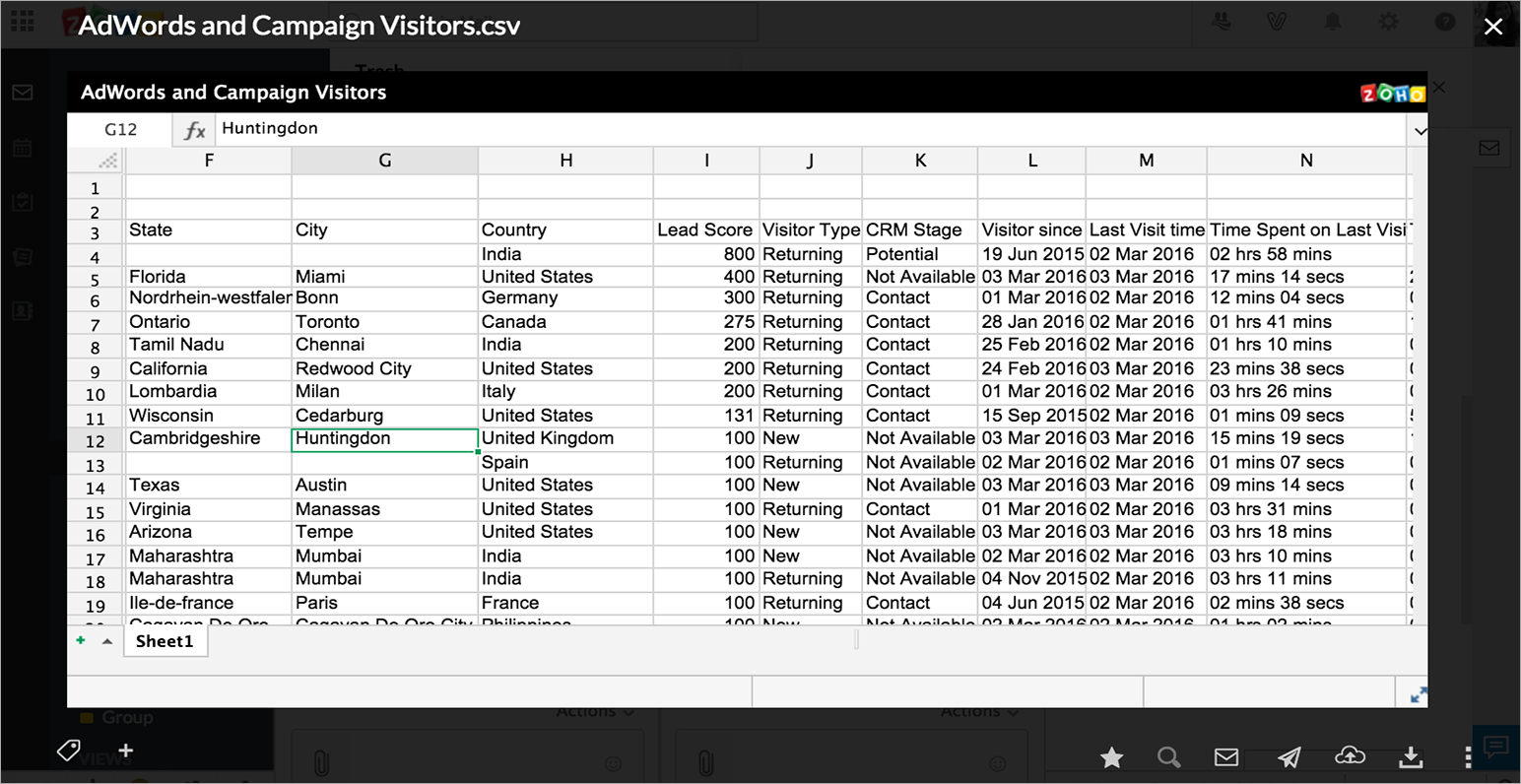 訪問者リストは、xlsxまたはcsvファイル形式でメールで送信されます。ファイルには、名前/訪問者ID、メールアドレス、連絡先など、訪問者の履歴に記録されている情報がすべて含まれます。
