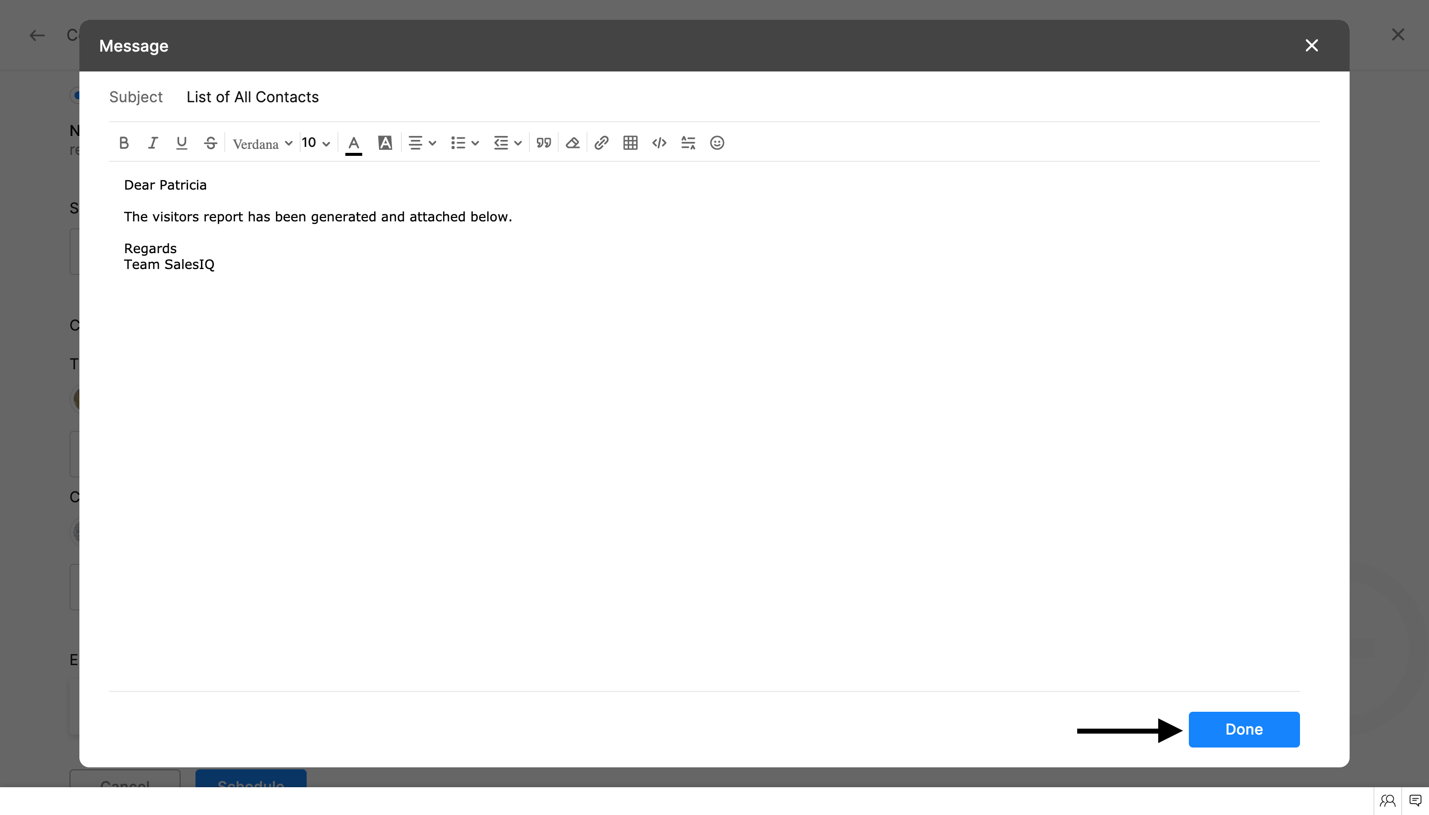 7. 定期レポートを送信する受信者のリストを選択します。件名には、訪問者リスト名が自動で設定されます。