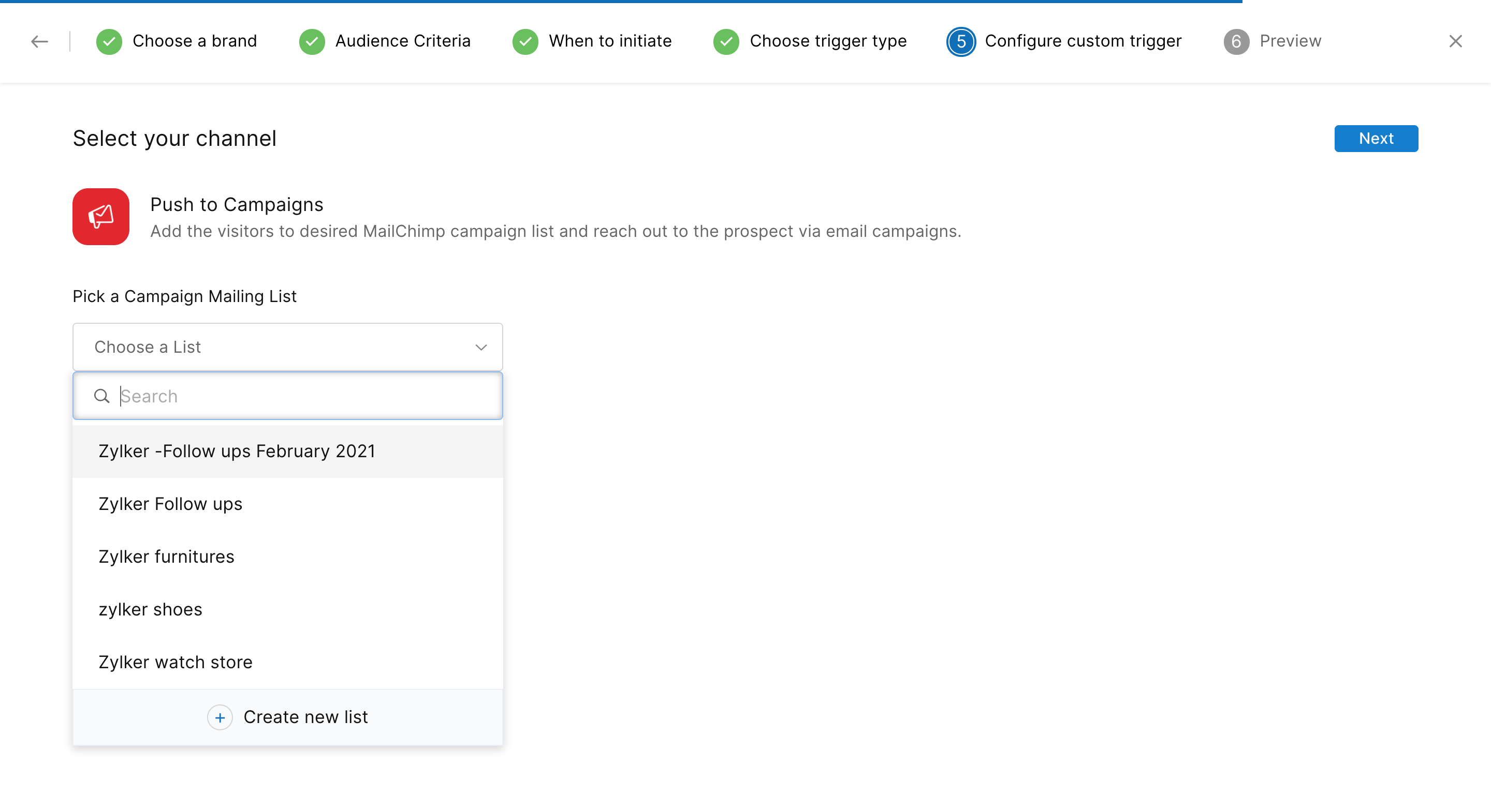 Webサイト訪問者に関するZoho CRMの取引先情報です。 |