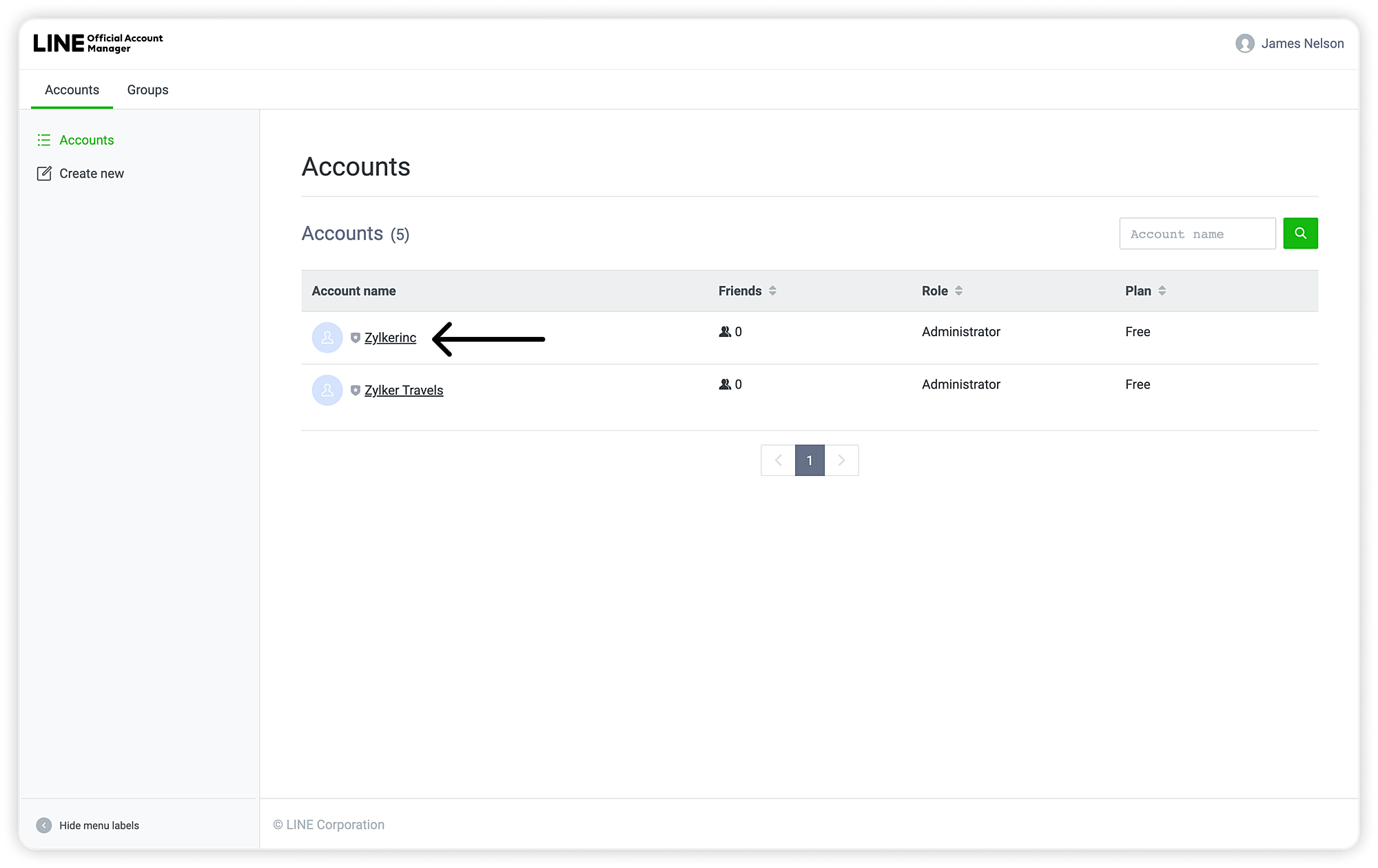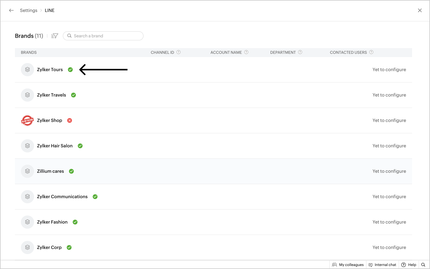 折れ線グラフ Chatアカウントと連携したいブランドを選択します。これにより、折れ線グラフ Chatの設定ページが開きます。