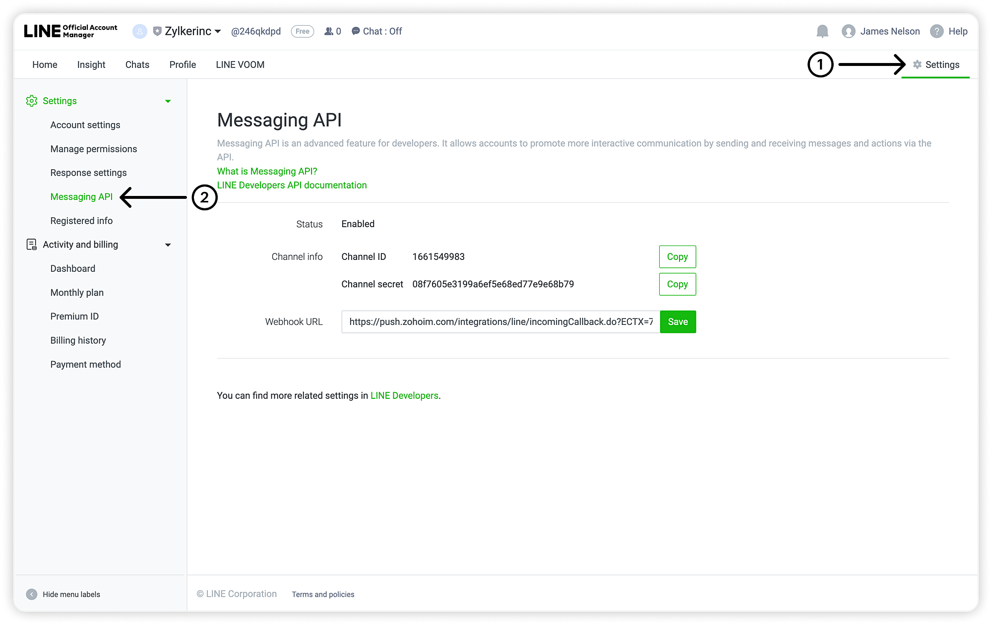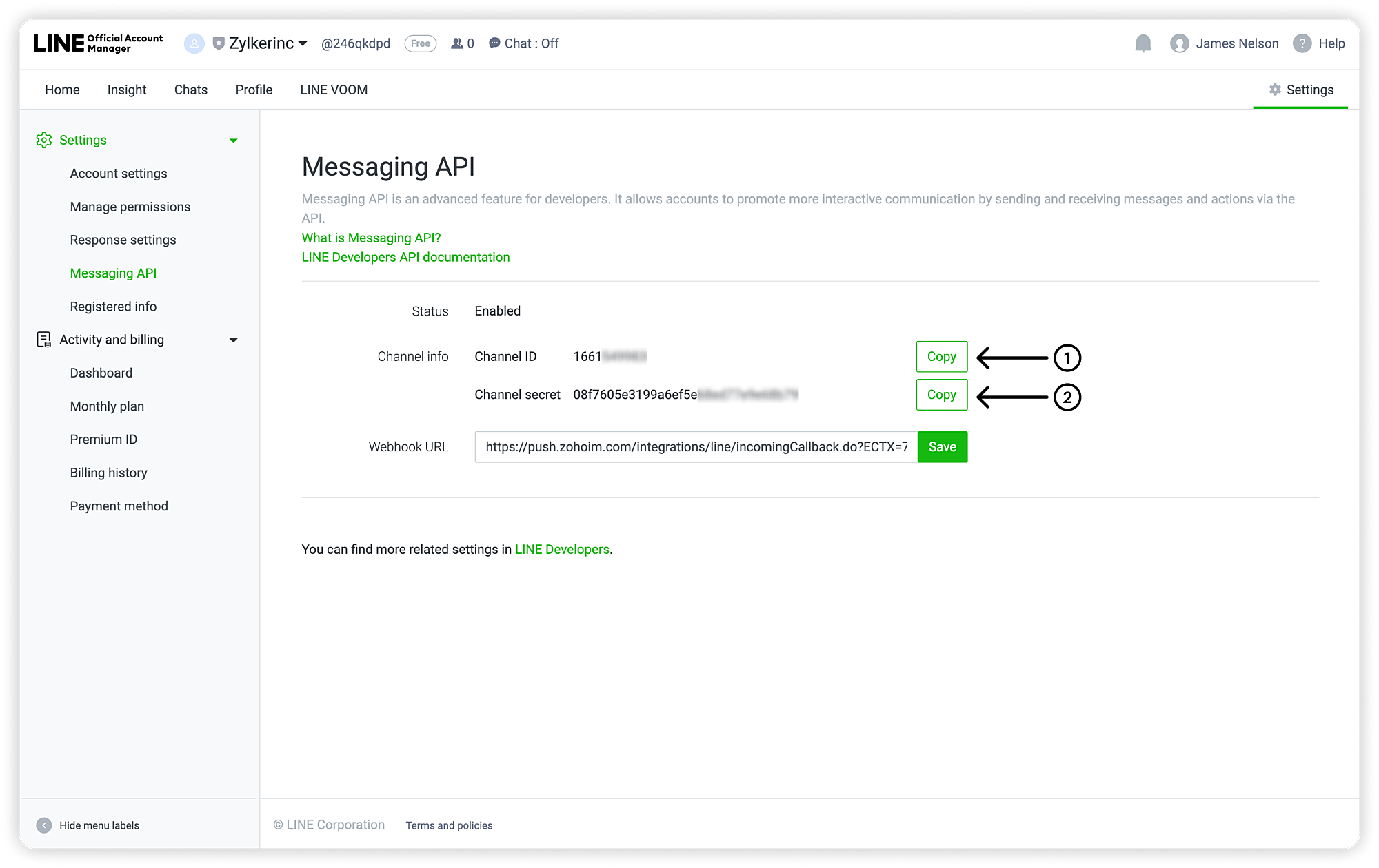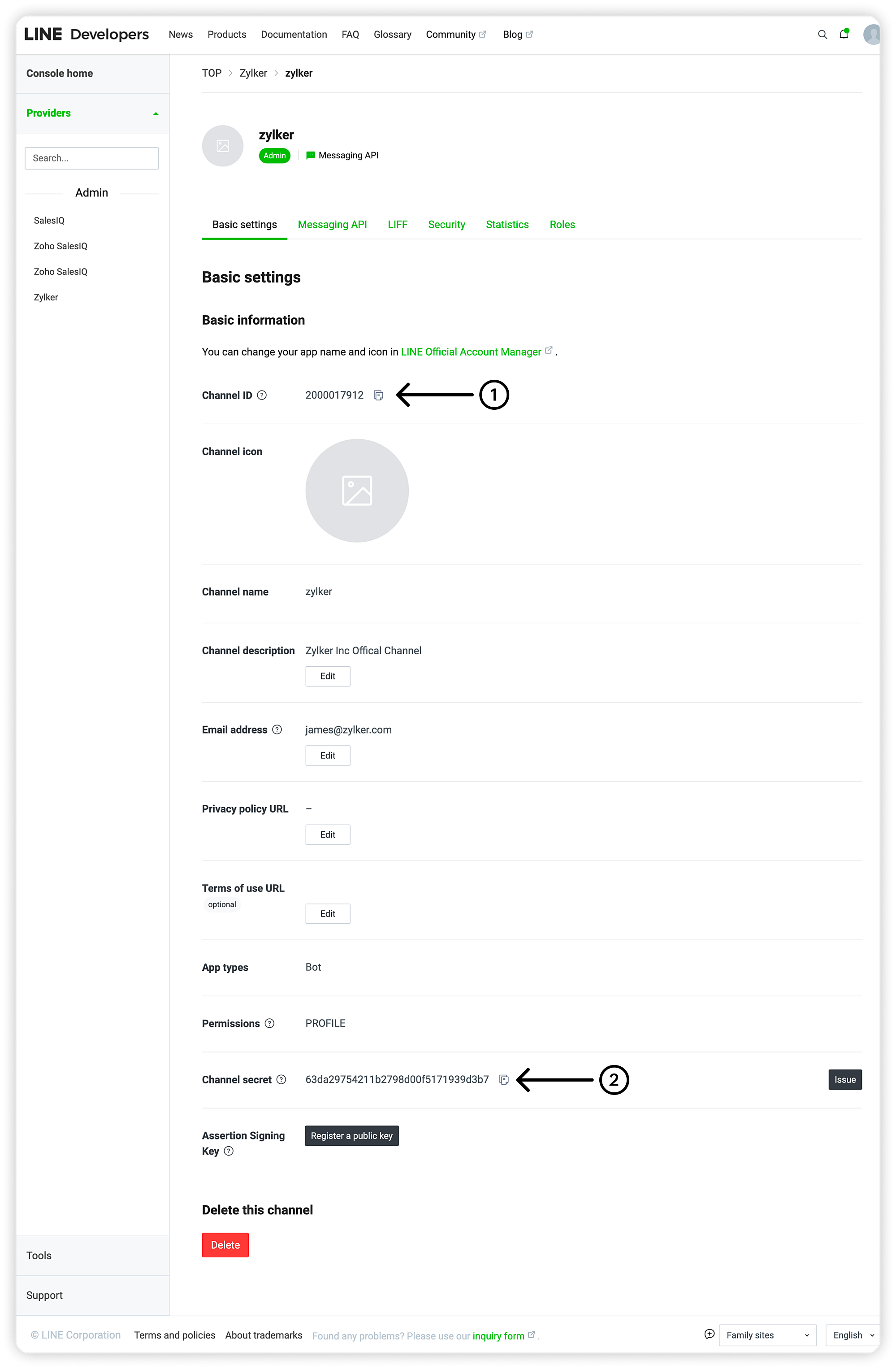 折れ線グラフ ChatアカウントのChannel IDおよびシークレットを取得する方法は2つあります。折れ線グラフ Official アカウント Managerまたは折れ線グラフ Developers Consoleから確認できます。