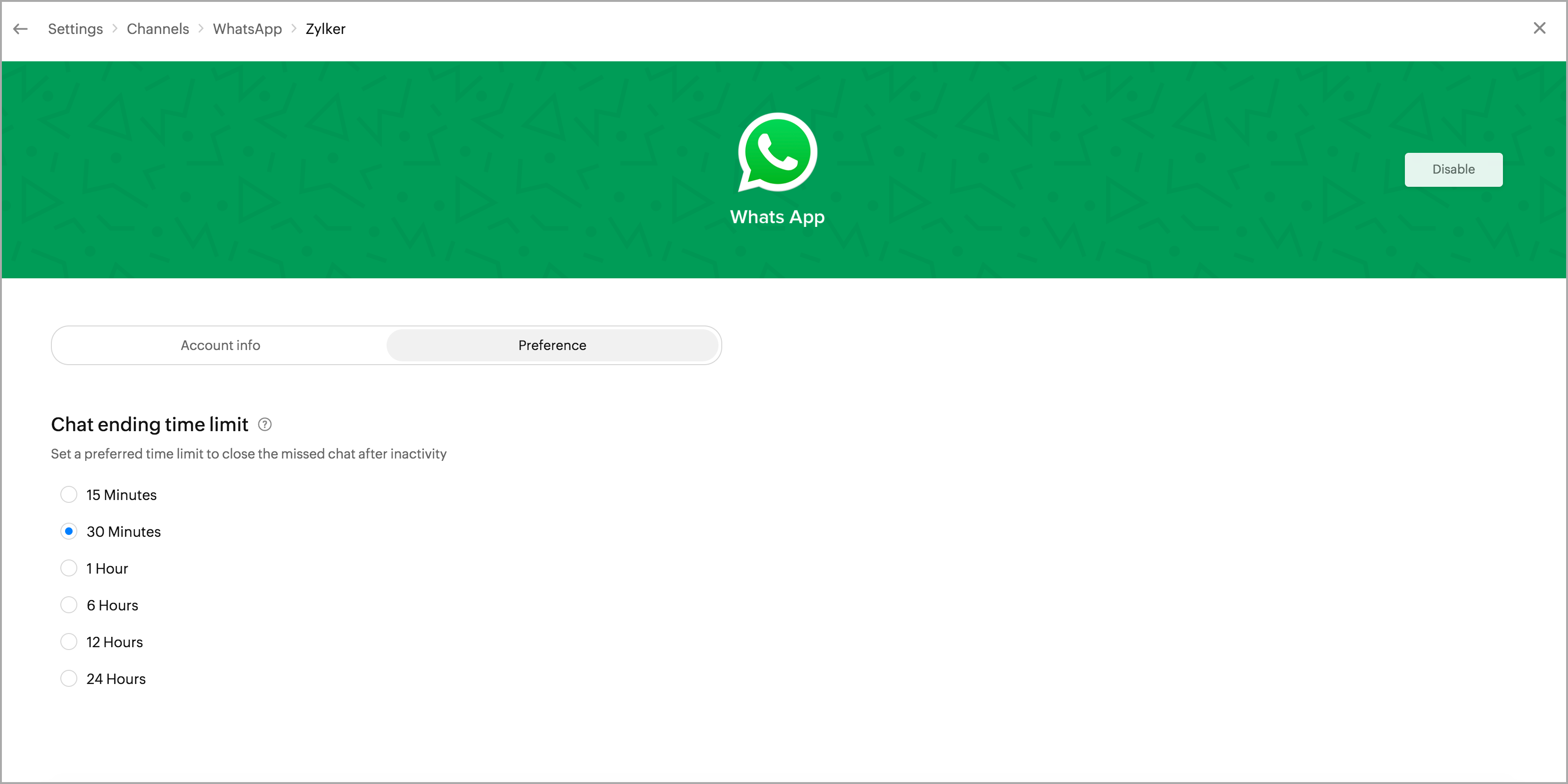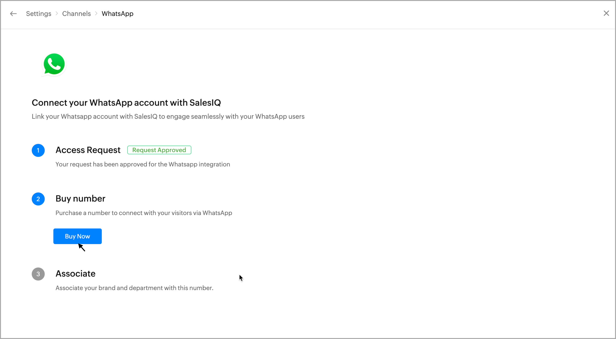 WhatsAppアカウントにZoho SalesIQのブランドと部門を関連付けるには