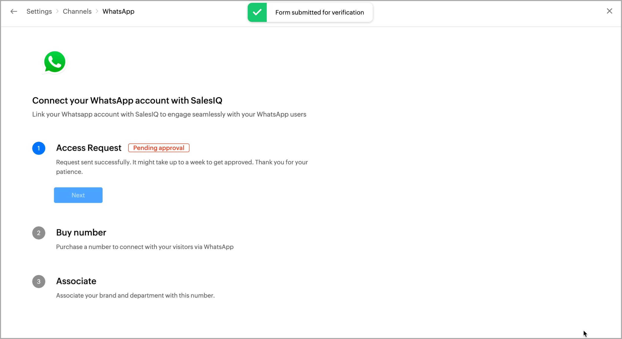 WhatsAppアカウントとZoho SalesIQのブランドの連携