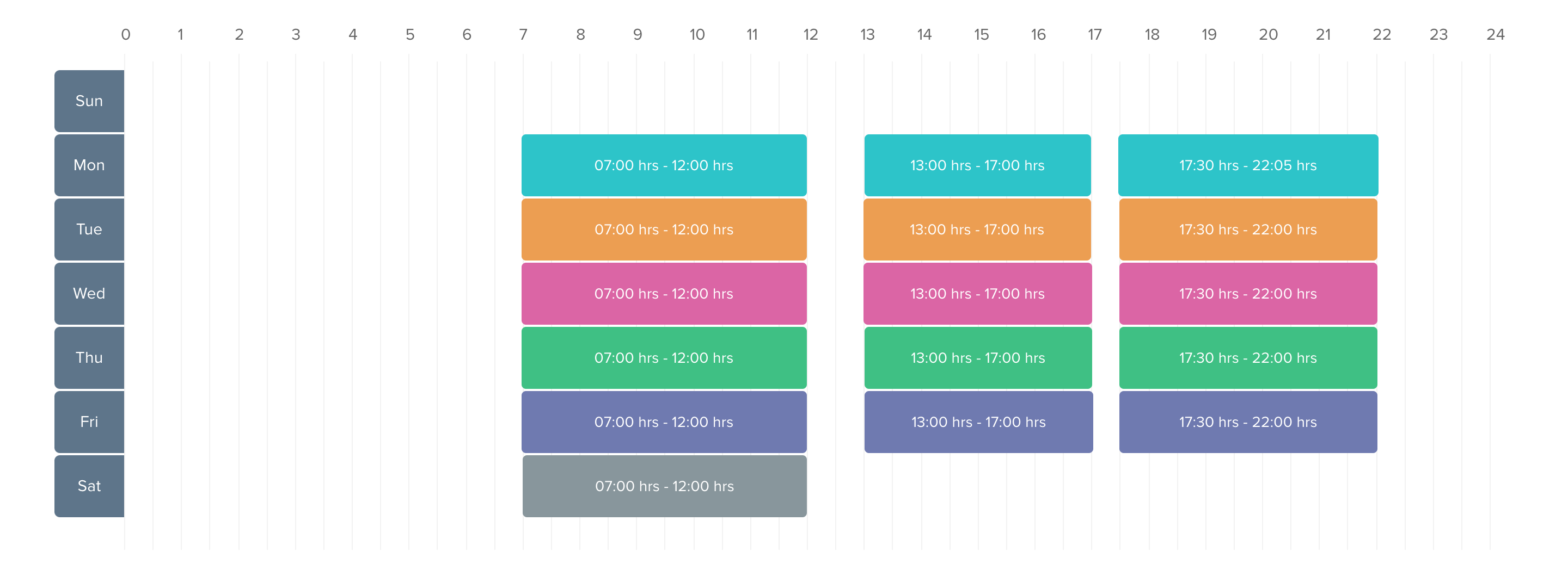 営業時間として、組織またはサポートの稼働時間を設定できます。営業時間を設定することで、訪問者が担当者の対応可否の状況を確認できます。これにより、訪問者は営業時間に応じてチャットでサポートを依頼できるようになります。営業時間を使用すると、担当者がログインしている場合でも、営業時間外にはチャットを非表示にできます。