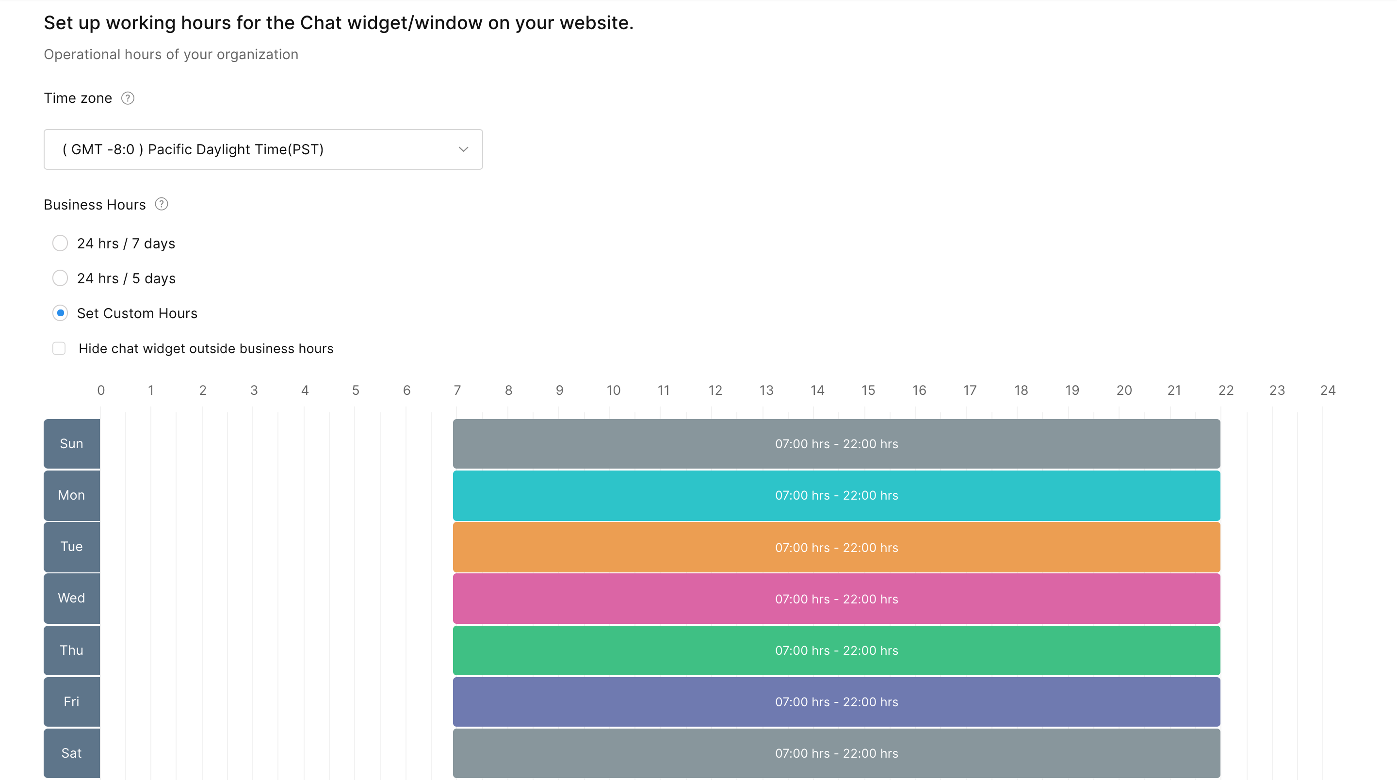 [営業時間外にチャットを隠す]の横にあるチェックボックスをクリックすると、営業時間外にチャットウィジェットを非表示にできます。