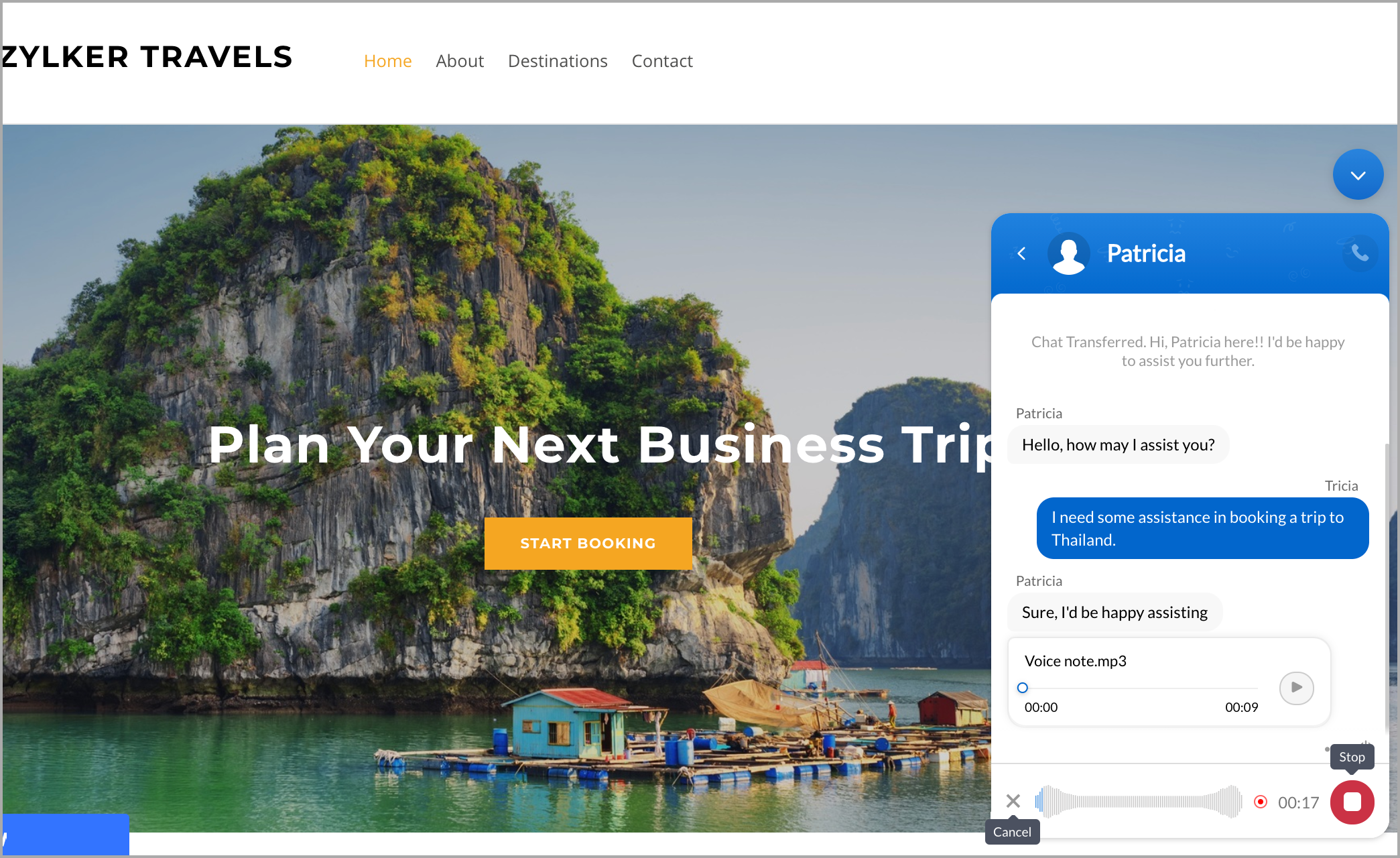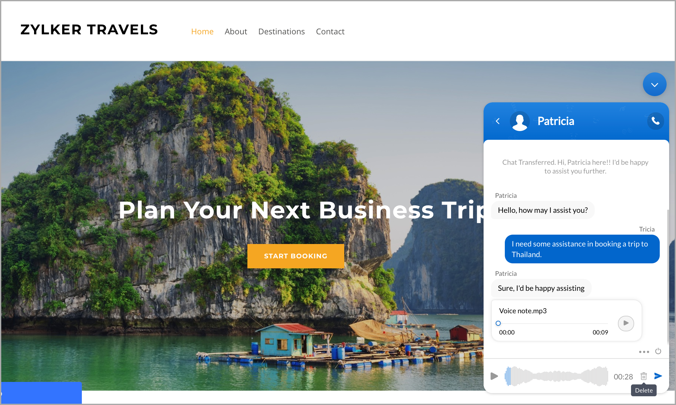 音声メモを使用すると、訪問者は長文のメッセージを入力する時間を削減し、質問内容をすばやく説明できるため、問題を迅速に解決しやすくなります。