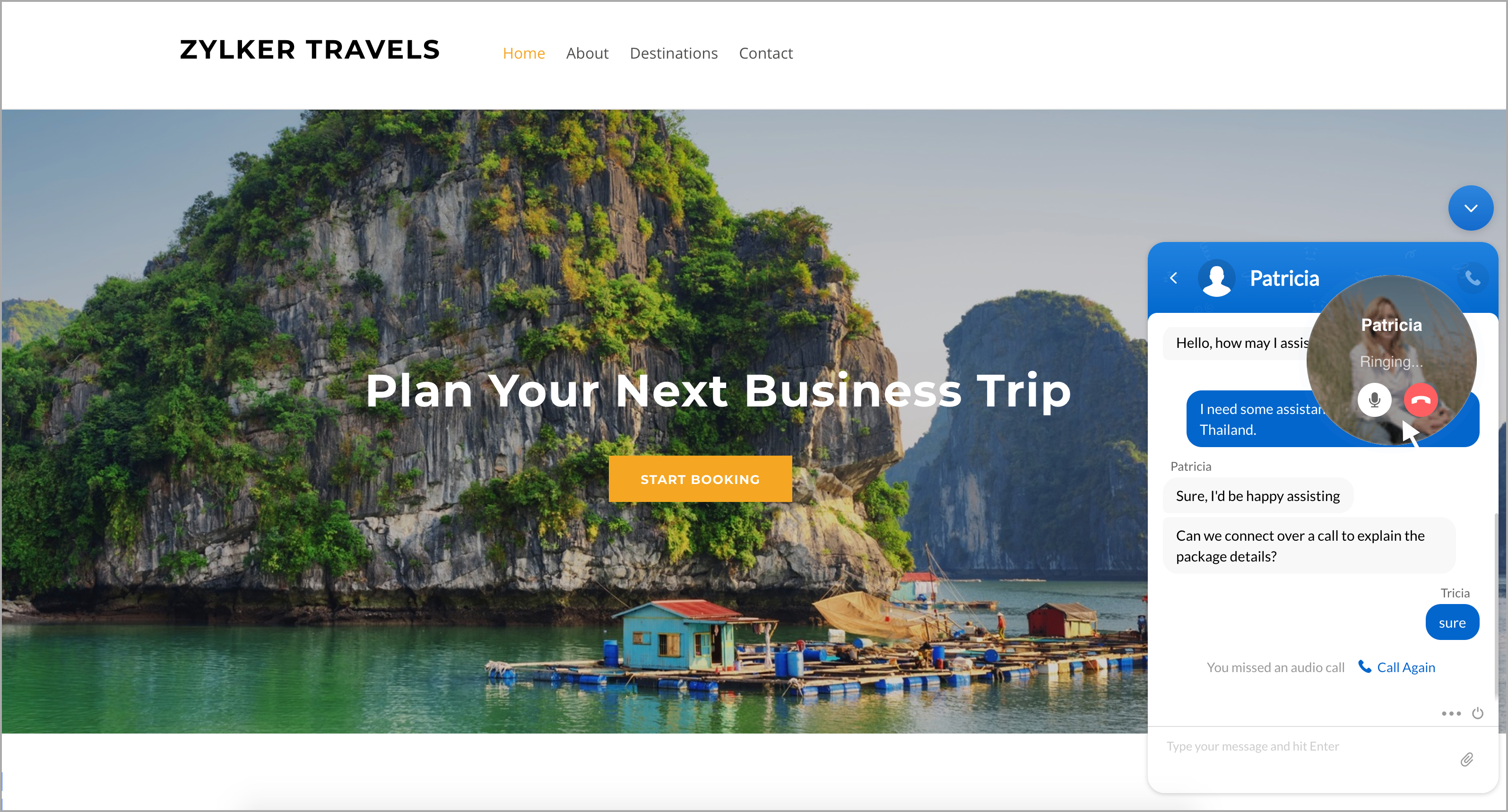2. これで、訪問者はチャットウィンドウから音声通話で担当者に連絡できます。 詳細はこちら