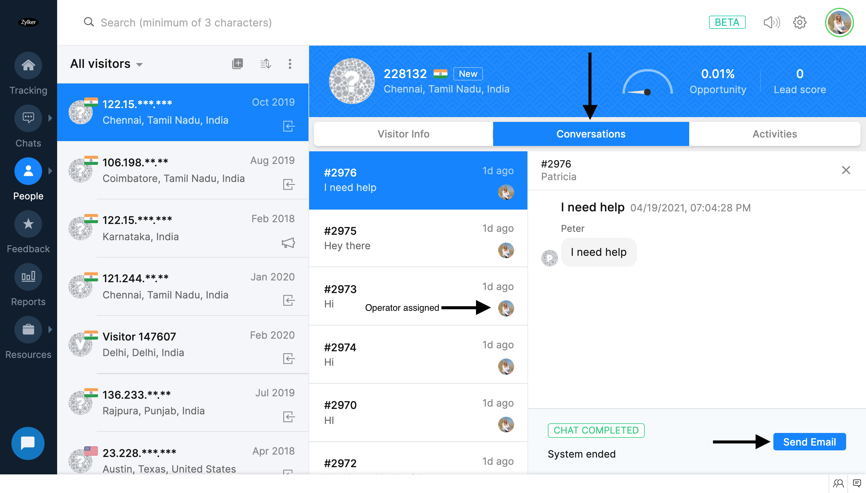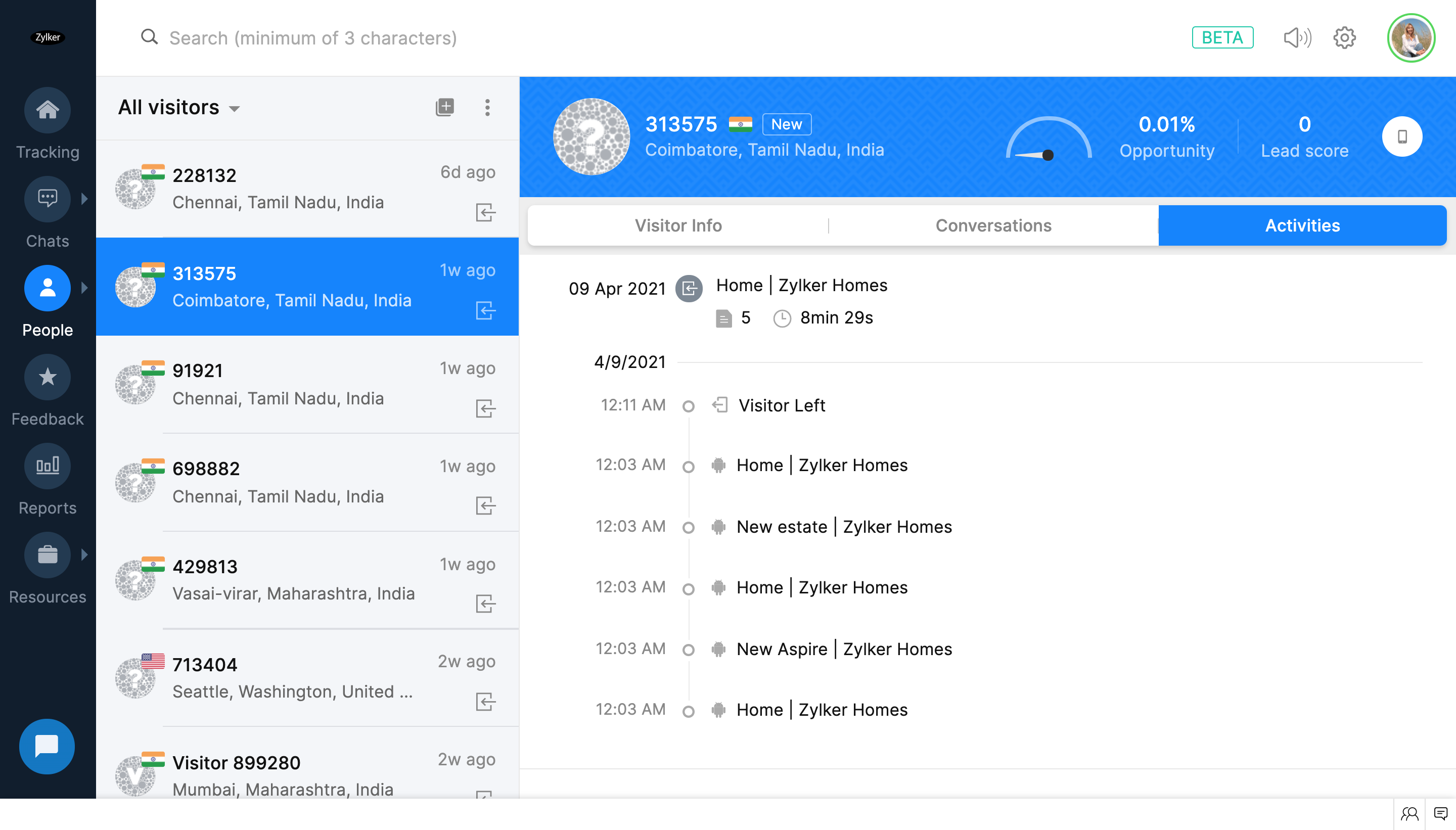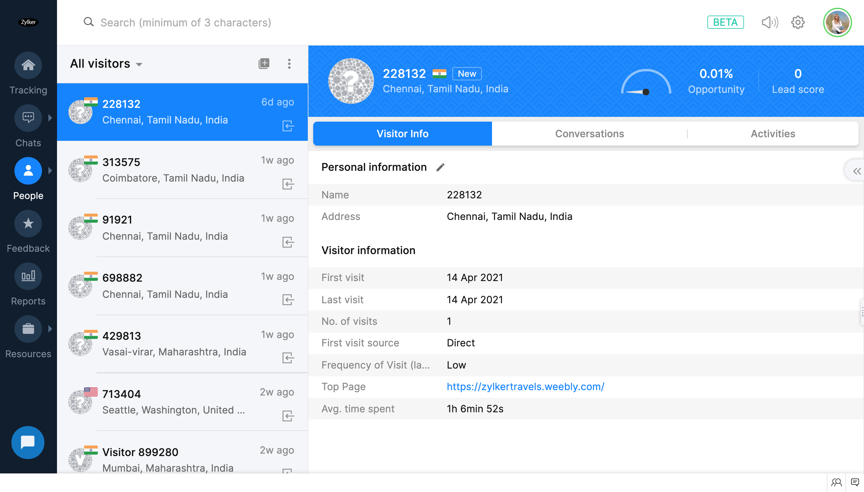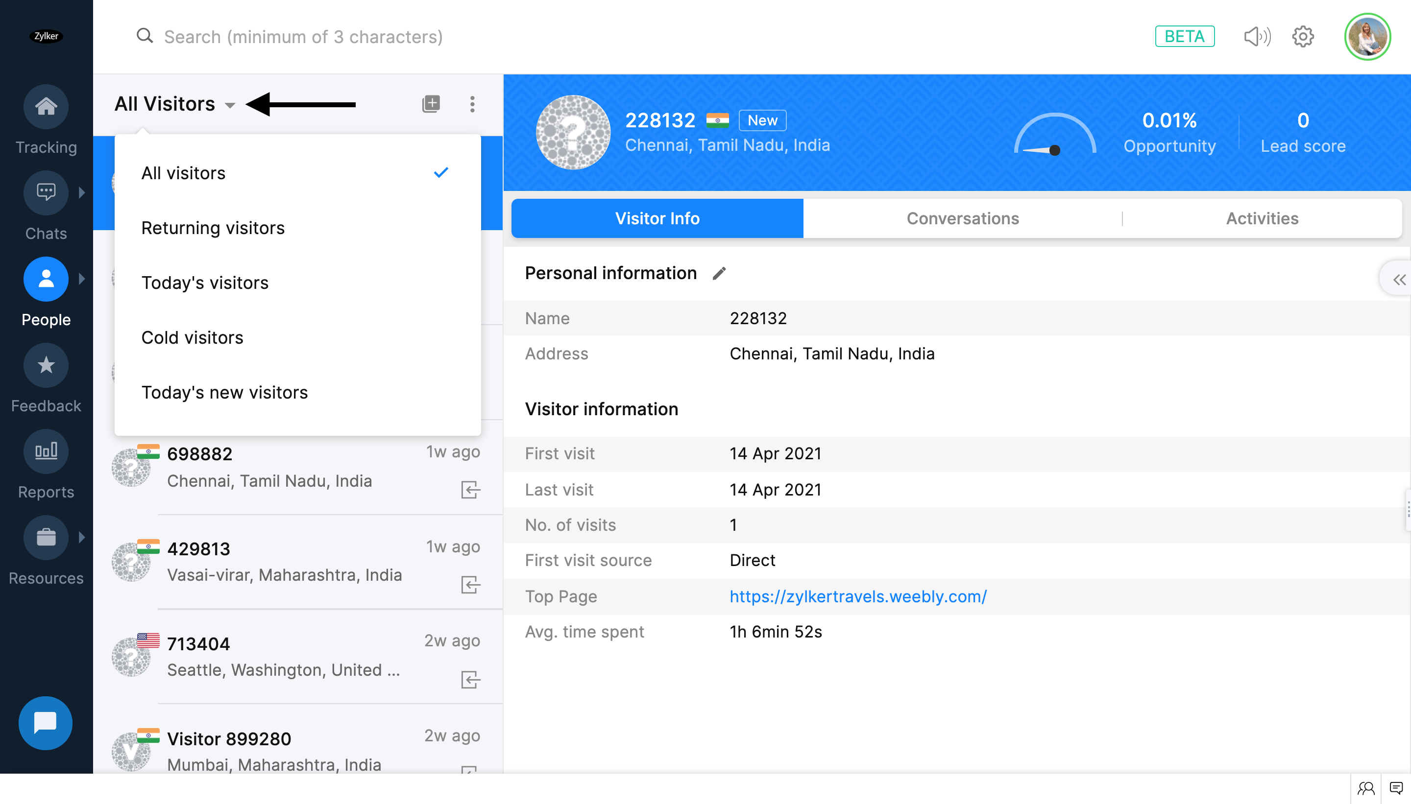 Zoho SalesIQを使用すると、Webサイトへの訪問者やその行動に関する情報を把握できます。
