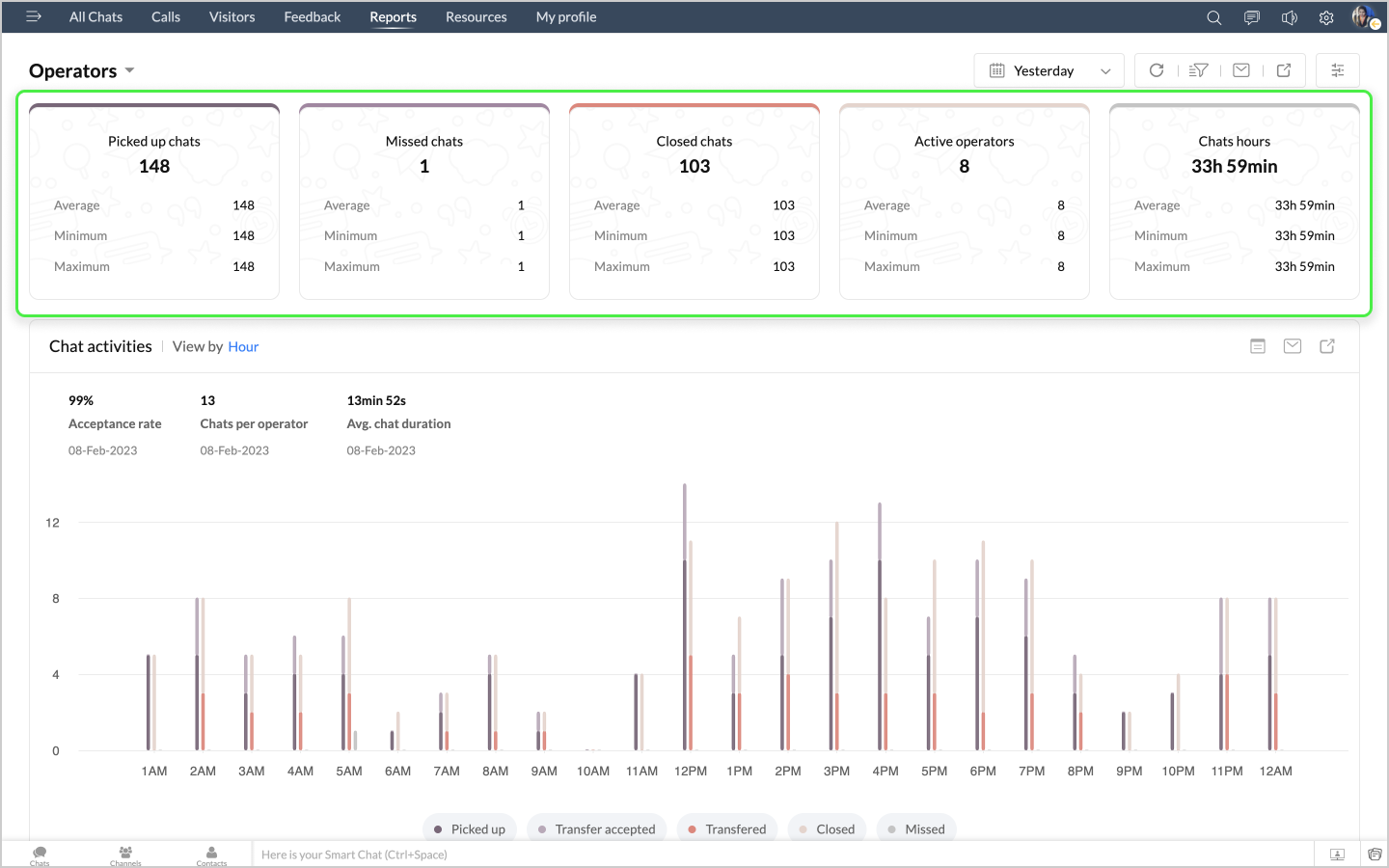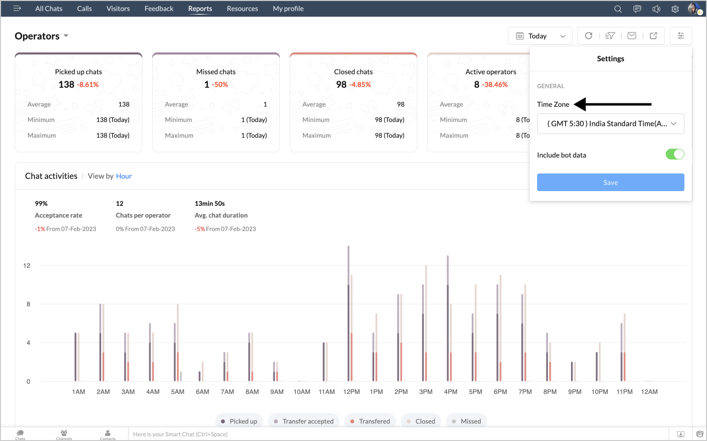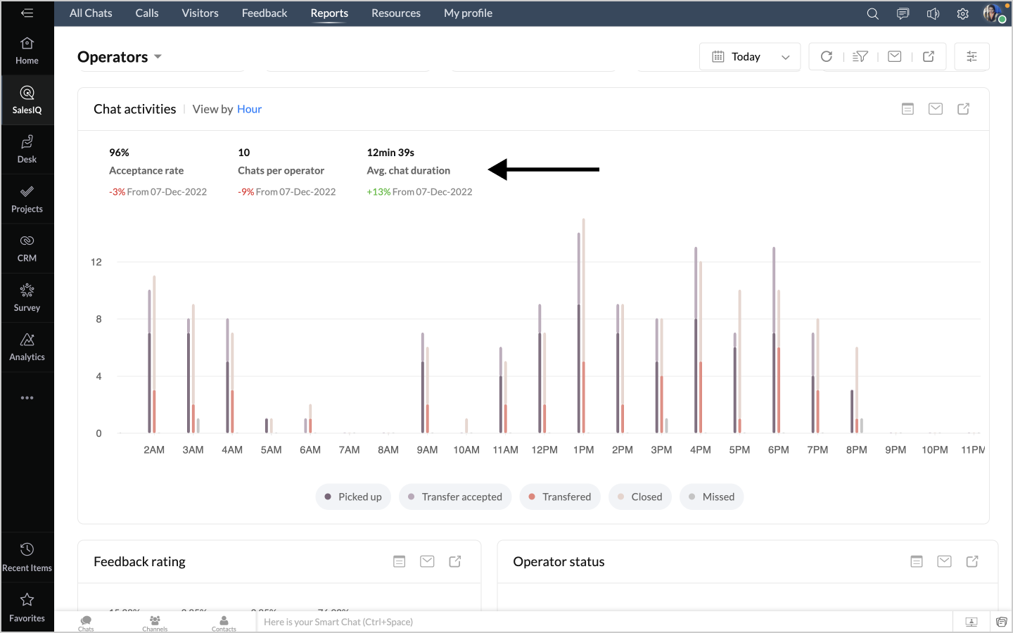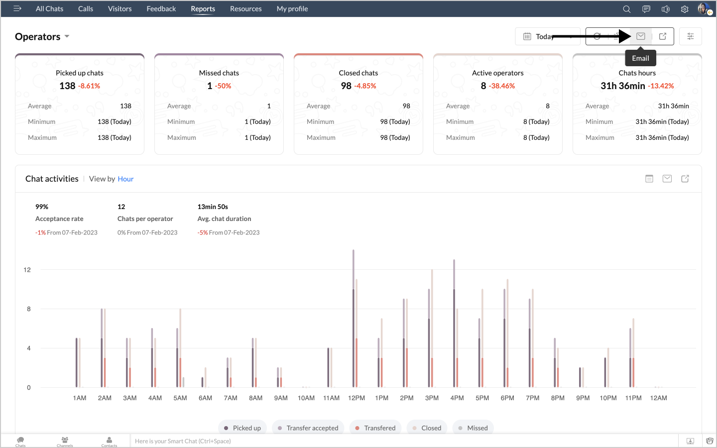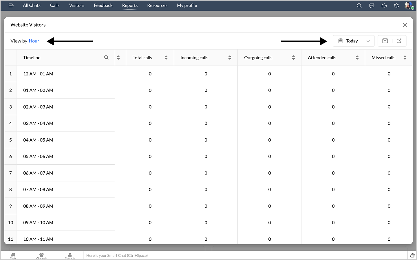 詳細表示アイコンをクリックすると、チャットの対応量のデータが、担当者別に表形式で表示されます。