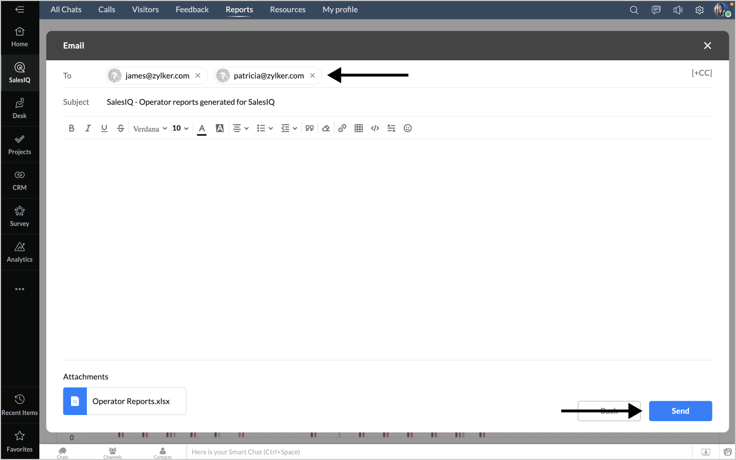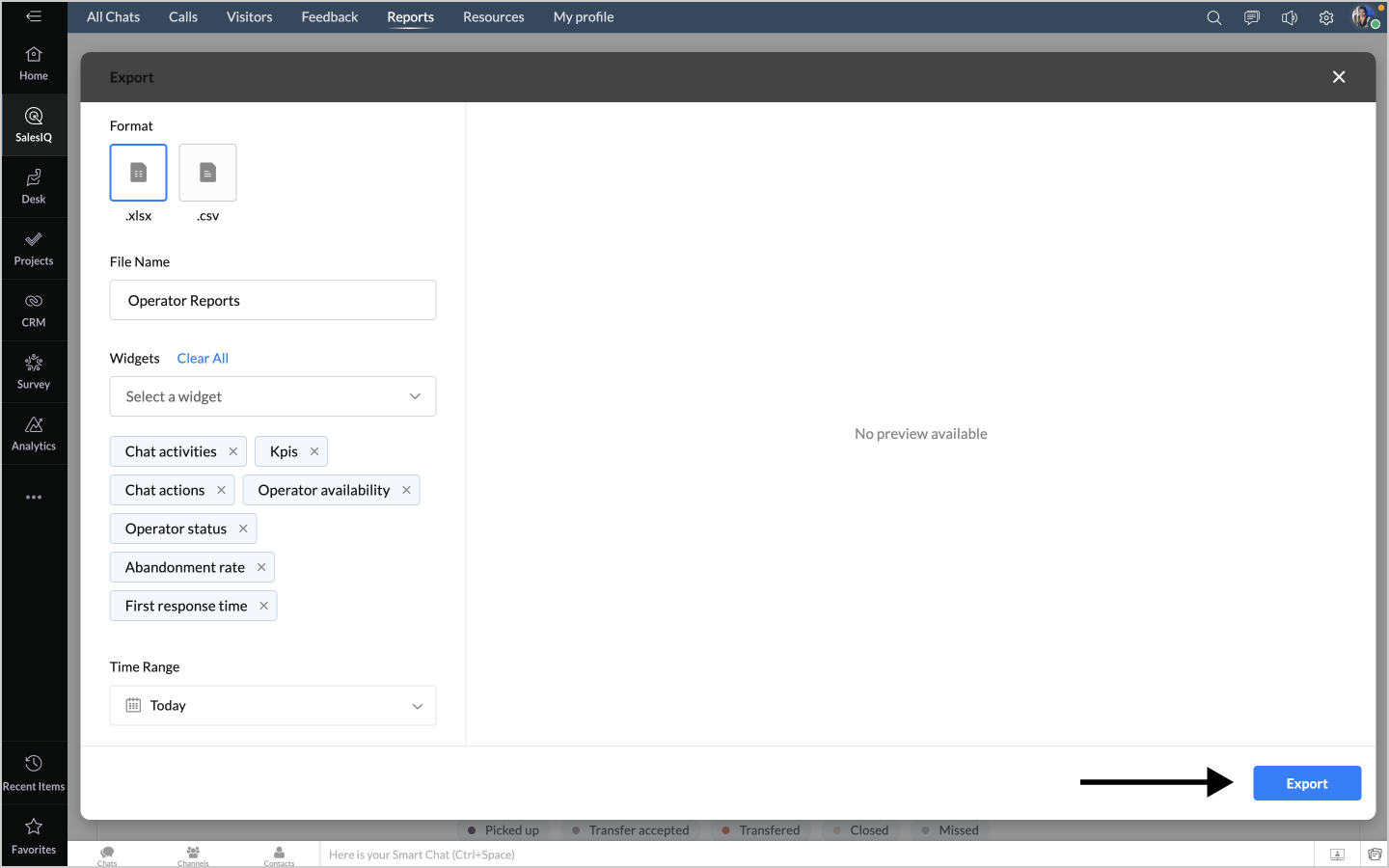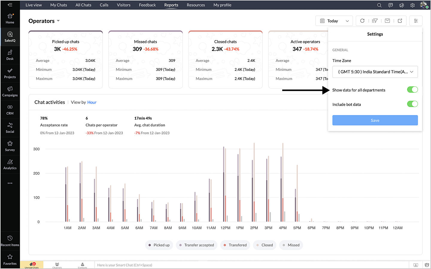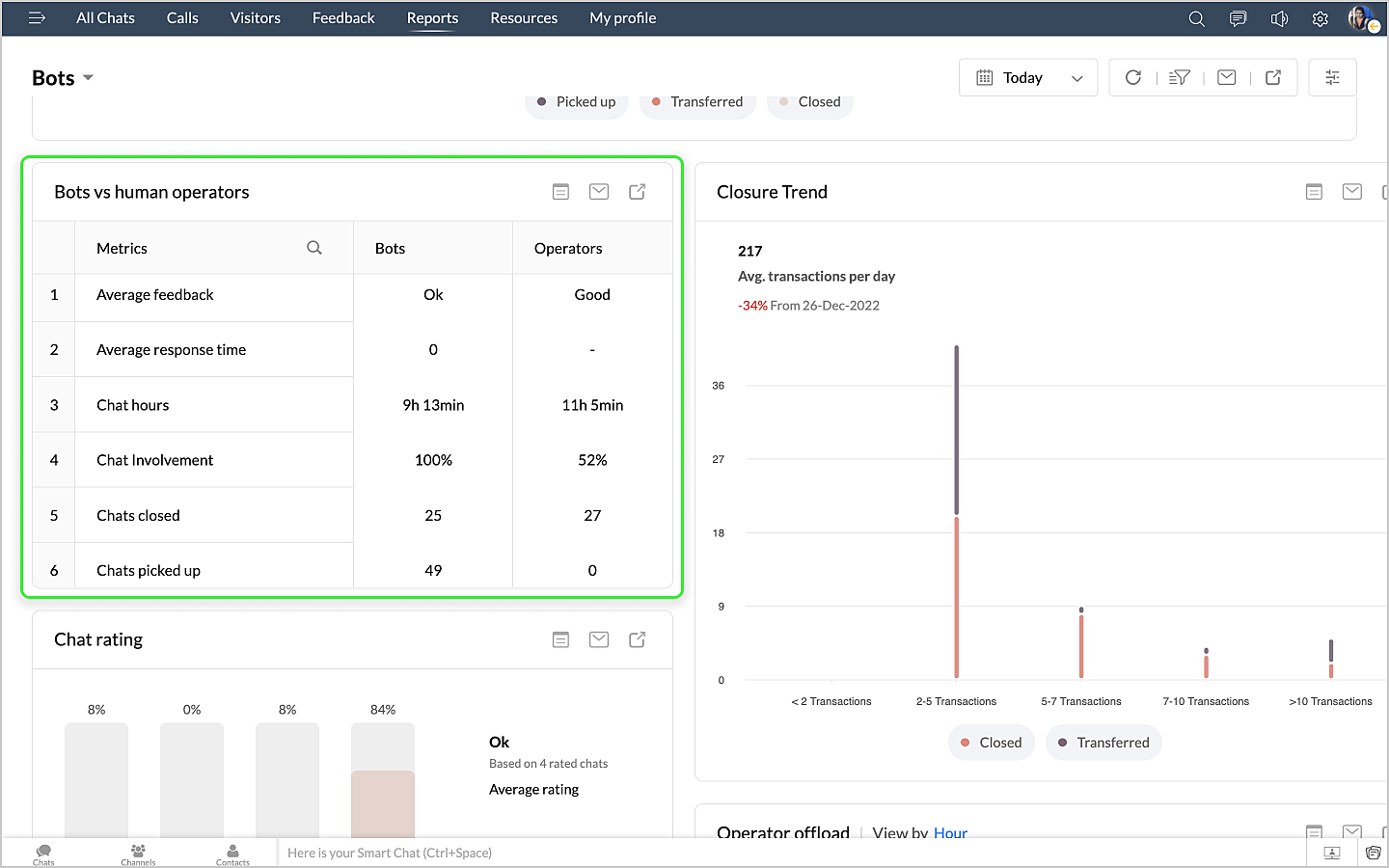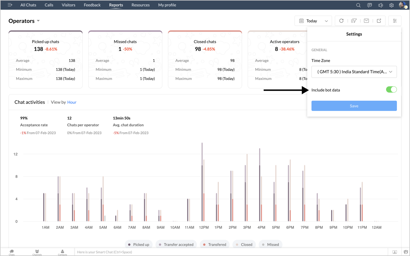 詳細表示アイコンをクリックすると、チャットの対応量のデータが、担当者別に表形式で表示されます。