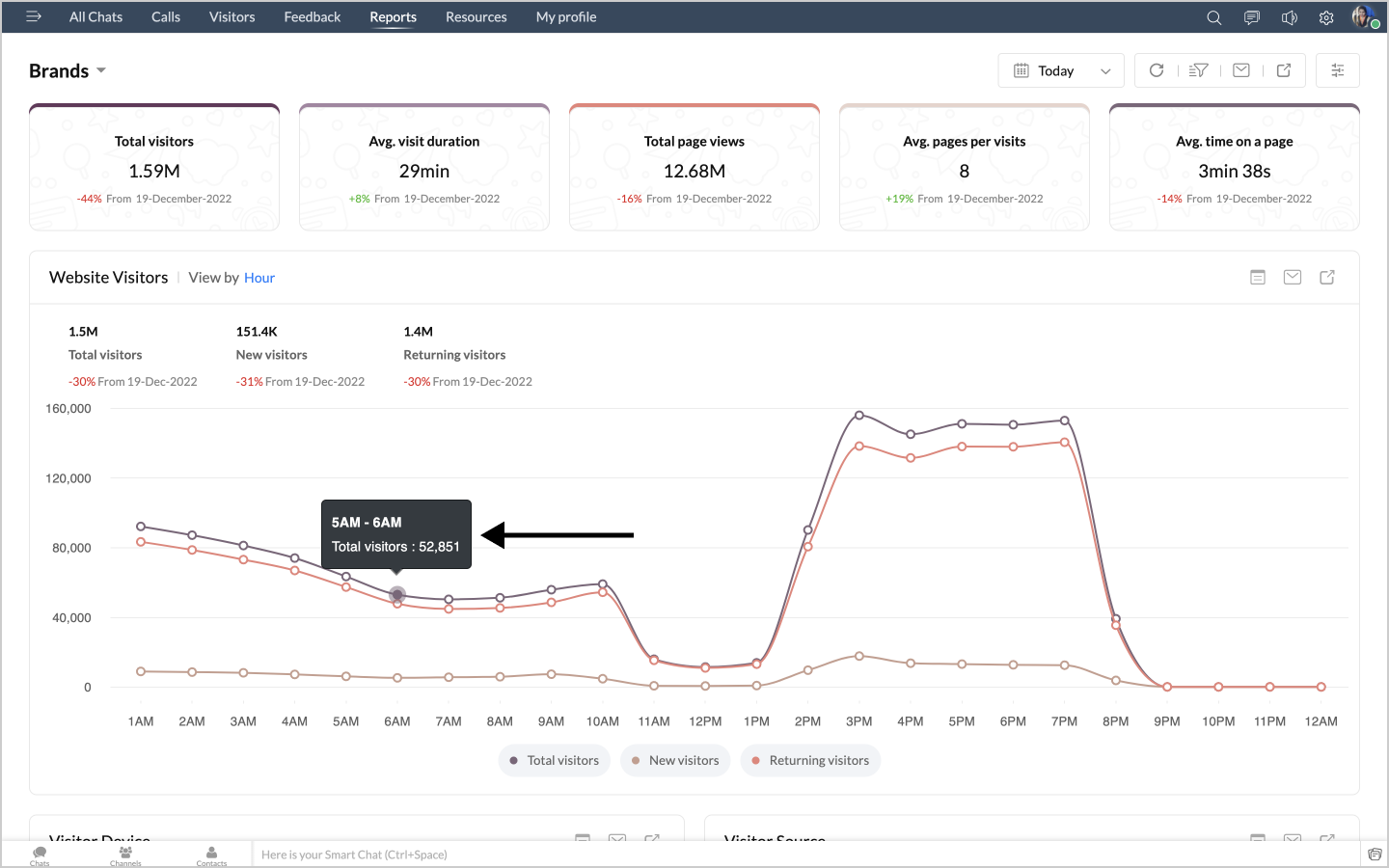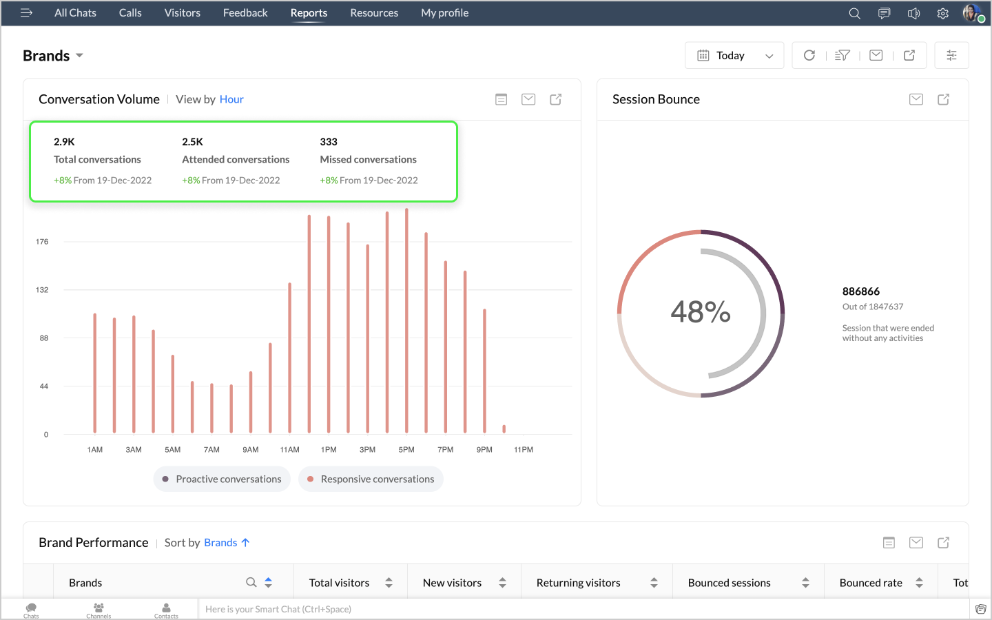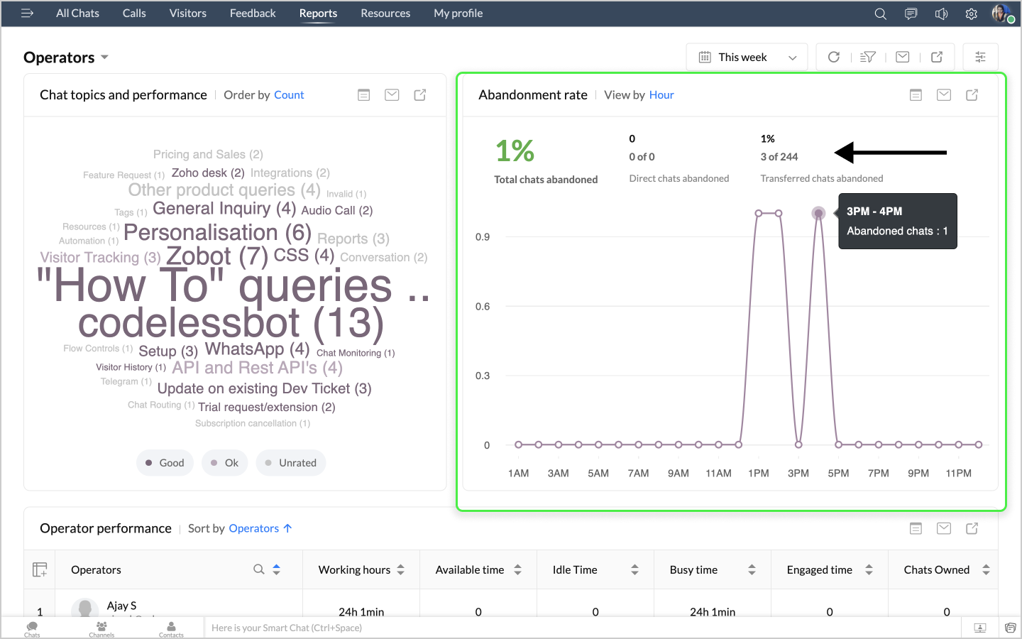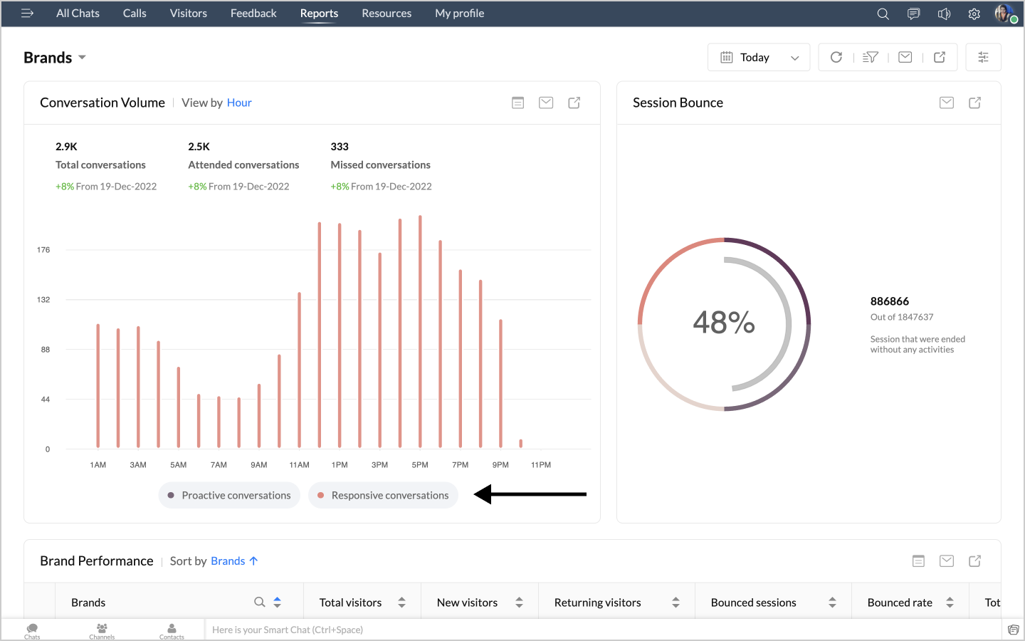 詳細表示アイコンをクリックすると、チャットの最初のメッセージや訪問者名などのデータが、チャットID別に表形式で表示されます。