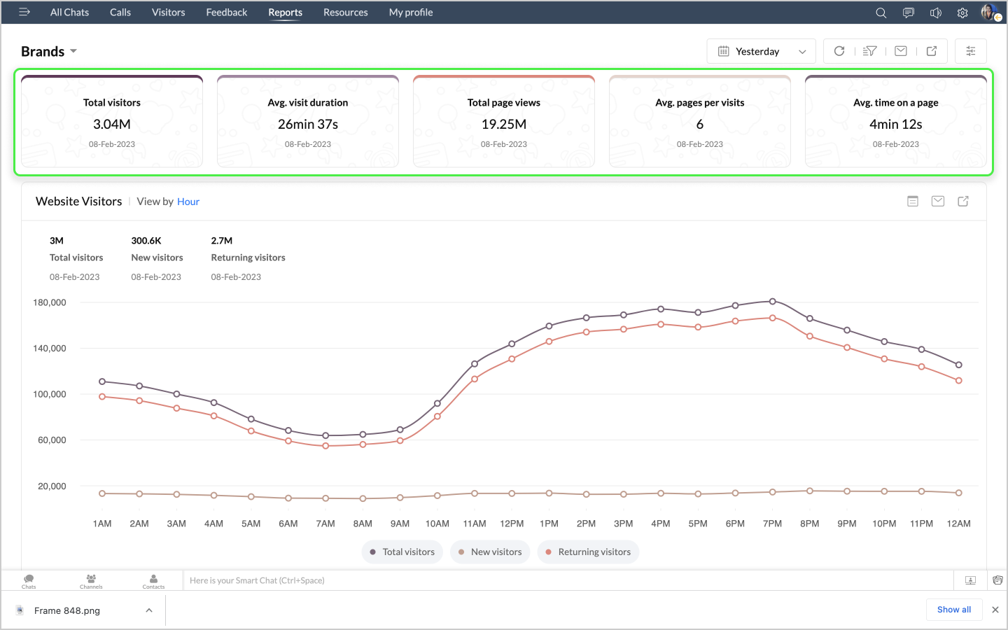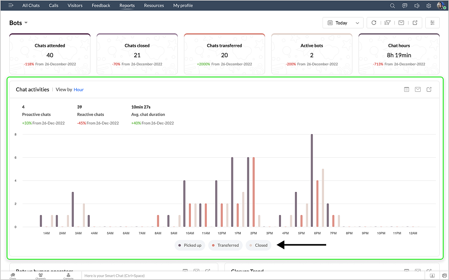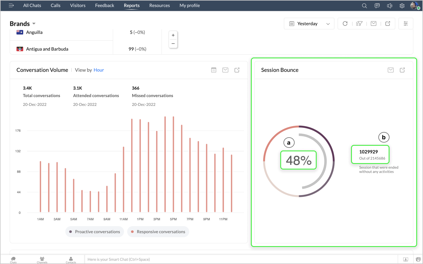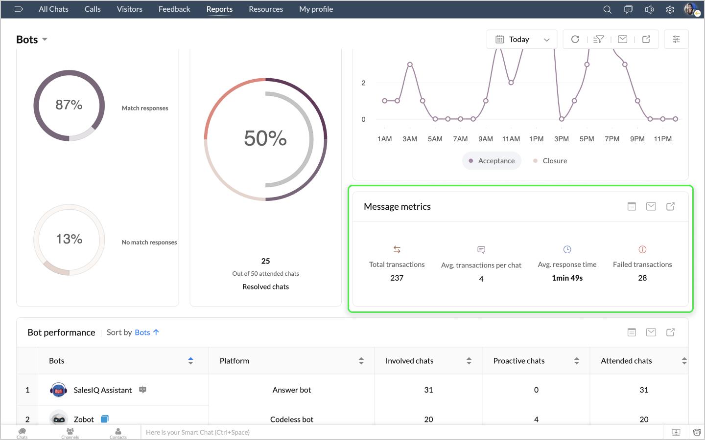 詳細表示アイコンをクリックすると、ボットによるチャットの最初のメッセージや訪問者名などのデータが、チャットID別に表形式で表示されます。