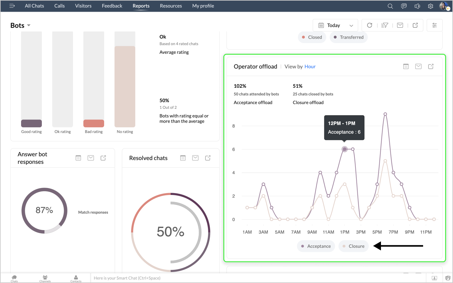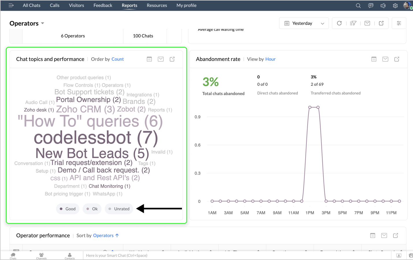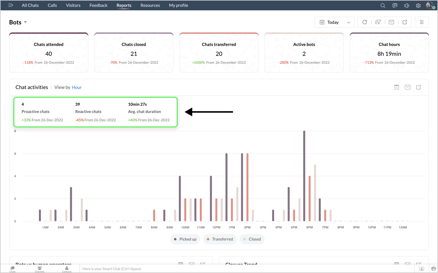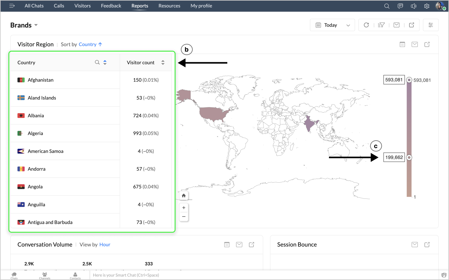 詳細表示アイコンをクリックすると、ボットによるチャットの最初のメッセージや訪問者名などのデータが、チャットID別に表形式で表示されます。