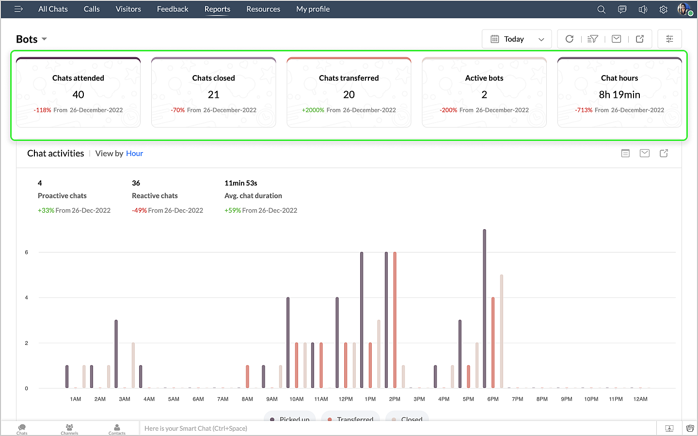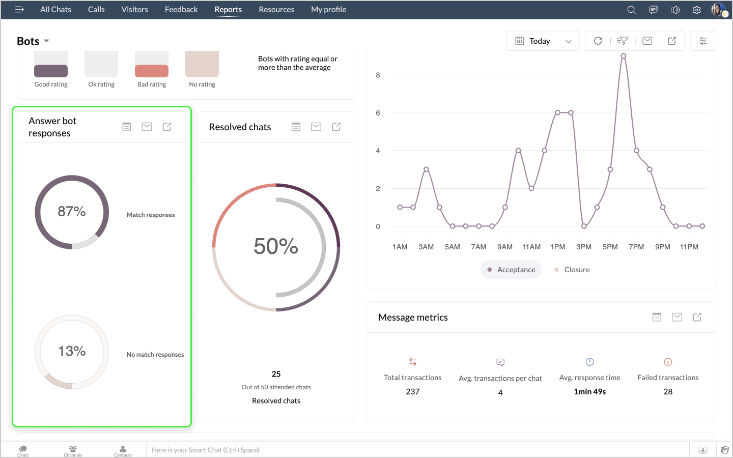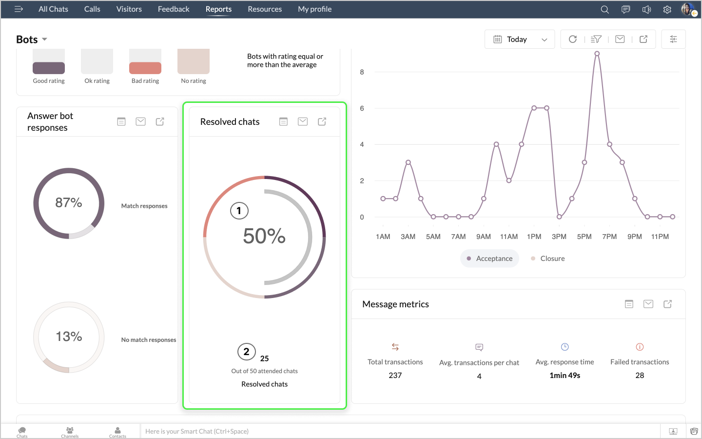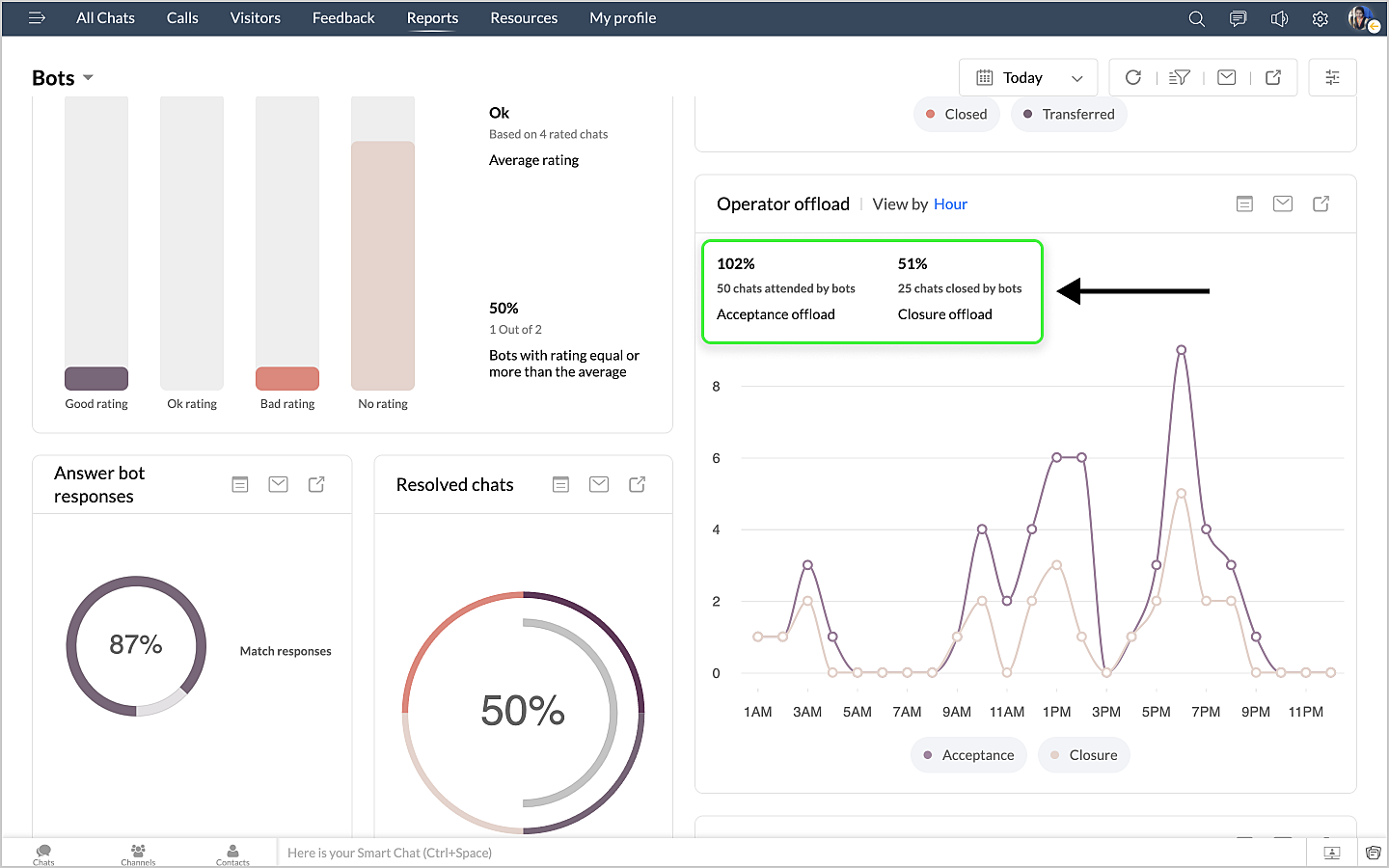 詳細表示アイコンをクリックすると、ボットによるチャットの最初のメッセージや訪問者名などのデータが、チャットID別に表形式で表示されます。