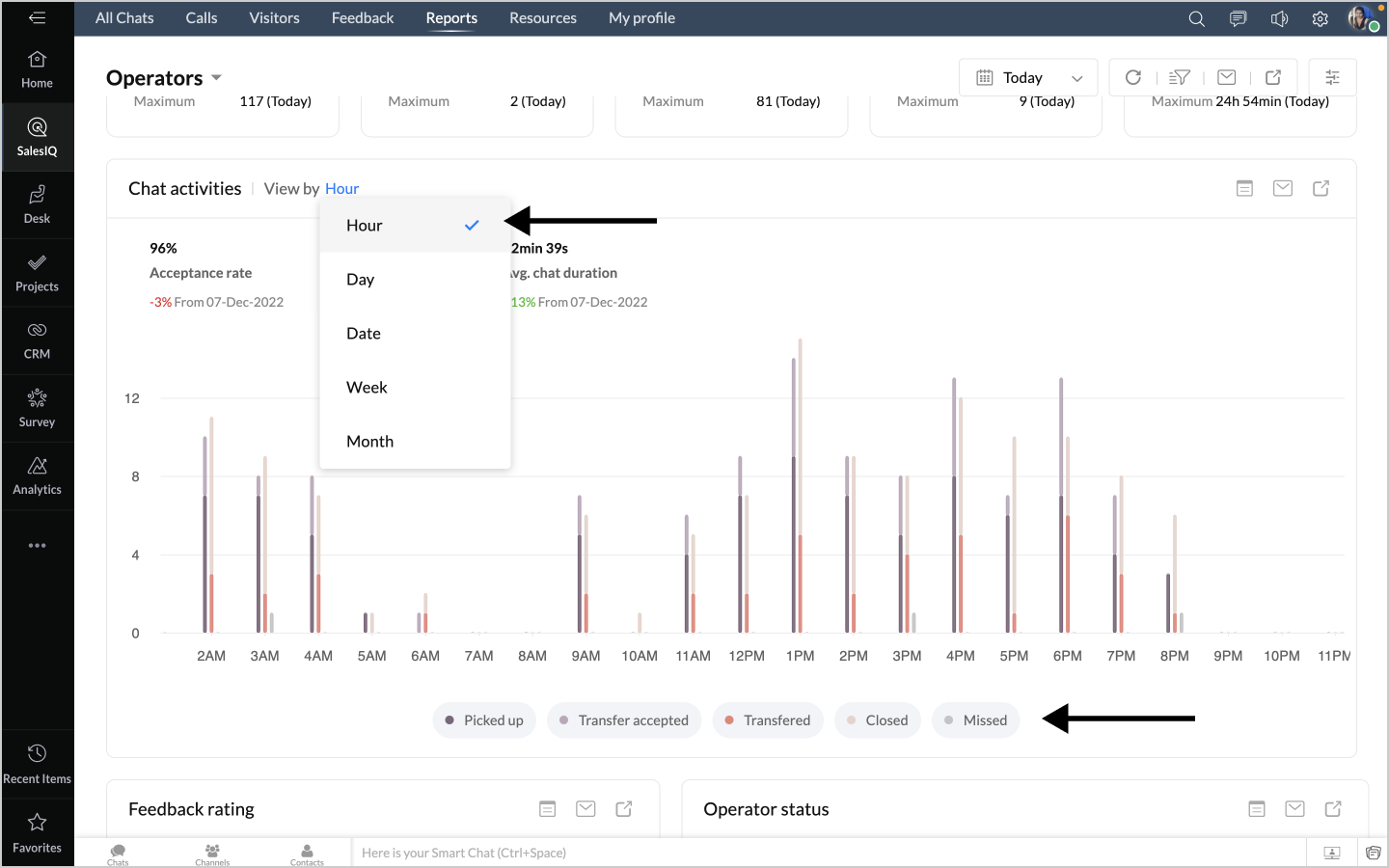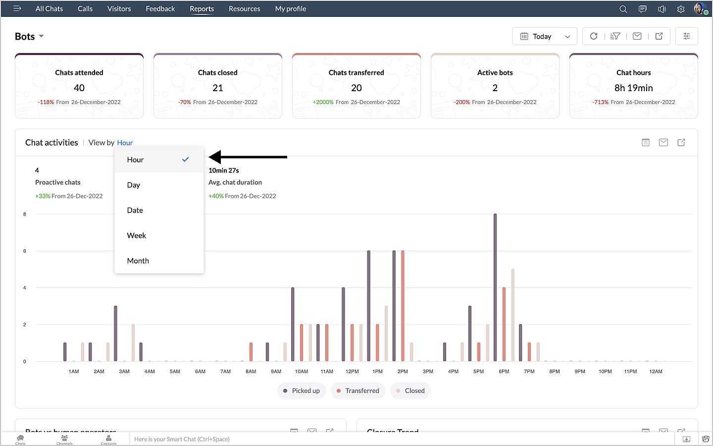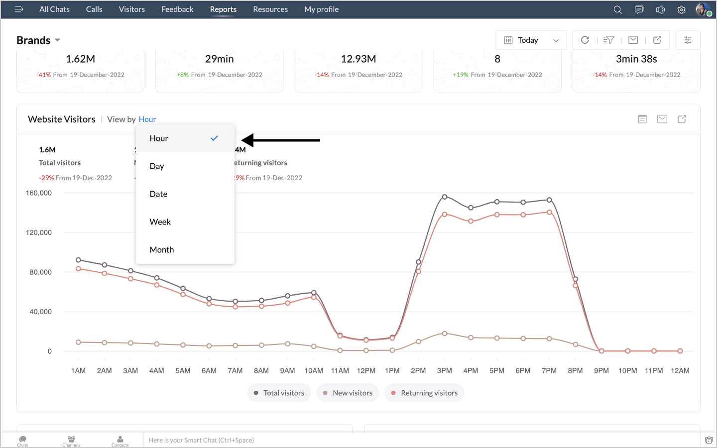 表示する単位は、時間、曜日、日、週、月から選択できます。