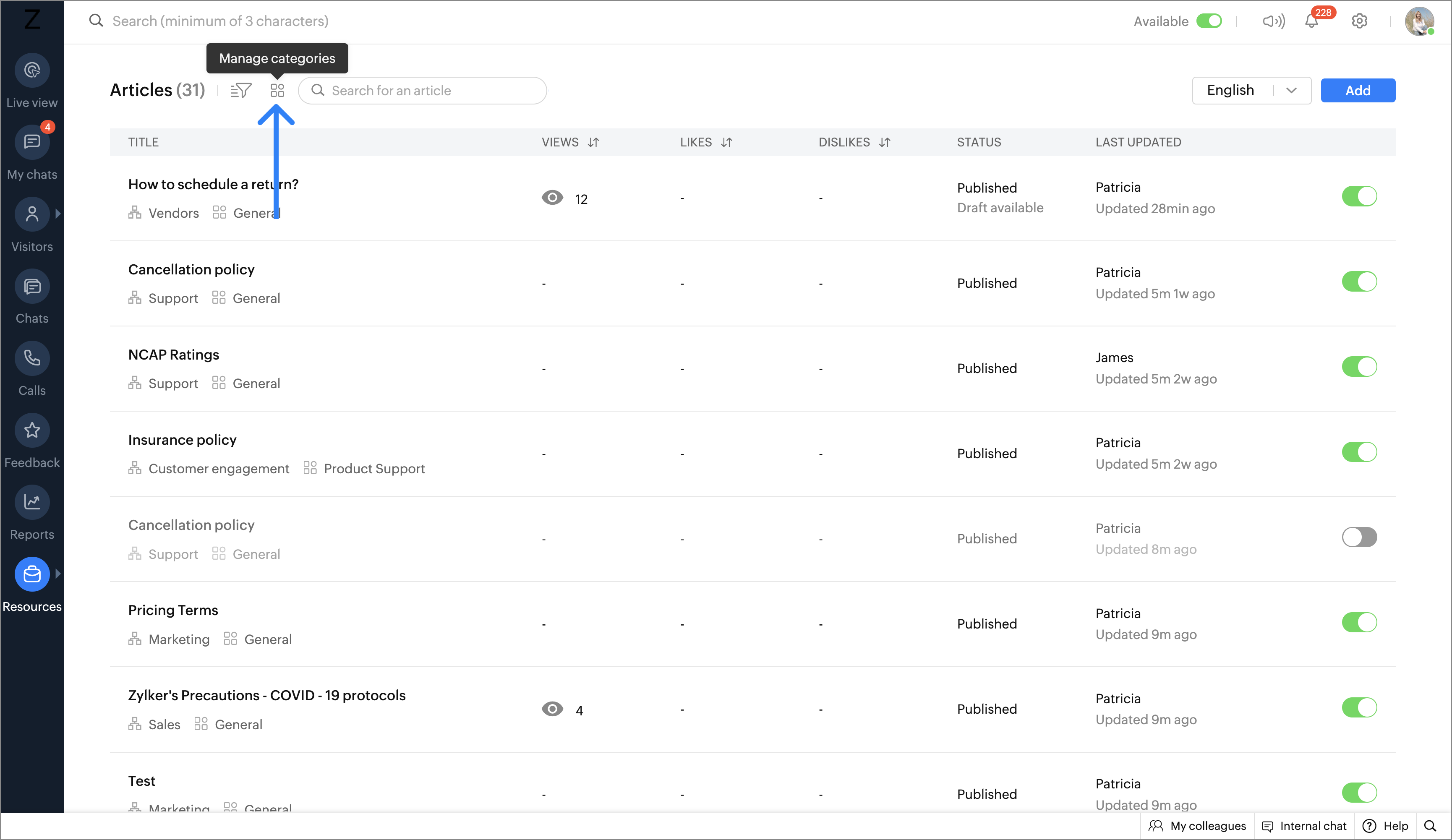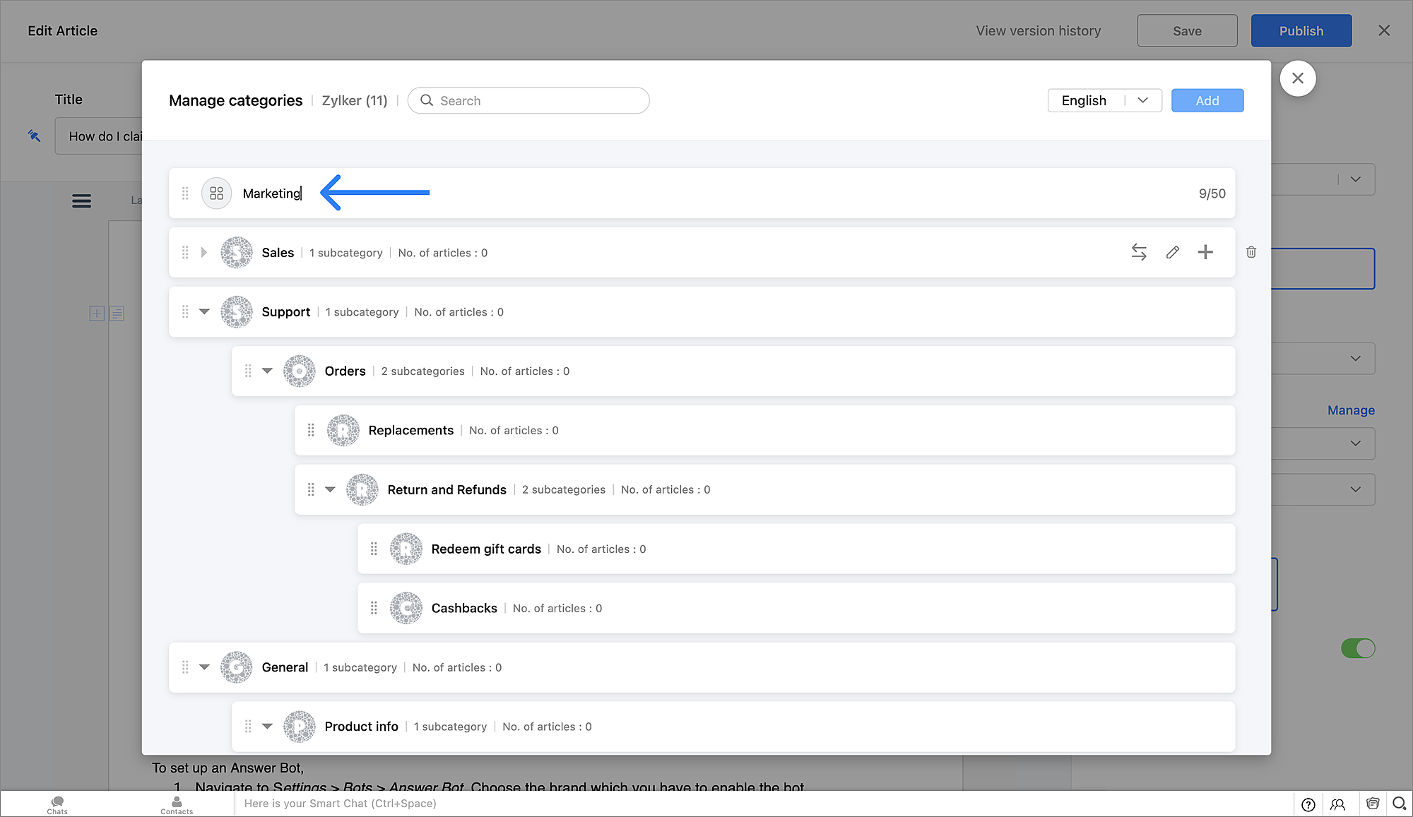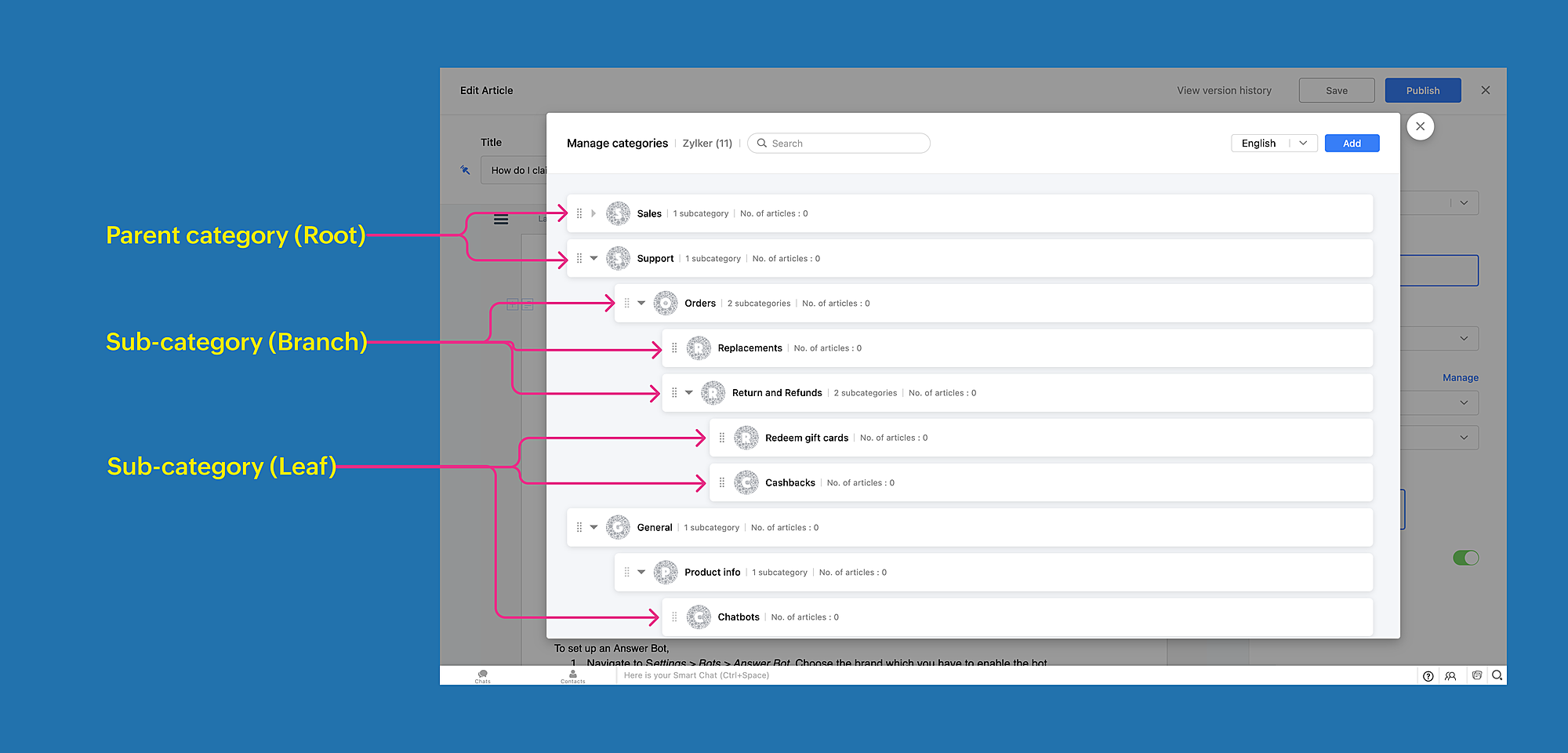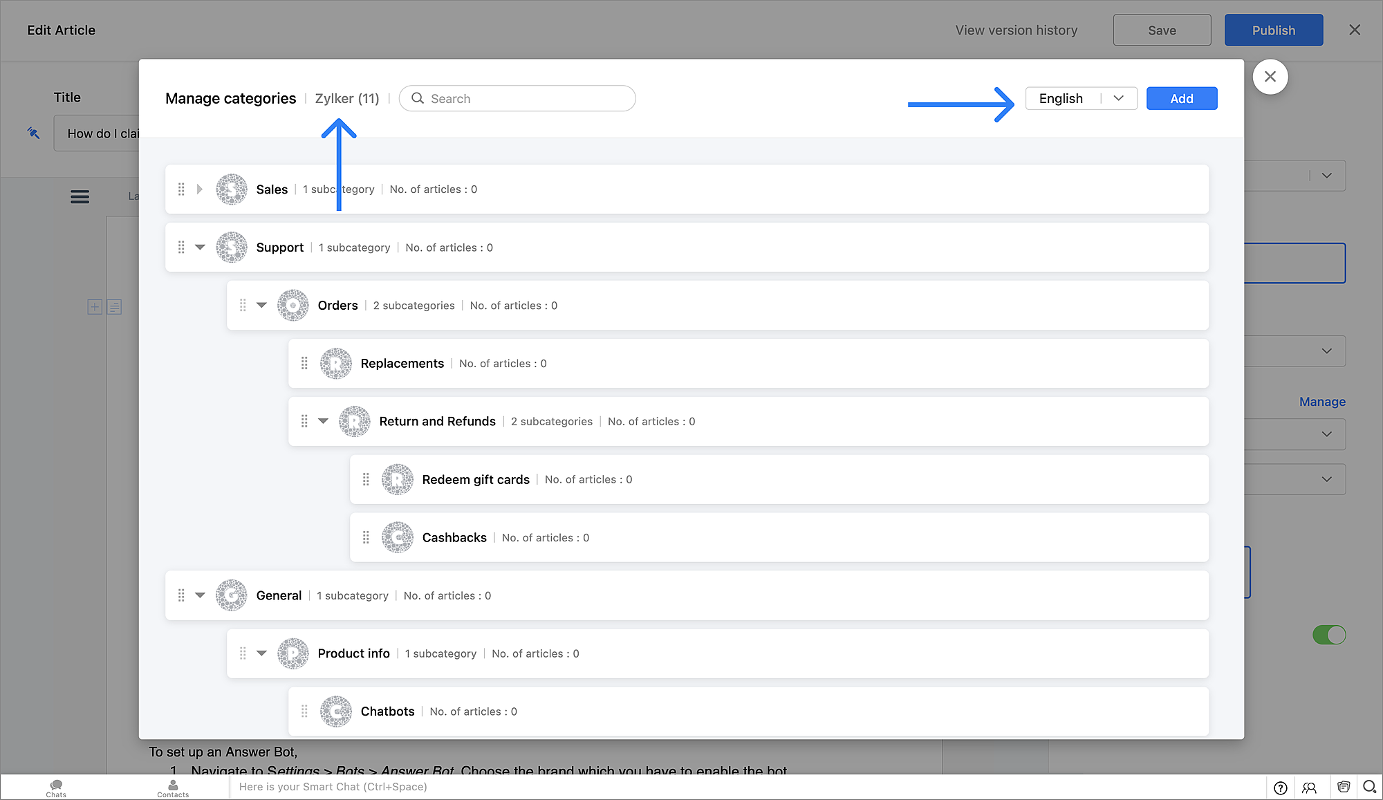 上記のような機能を活用することで、ヘルプ記事やよくある質問などの資料をカテゴリーに分けて整理できます。サポート担当者とWebサイト訪問者(顧客)の両方にとって、目的の資料が見つけやすくなります。