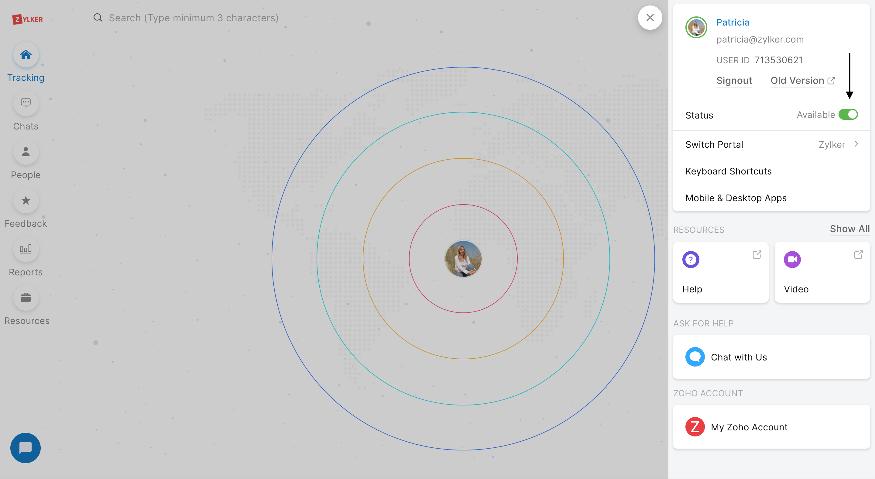 訪問者や顧客への割り当ては、担当者の対応可否ステータスに基づいて行われます。他の訪問者に対応しているときや、休憩中には、自分の対応可否ステータスを変更することができます。
