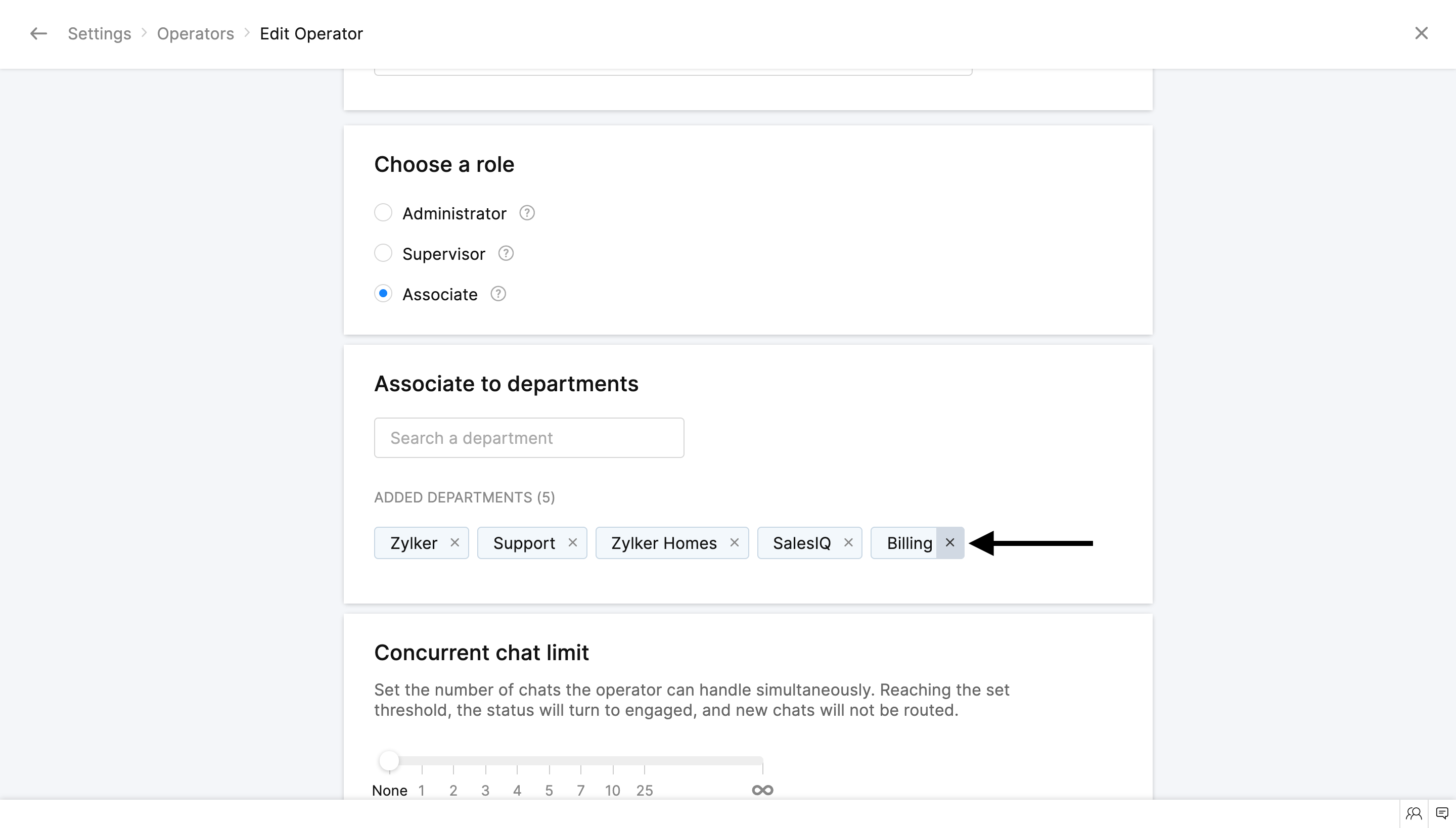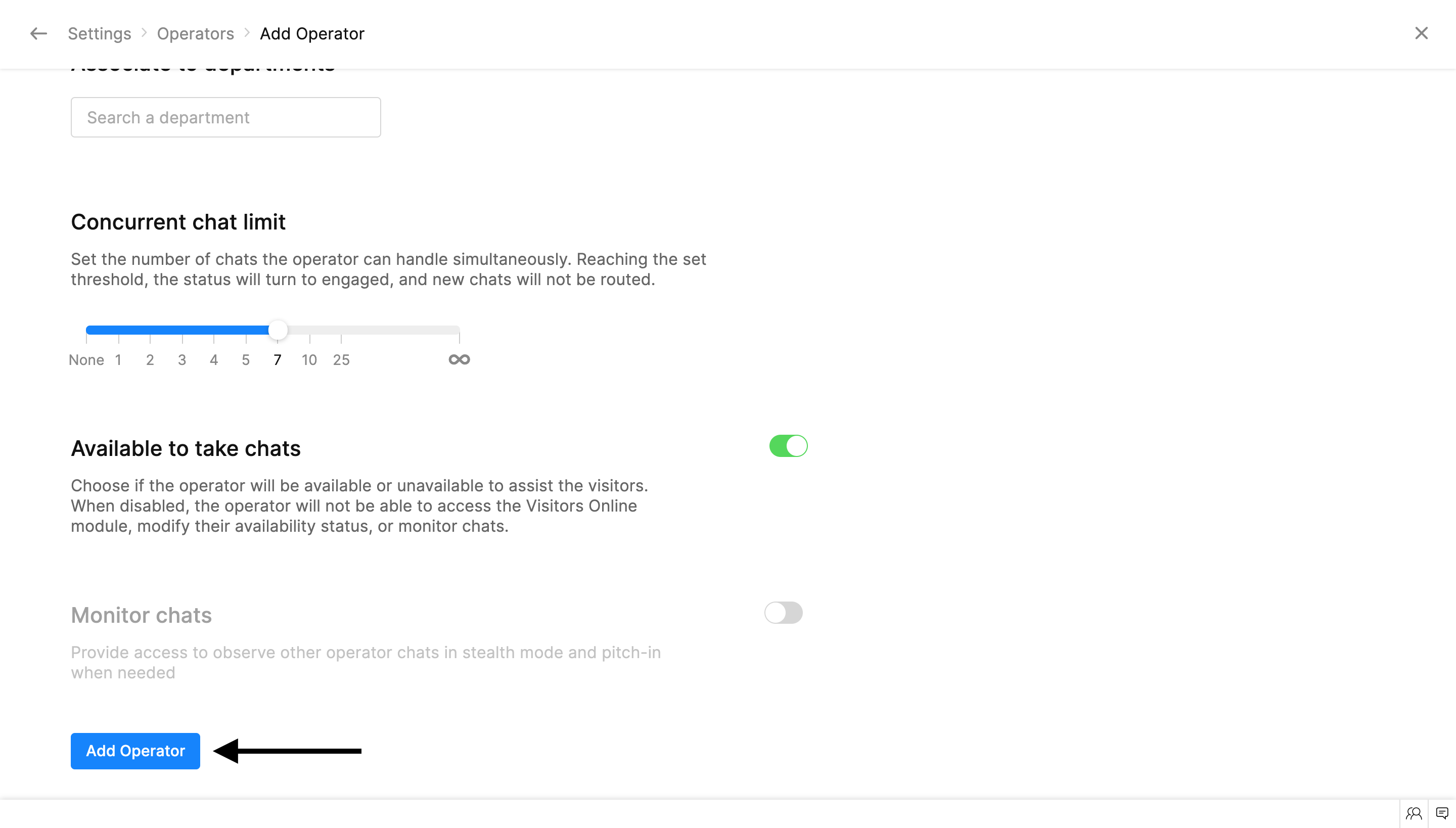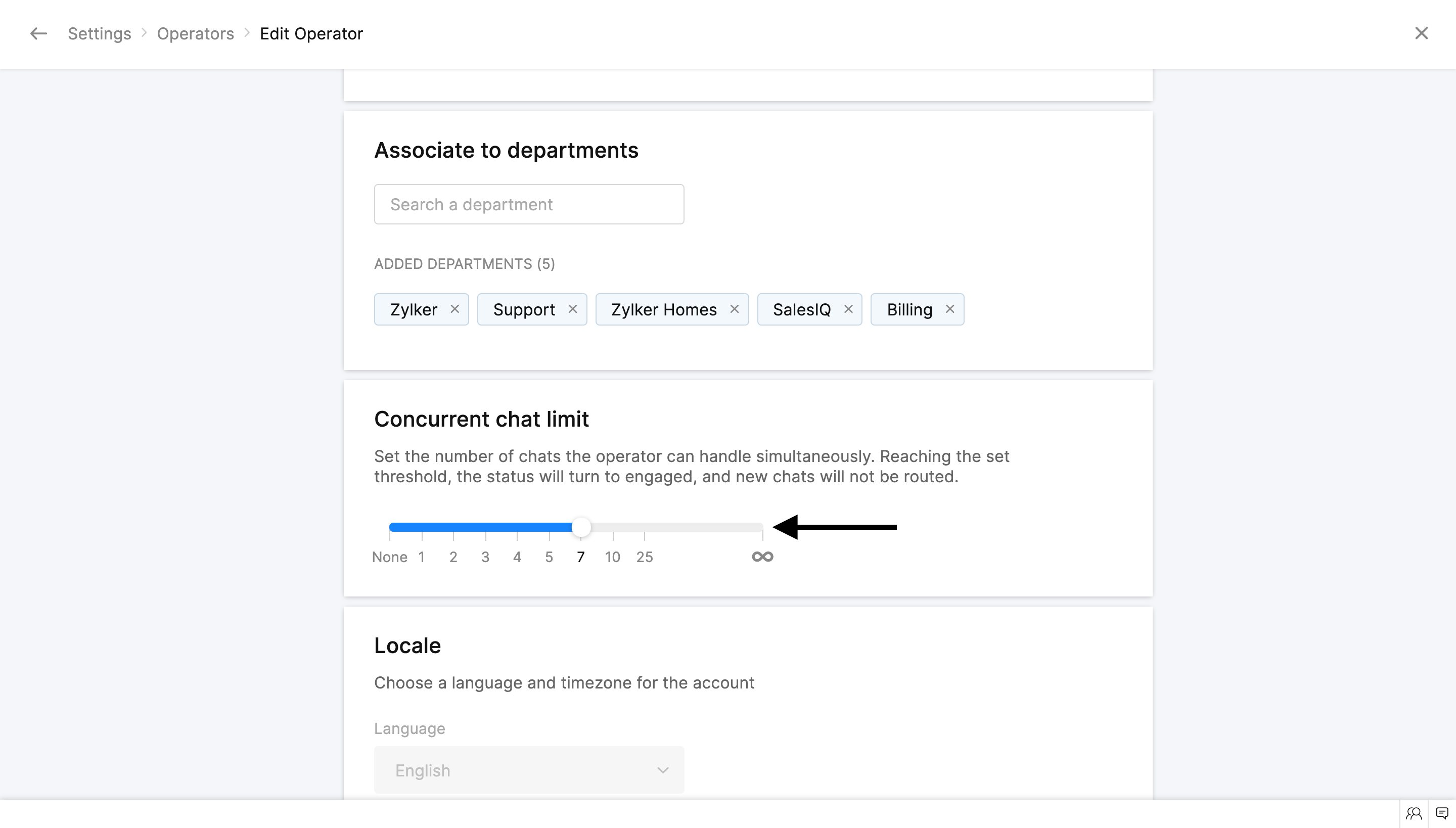 担当者が同時に対応可能なチャットの件数を設定できます。上限に達すると、担当者のステータスは[対応中]に変更されます。進行中のチャットが終了するまで、新しいチャットは割り当てられなくなります。
