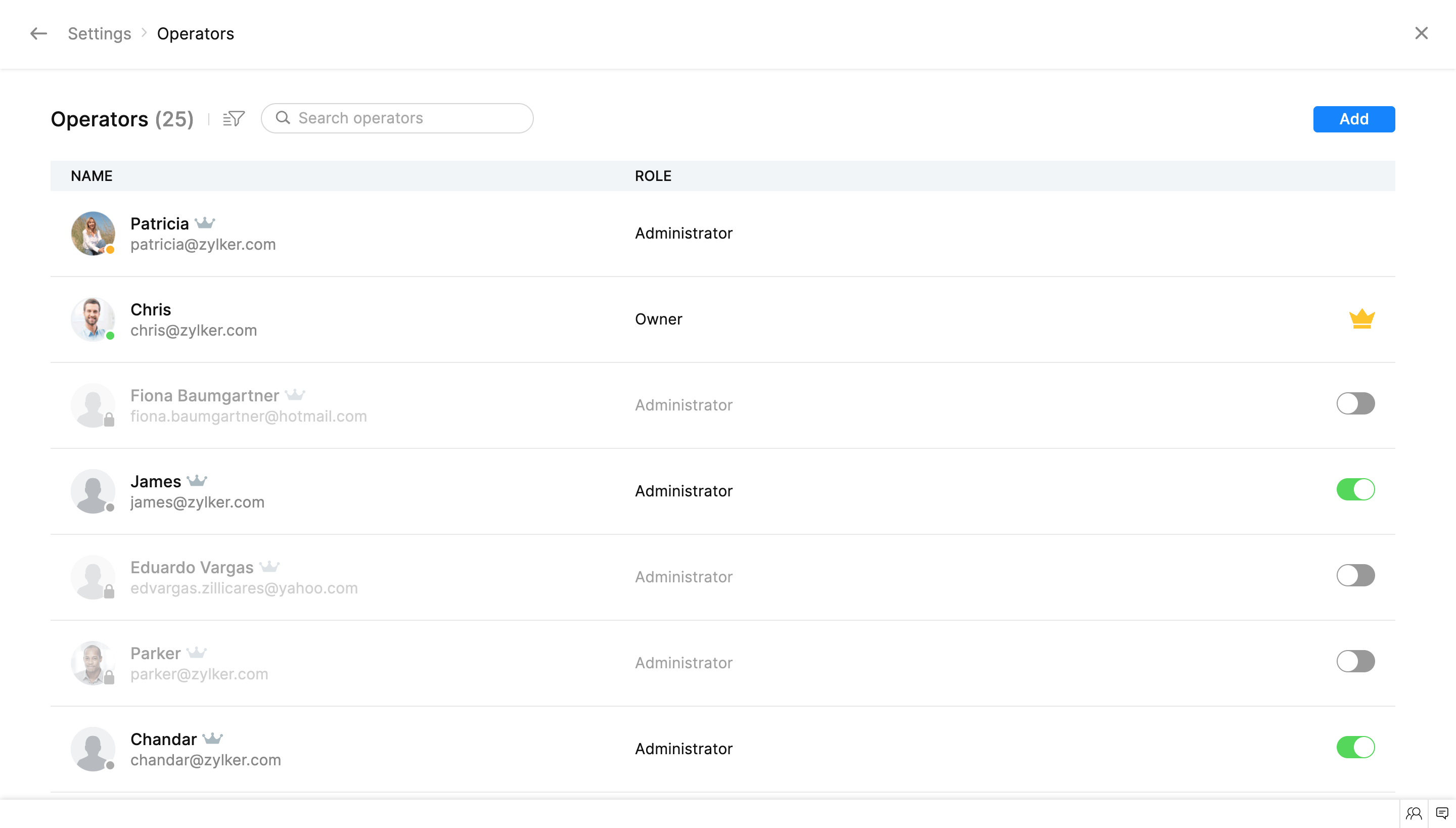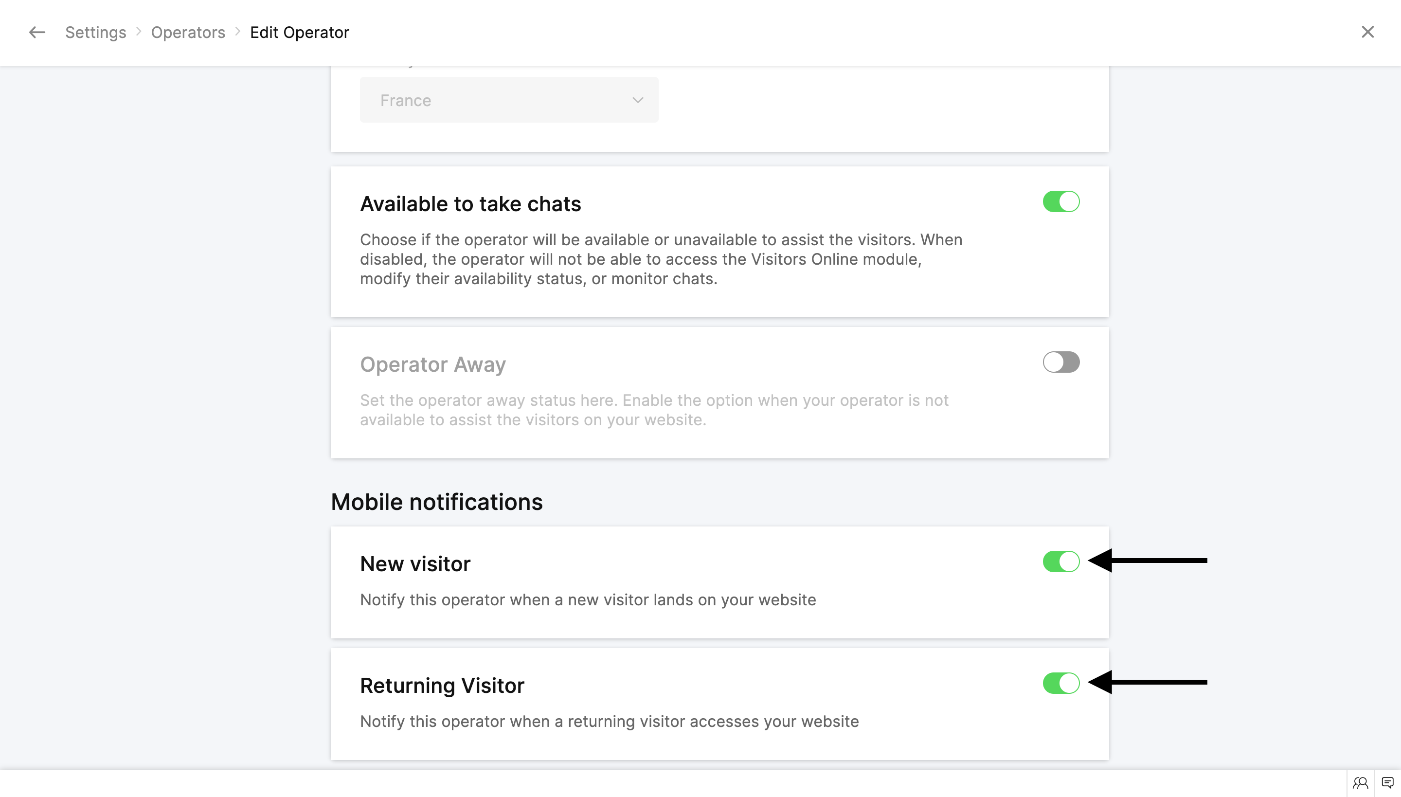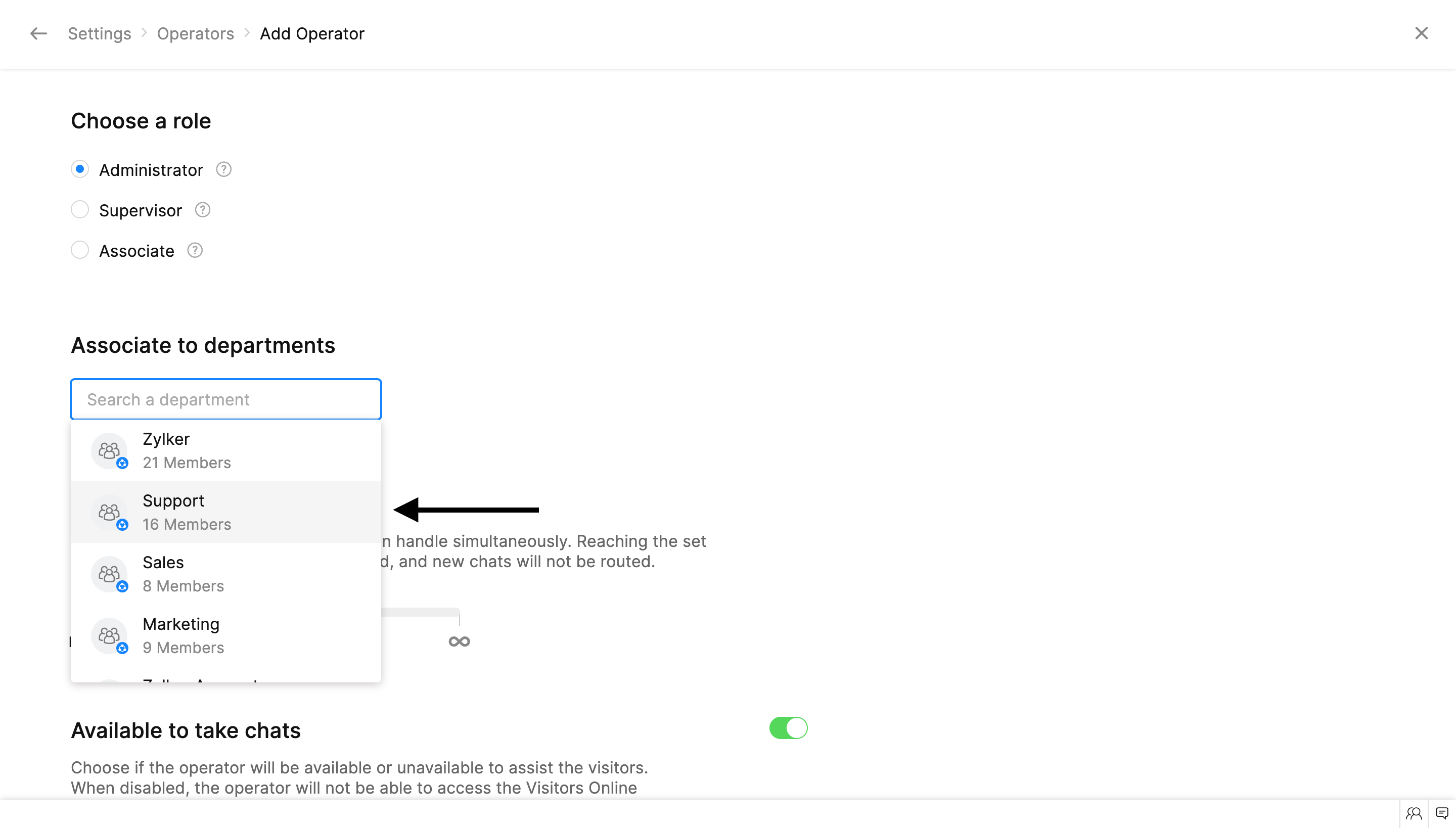 担当者が同時に対応可能なチャットの件数を設定できます。上限に達すると、担当者のステータスは[対応中]に変更されます。進行中のチャットが終了するまで、新しいチャットは割り当てられなくなります。