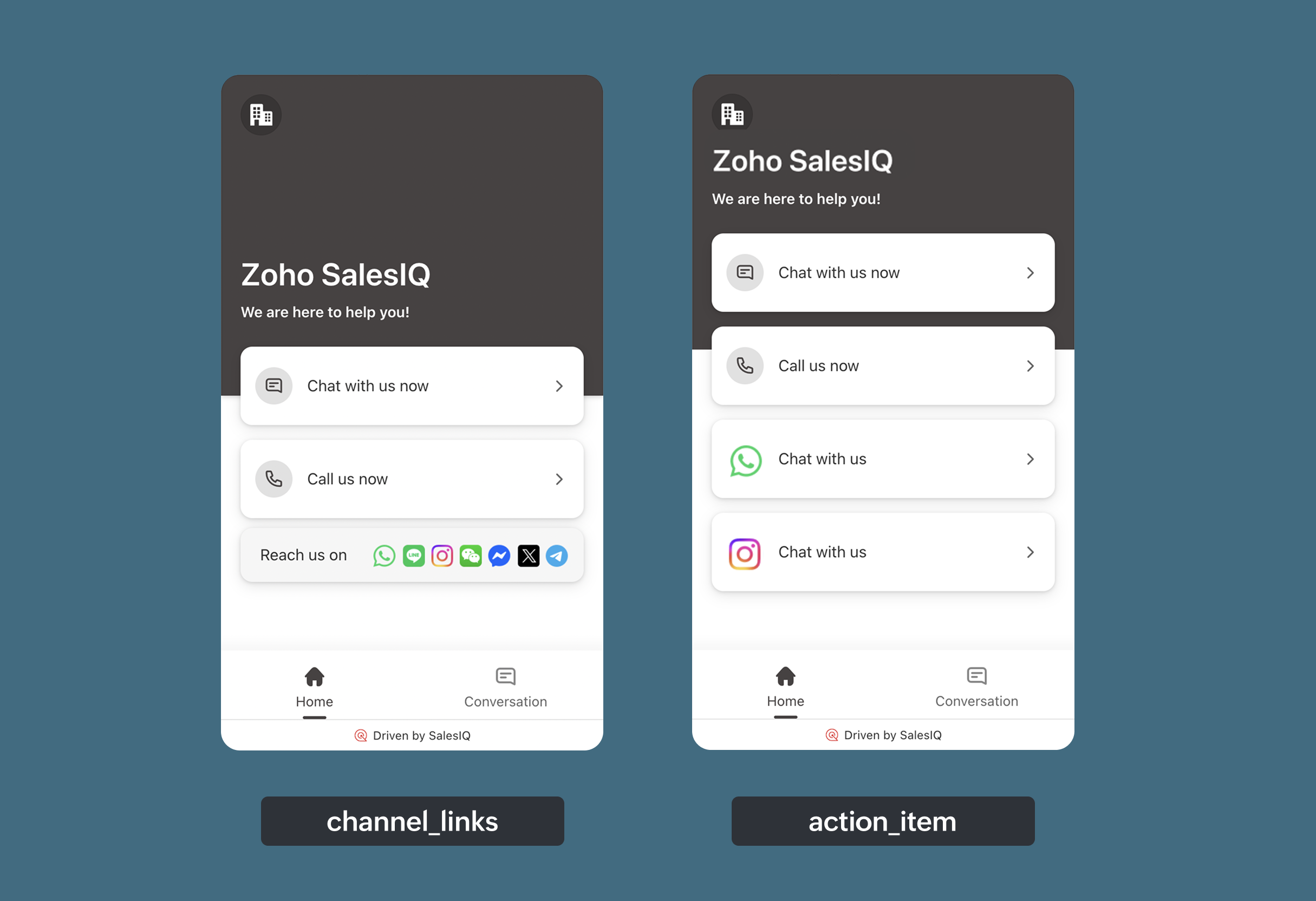 このウィジェットは、IM/ソーシャルチャンネルを2通りの方法で表示できます。