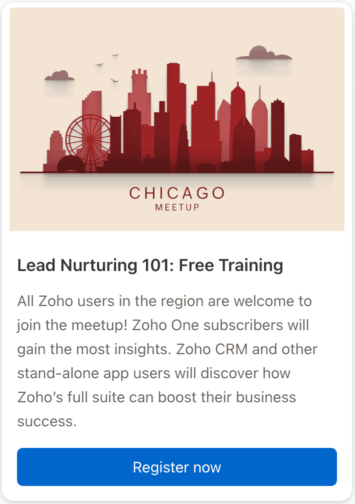 このウィジェットは、今後のイベント、特別オファー、商談、その他を強調表示するために使用できます。クリアな通話-to-操作ボタン(CTA)が含まれており、ユーザーのエンゲージメントを促進します。