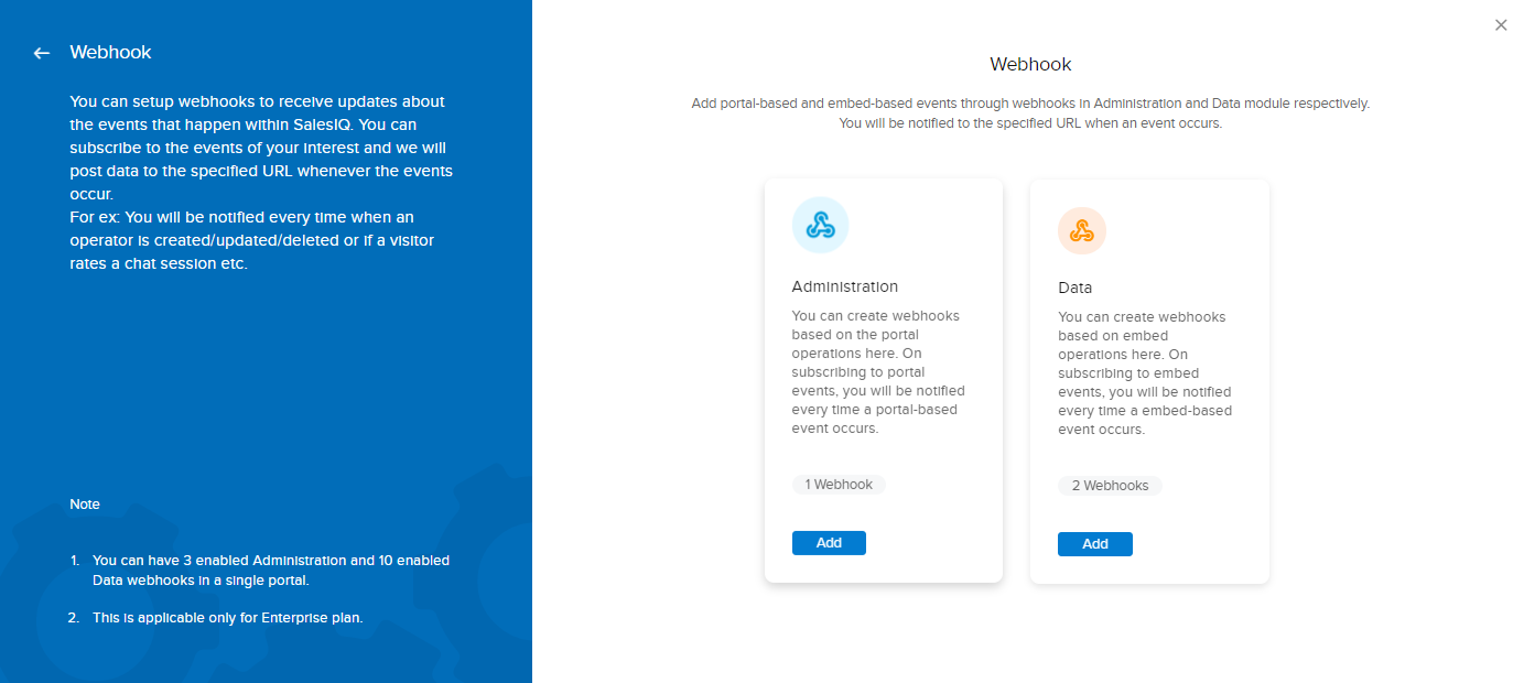 - 1ポータルあたり許可される管理者Webhookの最大数は3です。